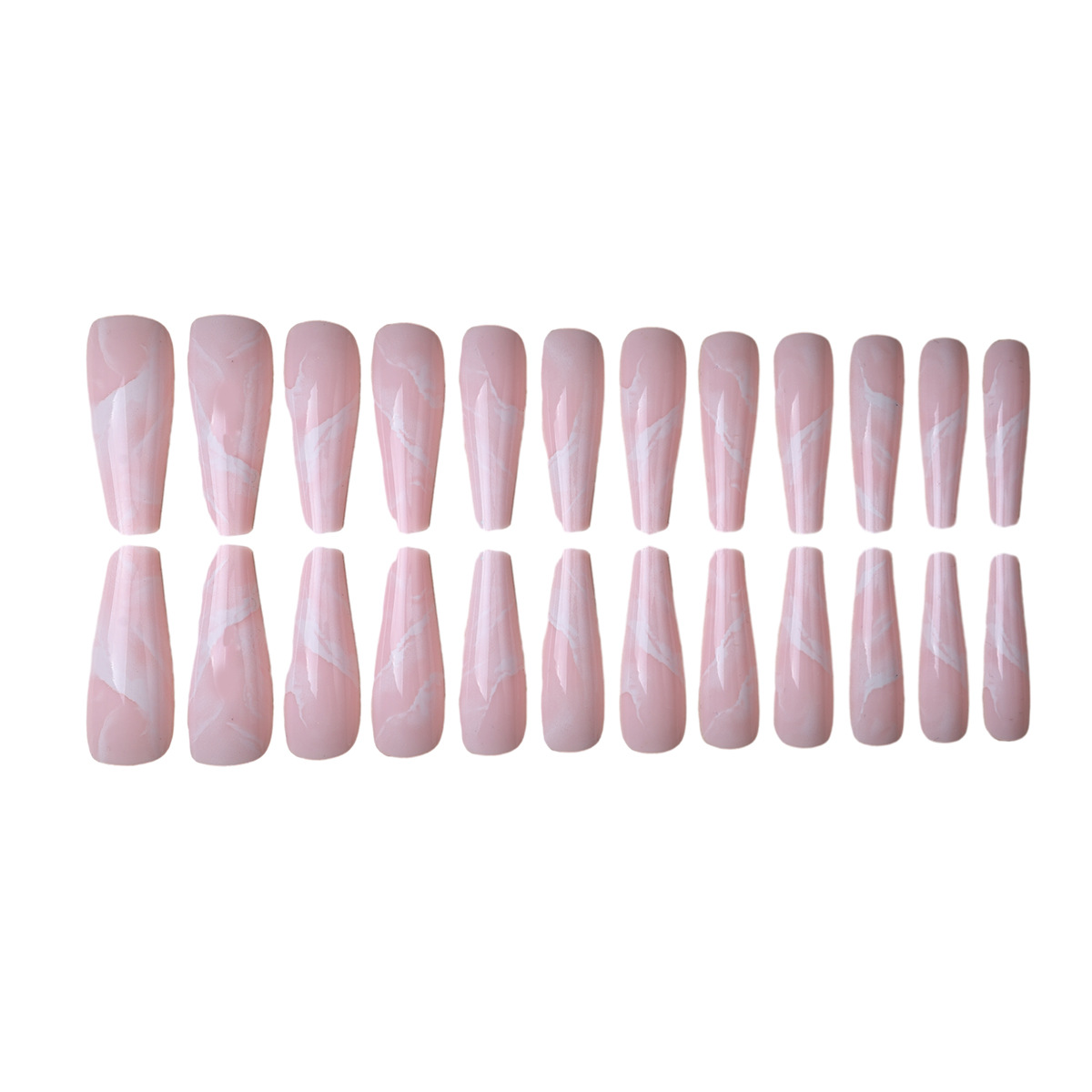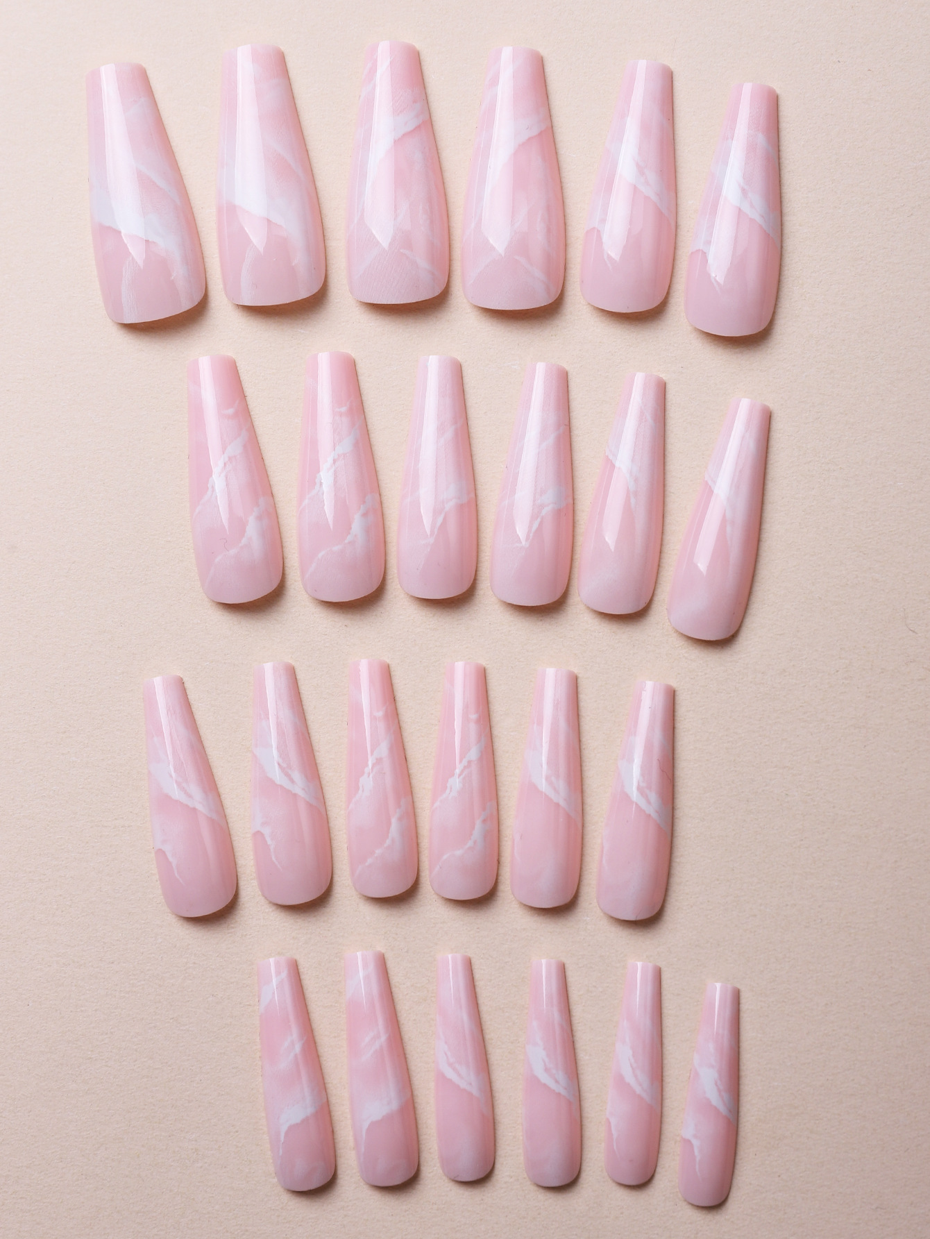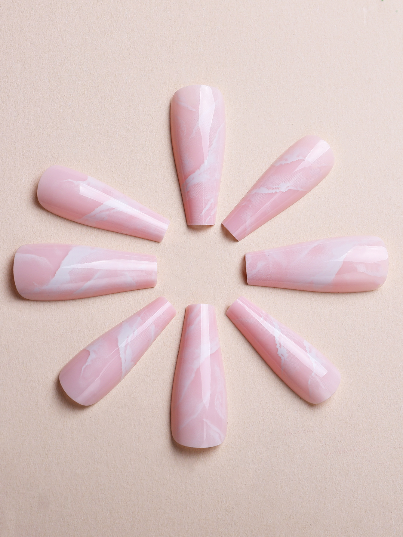 Millones de puntos venta directa patrón de mármol transfronterizo armadura portátil rosa manicura falsa armadura portátil desmontable de longitud media