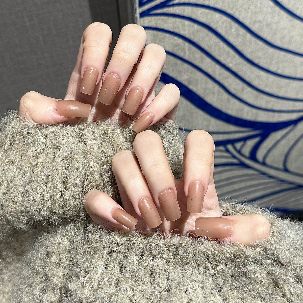 Transfronterizo de las mujeres portátiles manicura al por mayor simple medio y rectangular color sólido manicura uñas parche desgaste uñas al por mayor