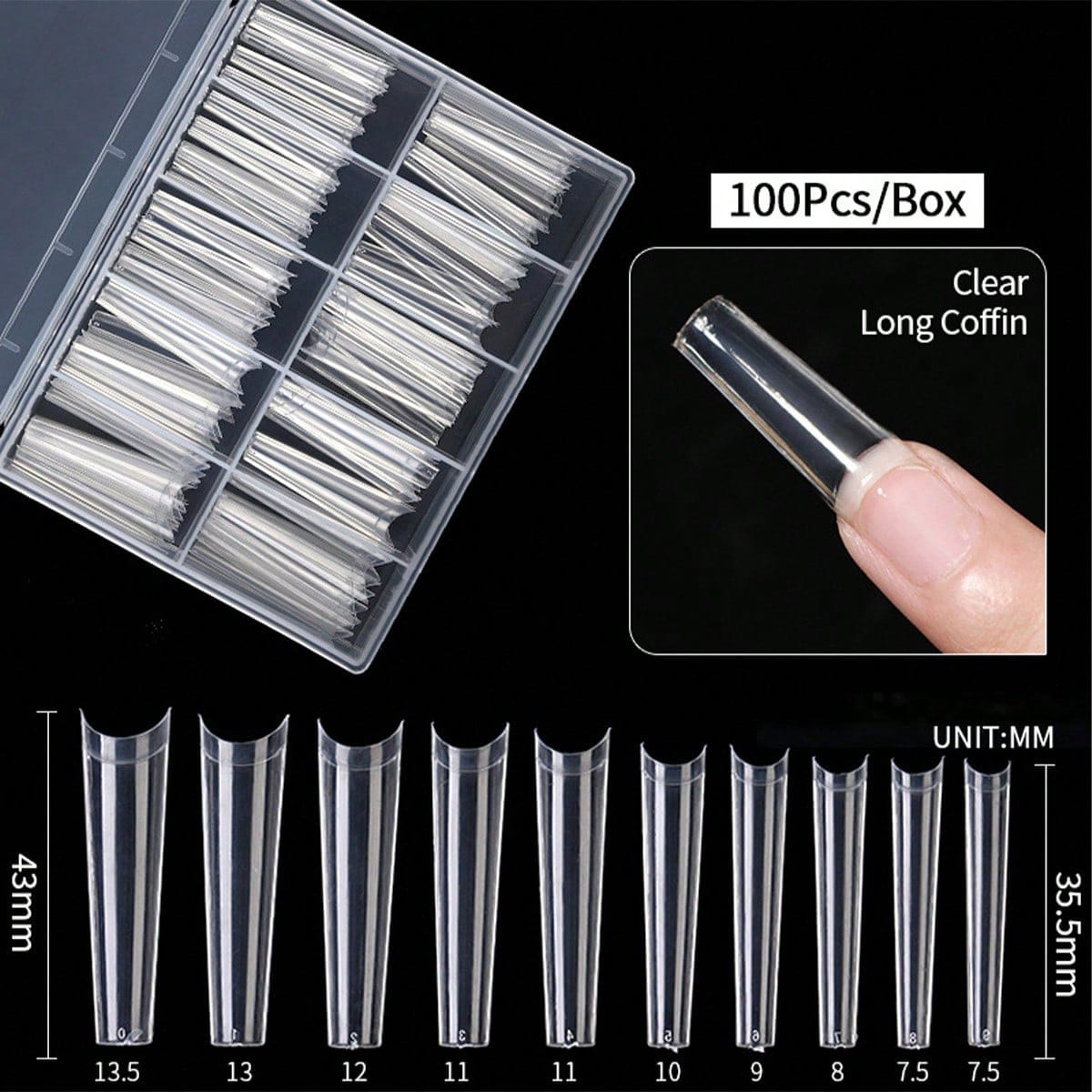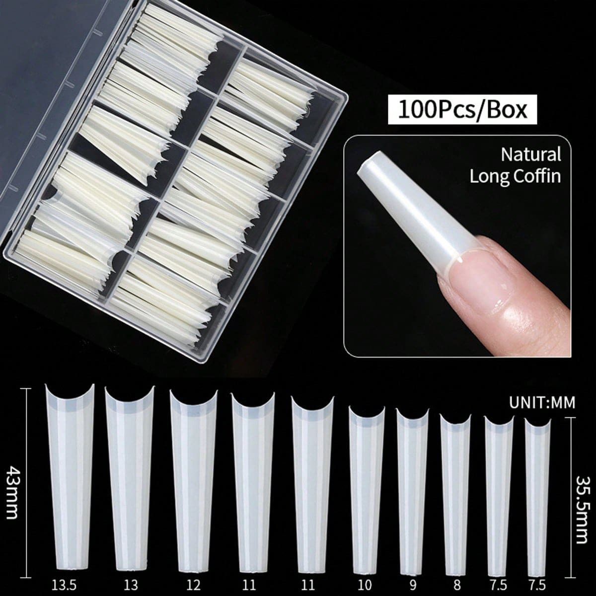 FUENTE Manicura de fábrica terminó la pieza de clavo de la pipa de agua tipo C extendida clavo falso francés 100 piezas en caja en stock al por mayor