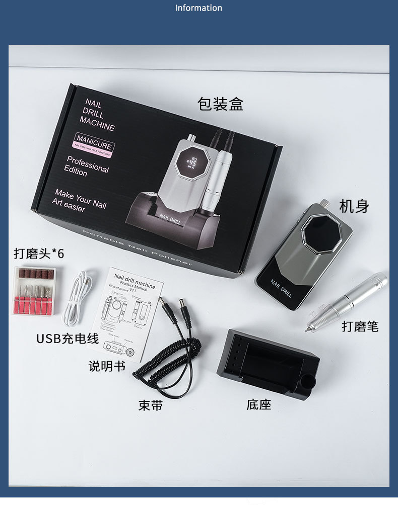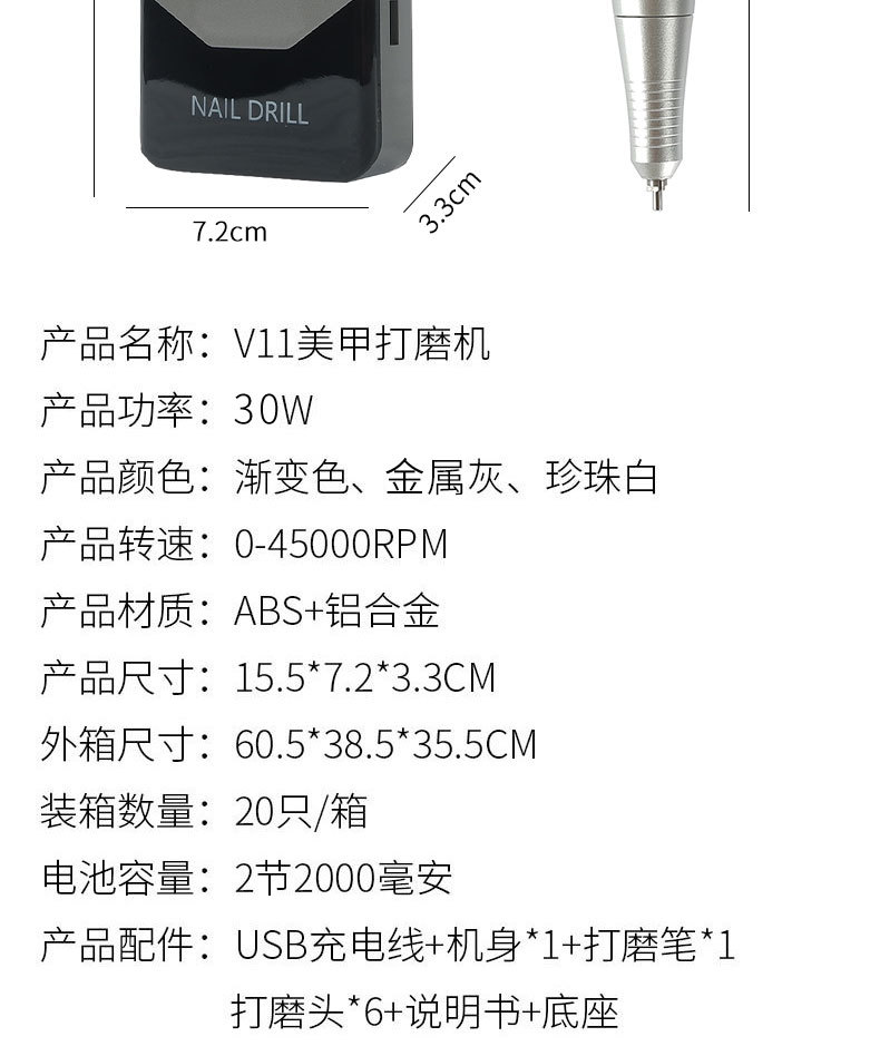 Amoladora de uñas portátil para tienda de uñas 45000 rpm amoladora de uñas eléctrica pulido V11 amoladora de uñas