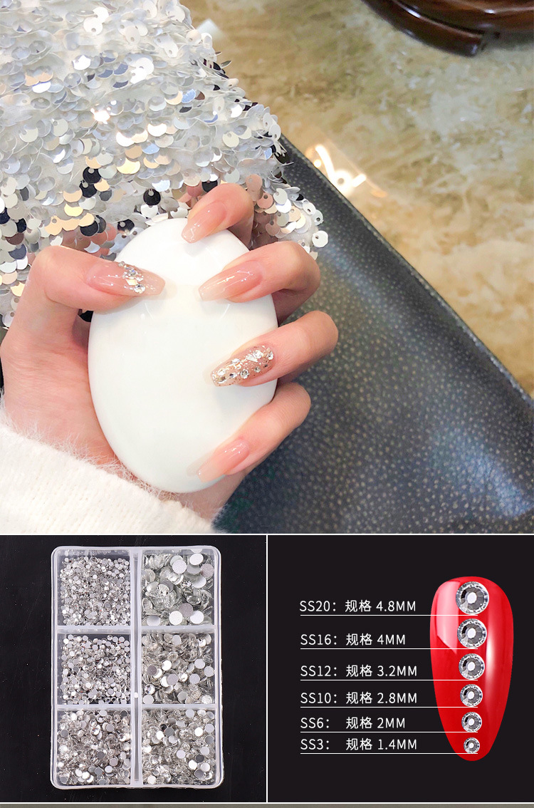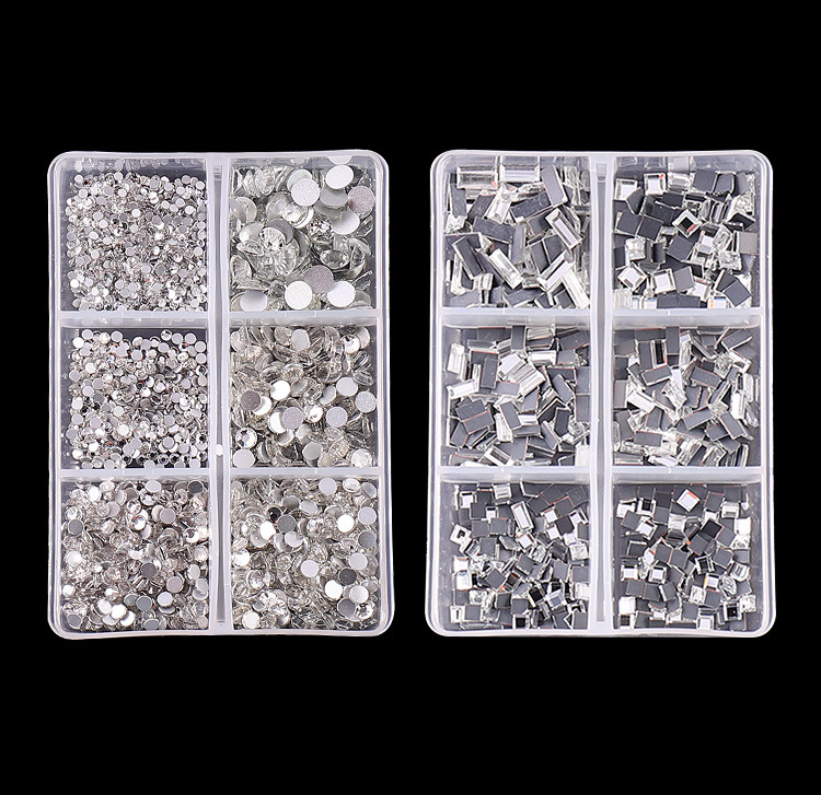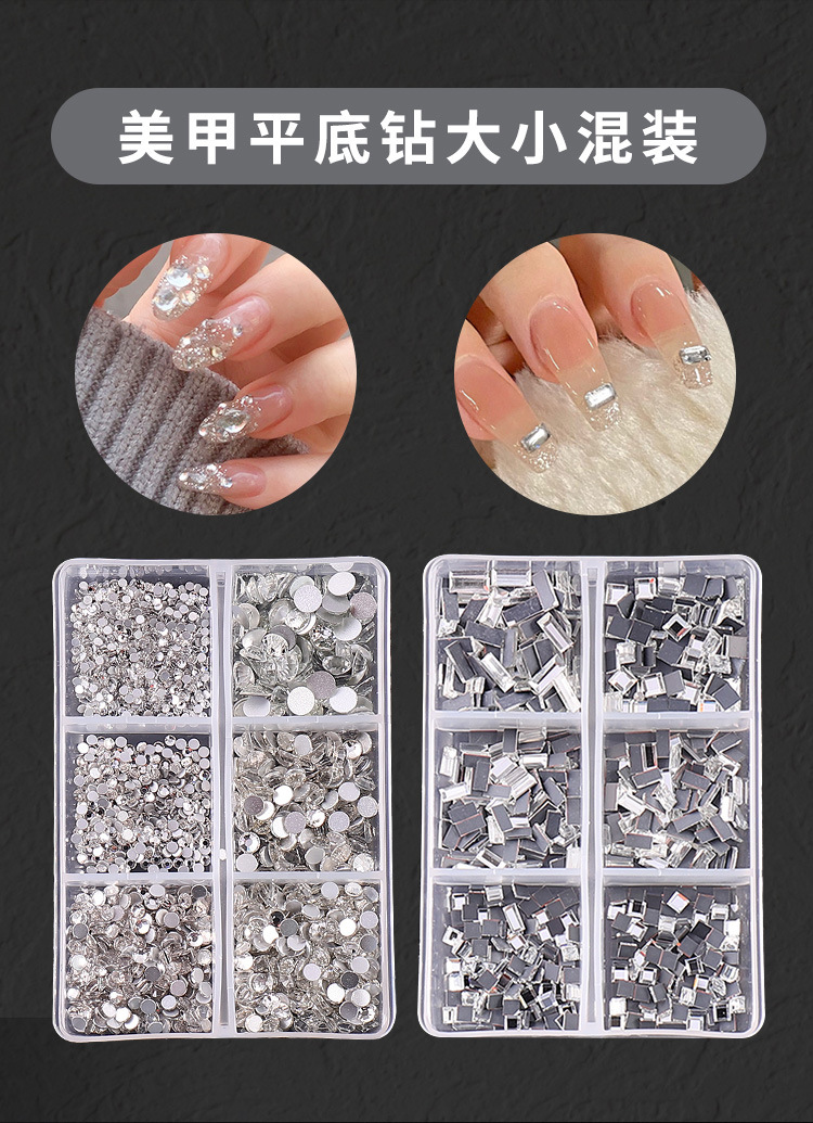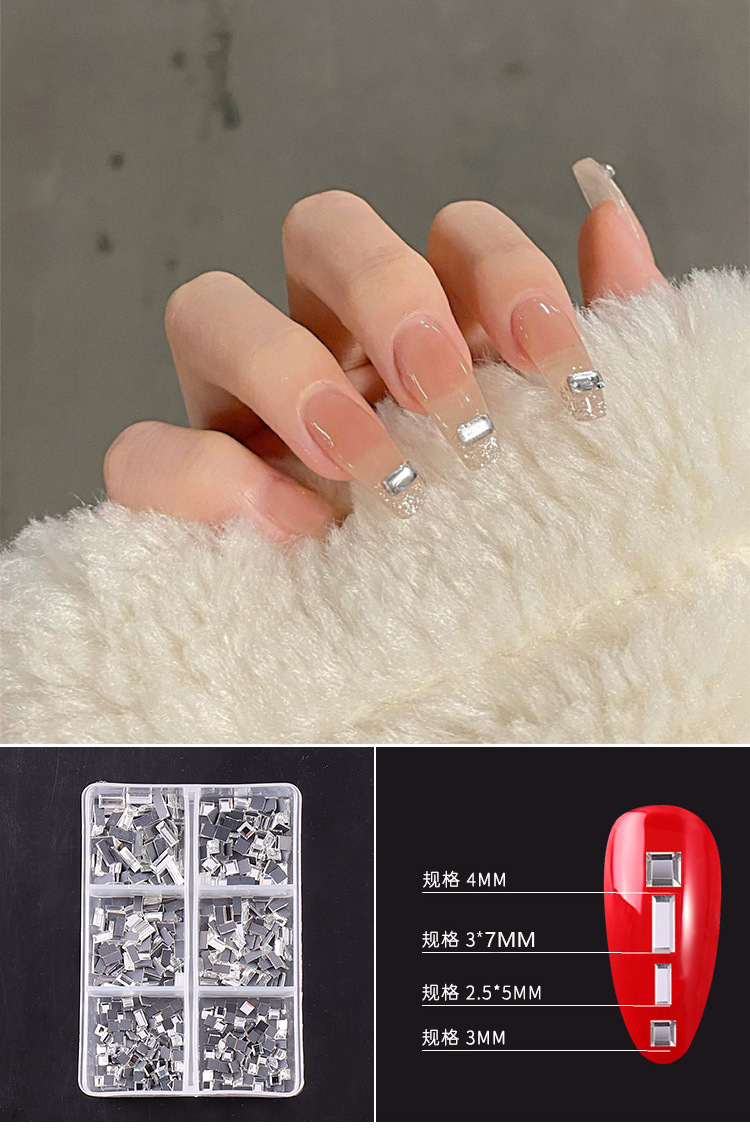 Internet celebridad plana diamante clavo arte Super flash en forma especial espejo de lujo mezclado pequeño diamante transparente cuadrado 6-pieza traje