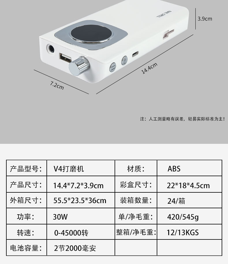 Lijadora de uñas recargable portátil, removedor de uñas eléctrico, pulido, lijadora de uñas V4, especial para salón de uñas
