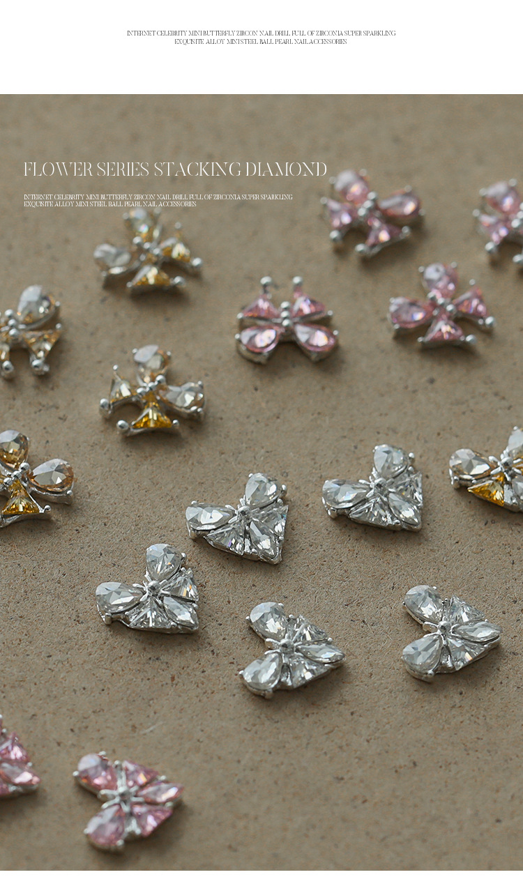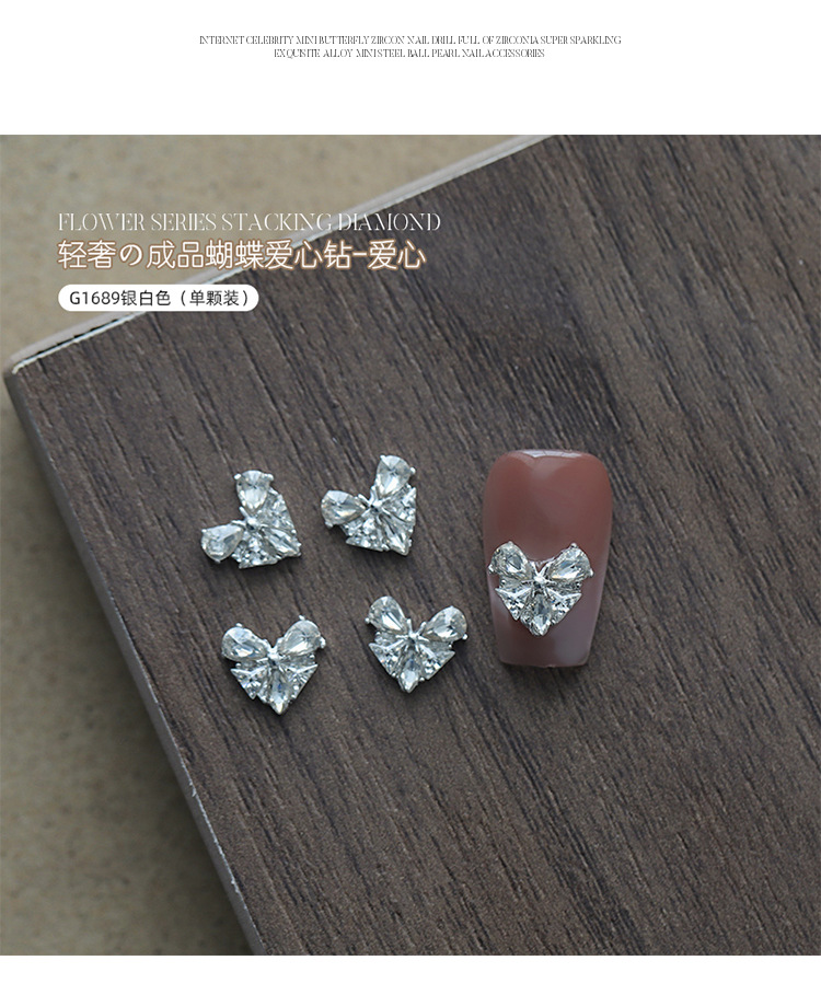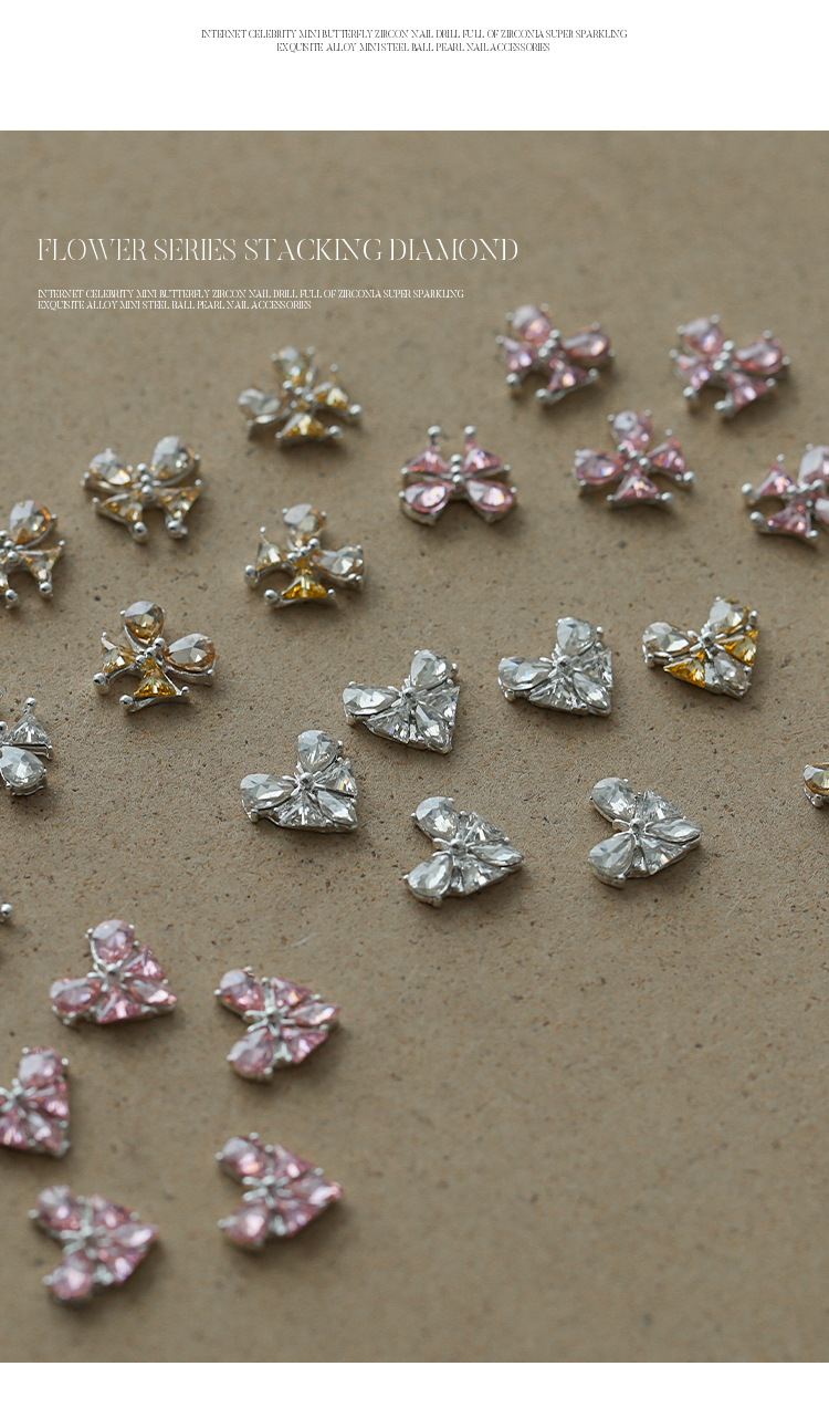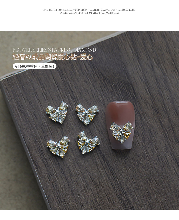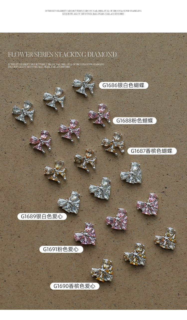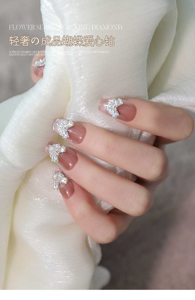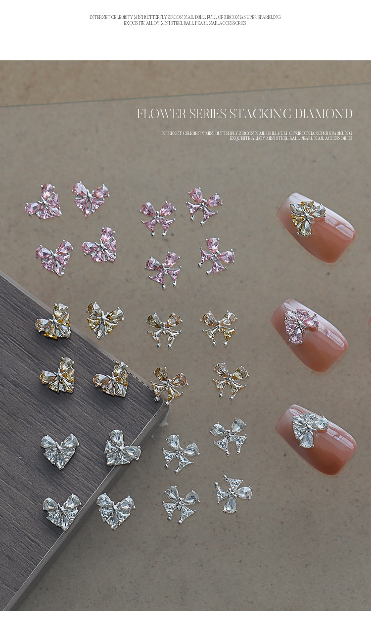 Love bowknot aleación manicura pila de diamantes productos terminados celebridades de Internet nuevas decoraciones de uñas de diamantes de pila súper flash al por mayor
