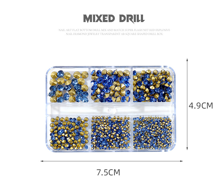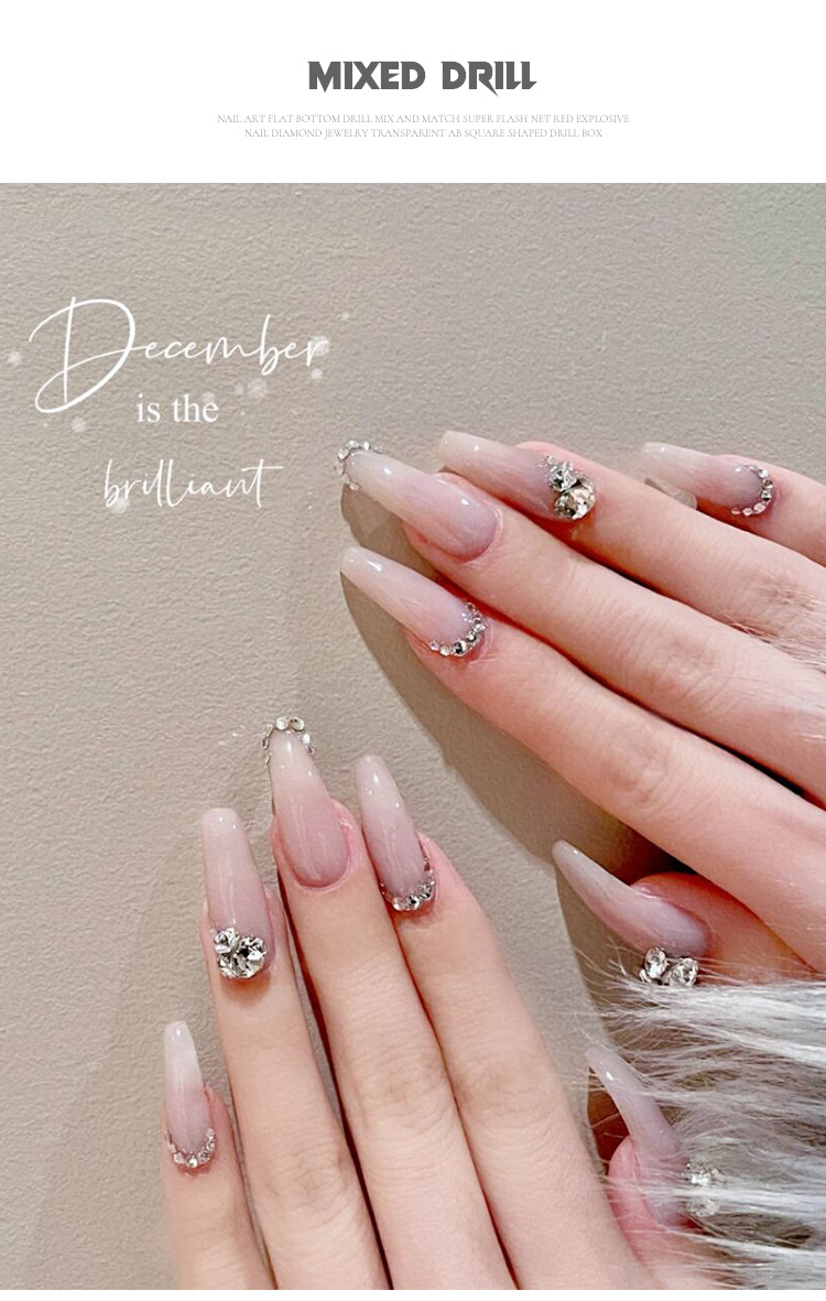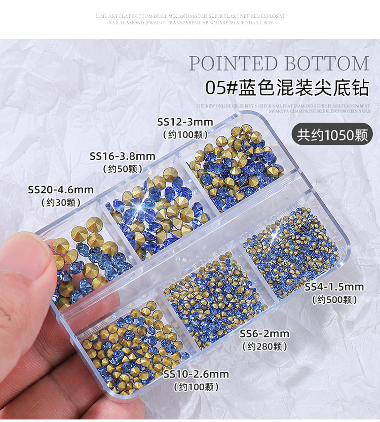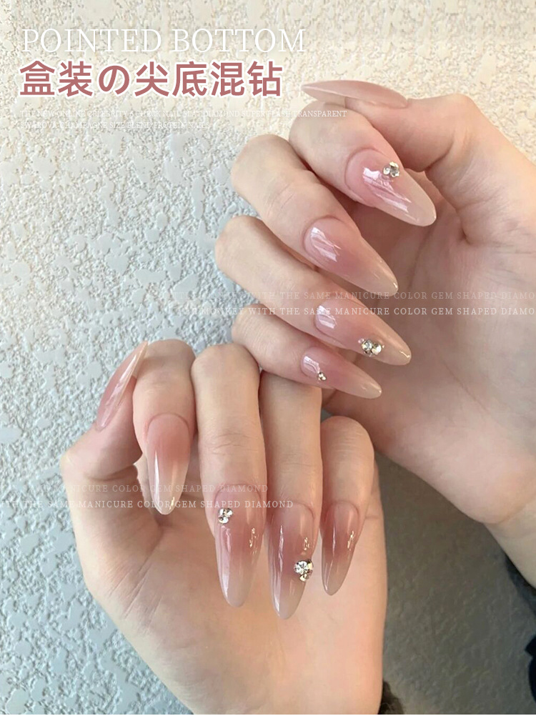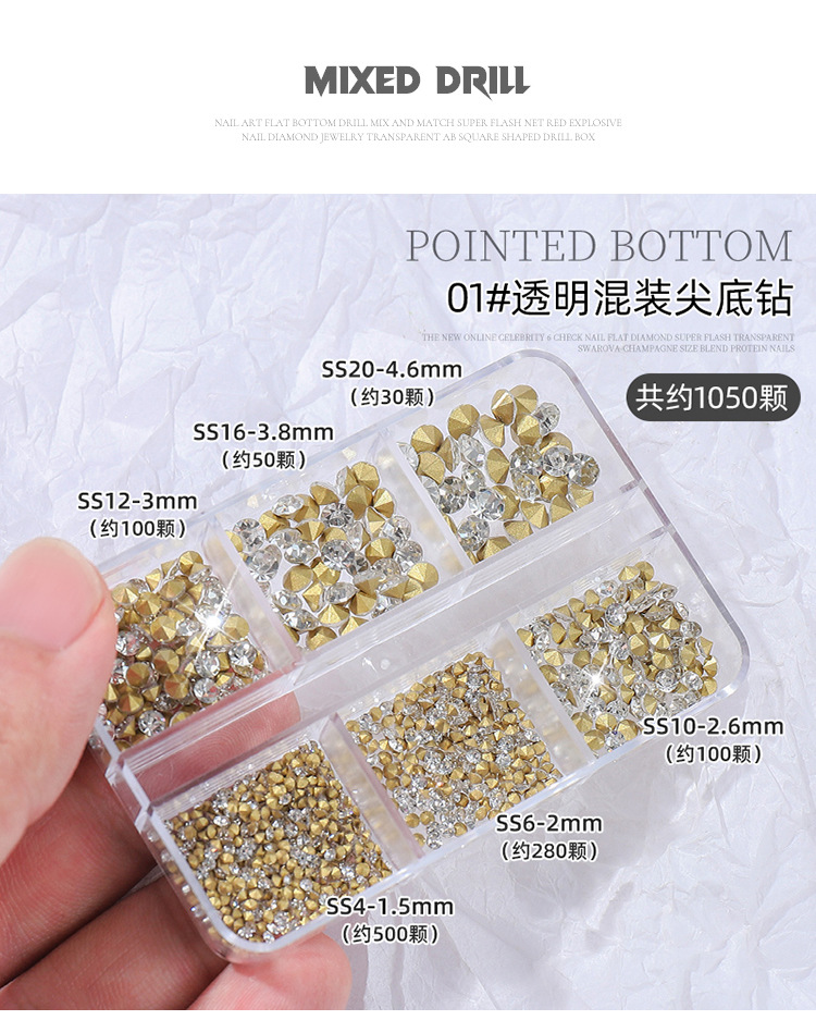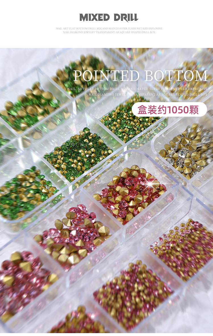 K9 arte de uñas puntiagudo Diamante de fondo transparente Rosa champán color mágico tamaño mixto uñas arte joyería pila diamante mano completa taladro de uñas
