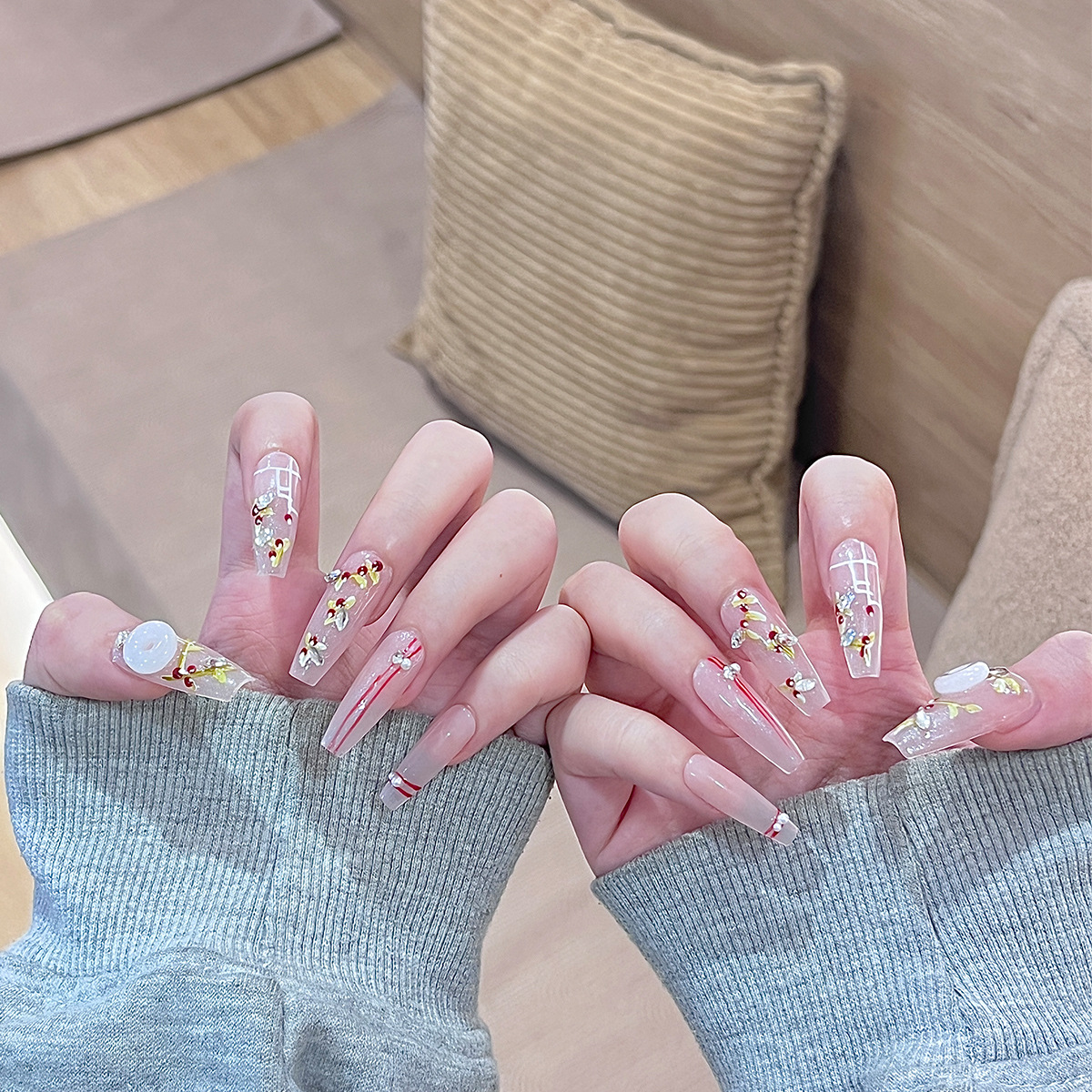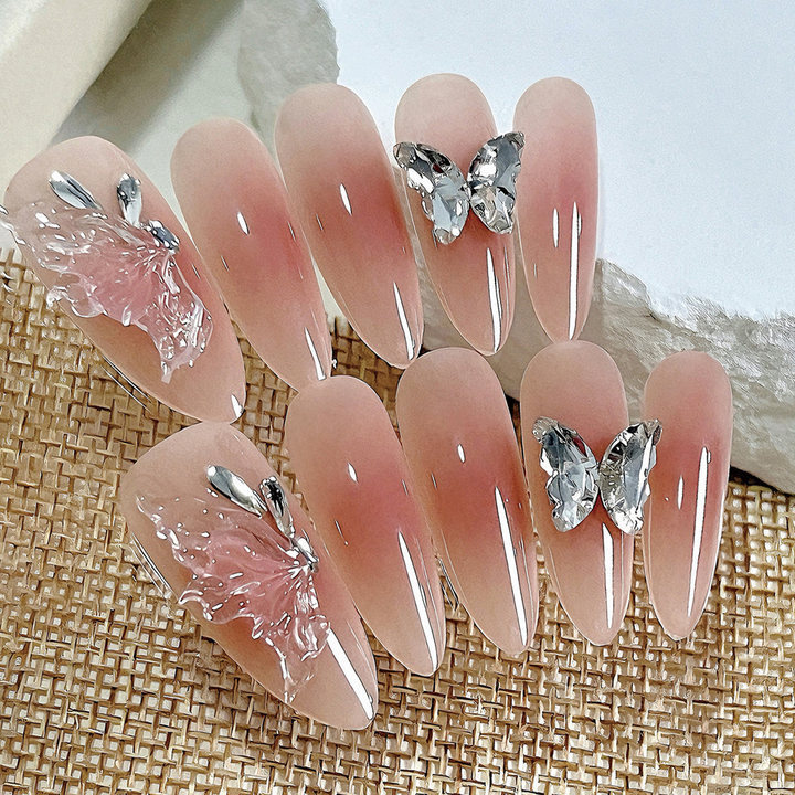 Manos de uso de uñas gradiente blush estereoscópio relieve manicure manicure falsa explosión pura lujo puro manicure