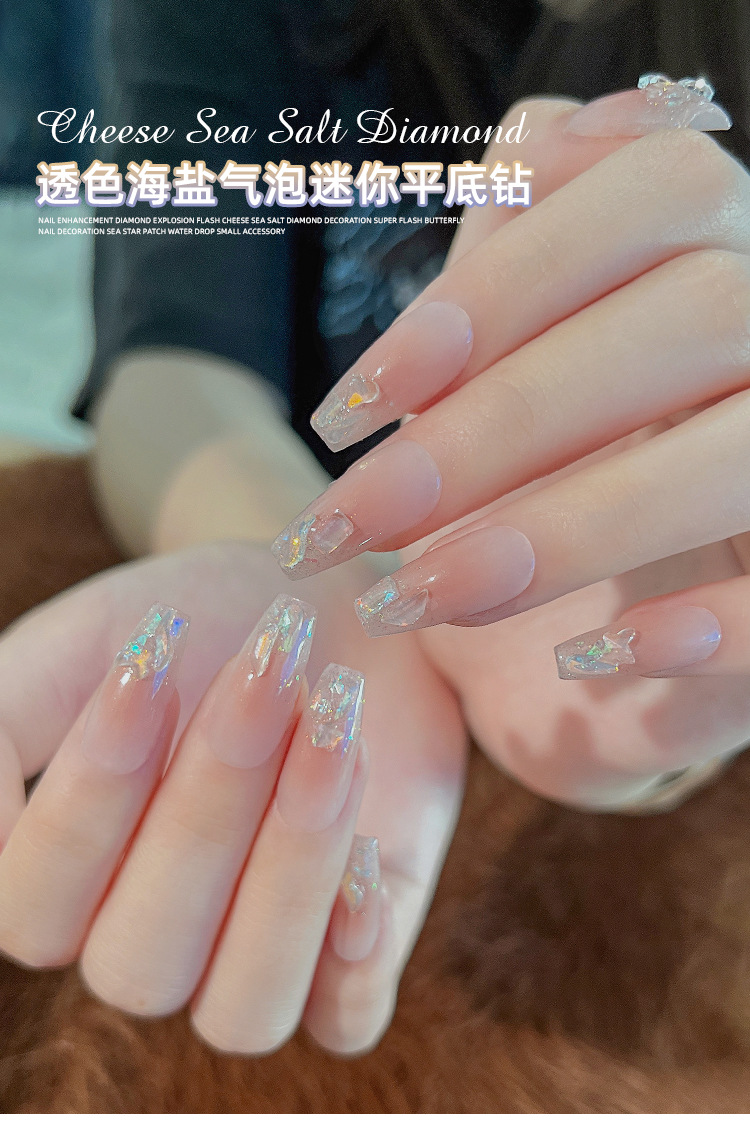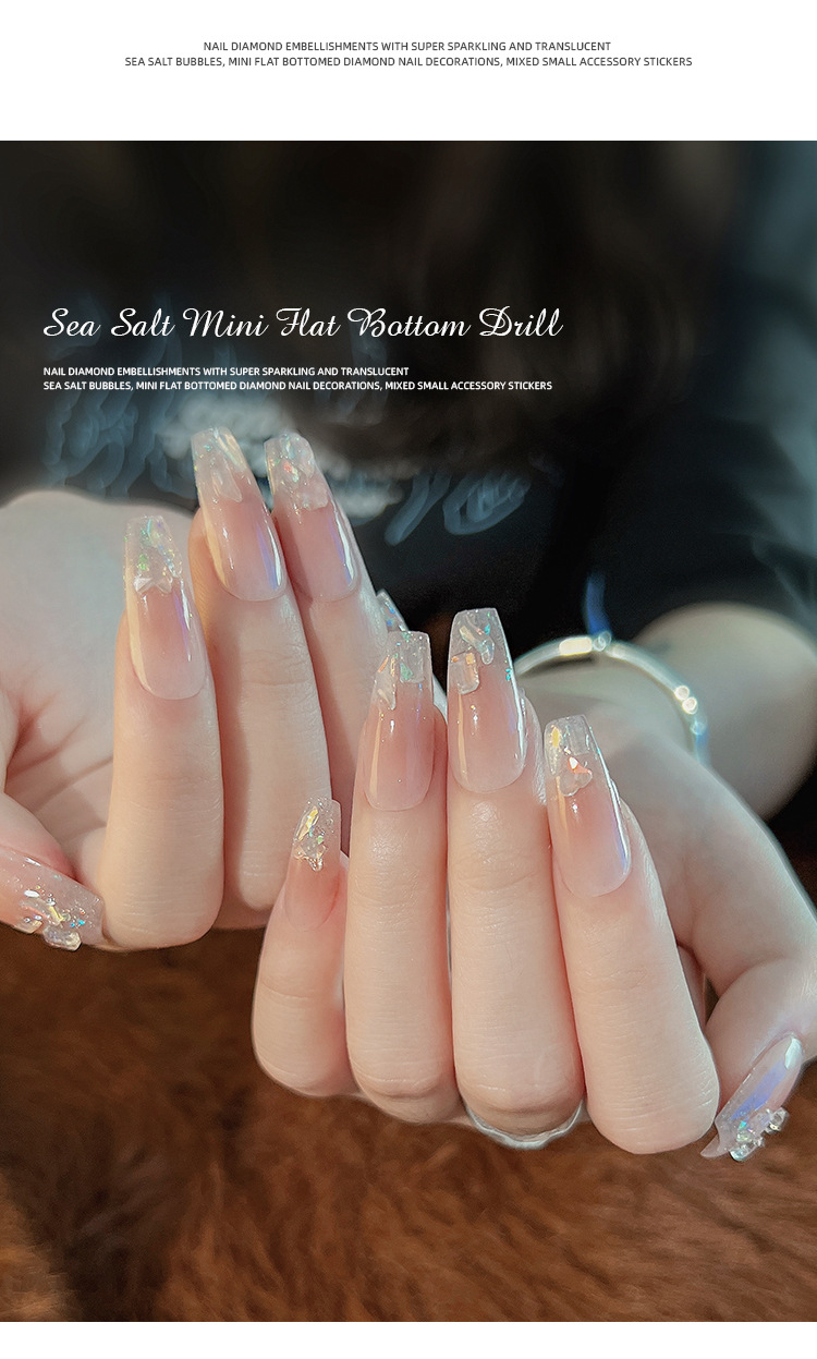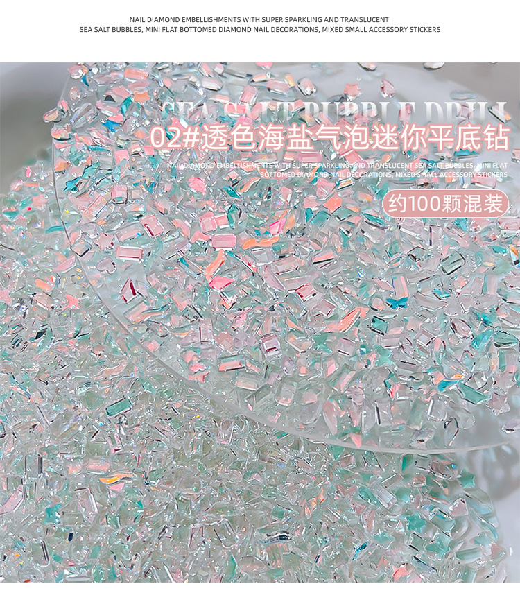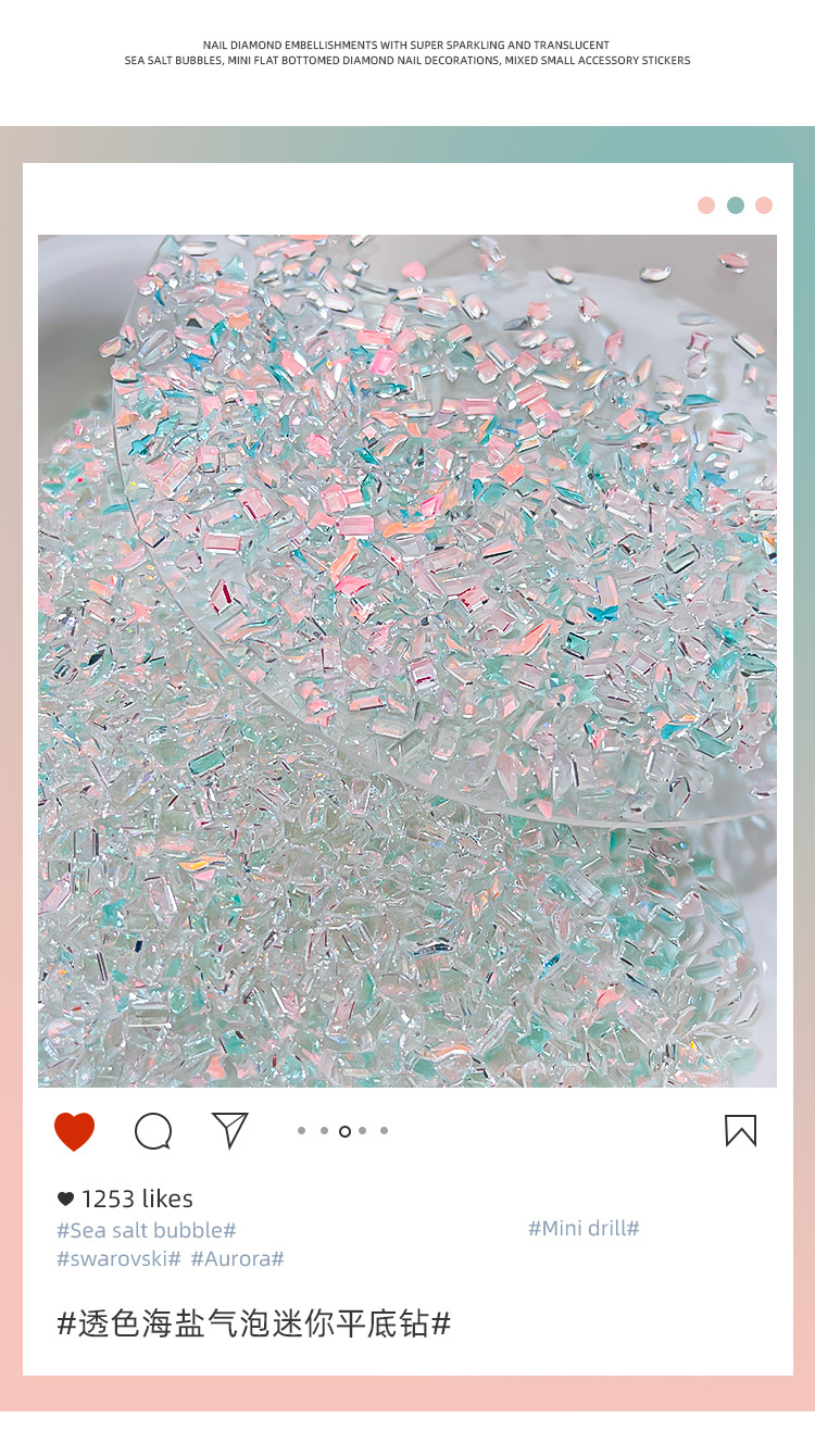 Popular en línea popular sal de mar burbuja arte de uñas diamante en forma especial tamaño pequeño color de fondo transparente Aurora mezclado joyería de uñas al por mayor