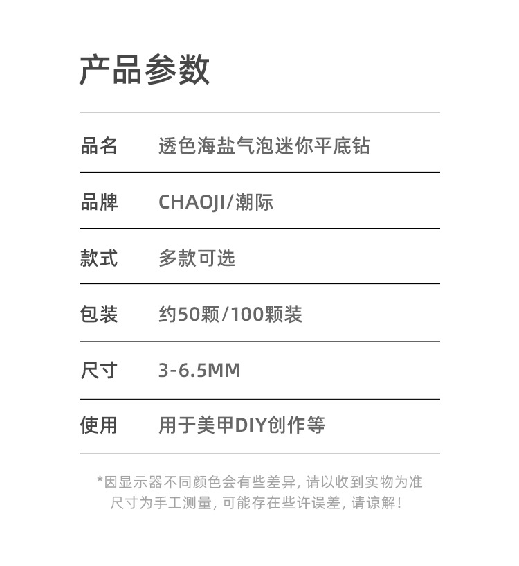 | Especificaciones | 50 diamantes de burbuja de sal marina mezclados,Burbuja de sal marina diamante 100 mezclado |