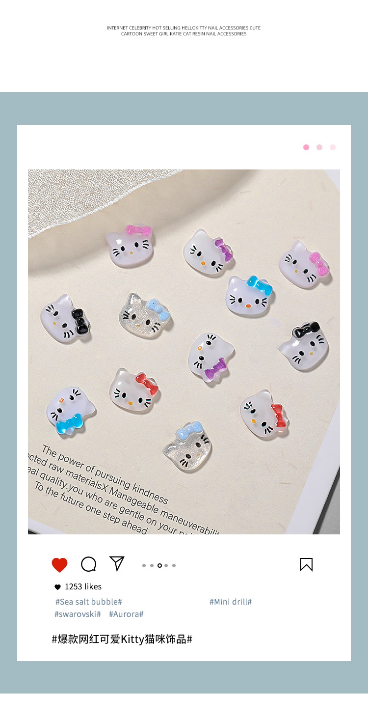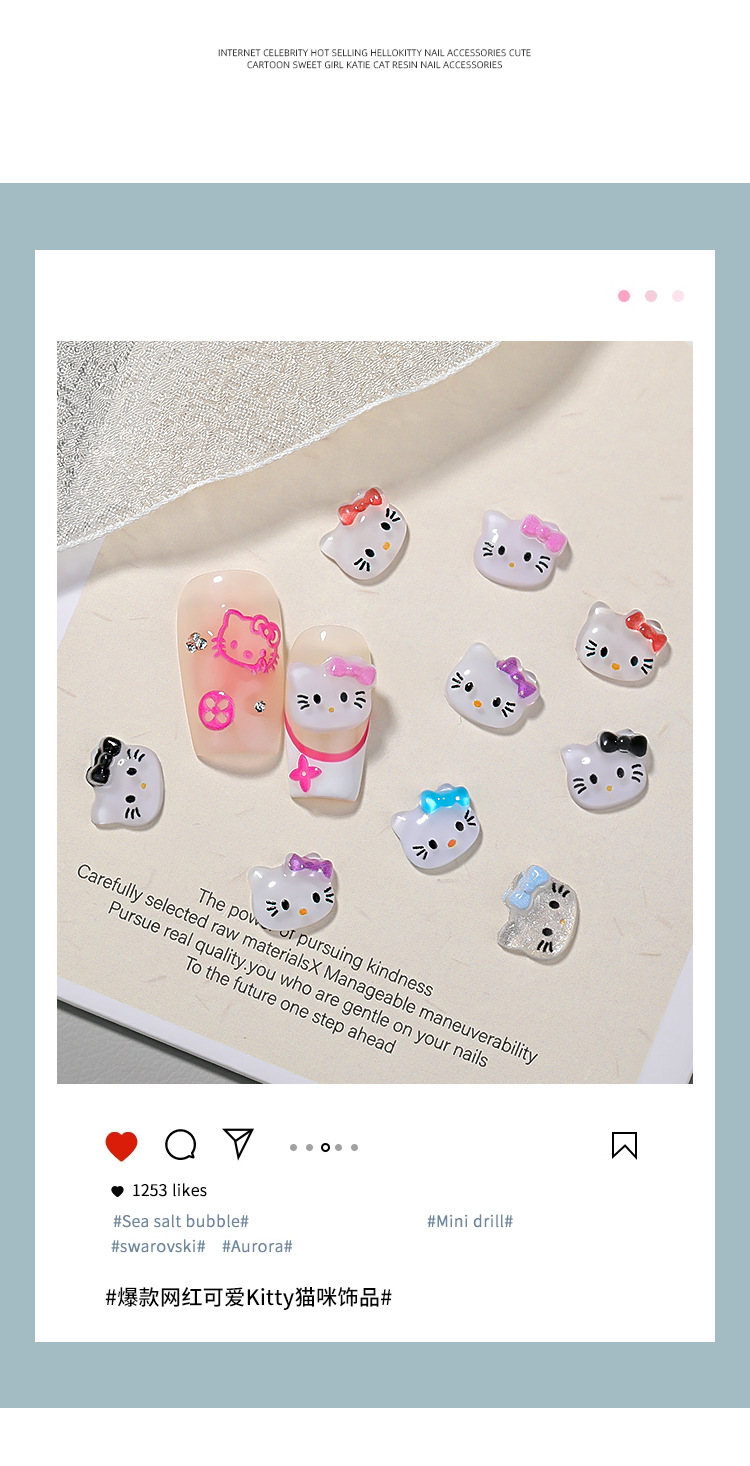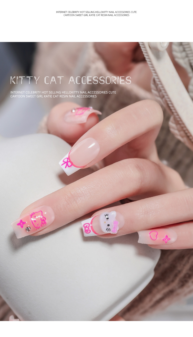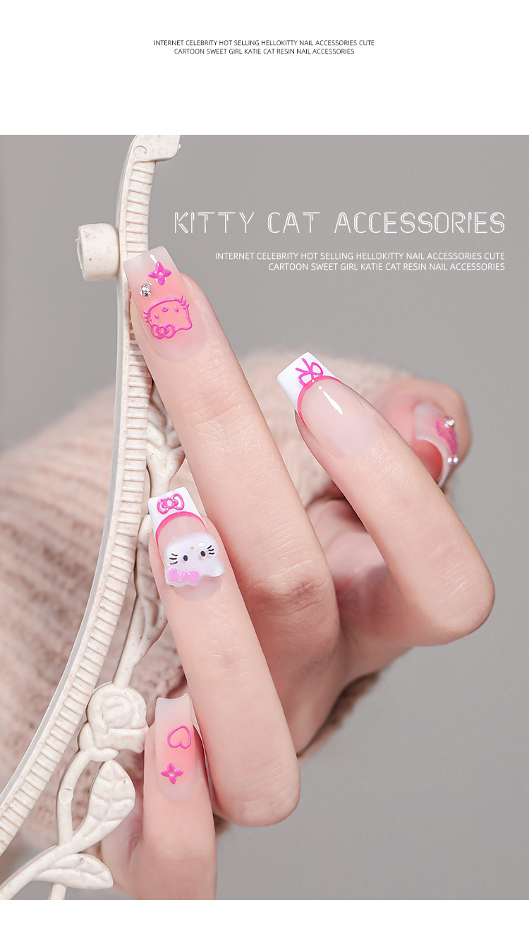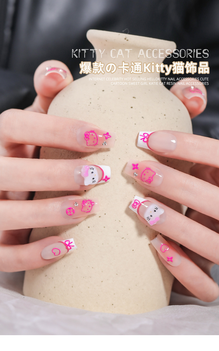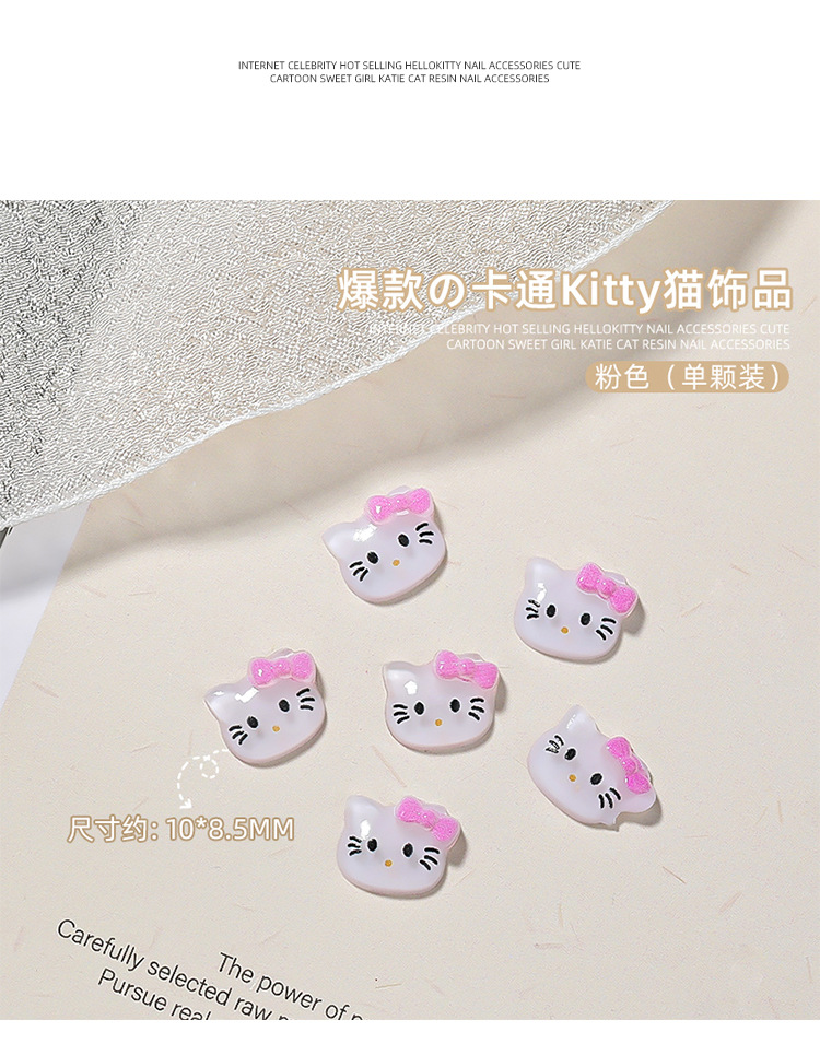 Popular en línea accesorios de uñas HelloKitty dibujos animados lindo dulce chica resina accesorios de uñas al por mayor