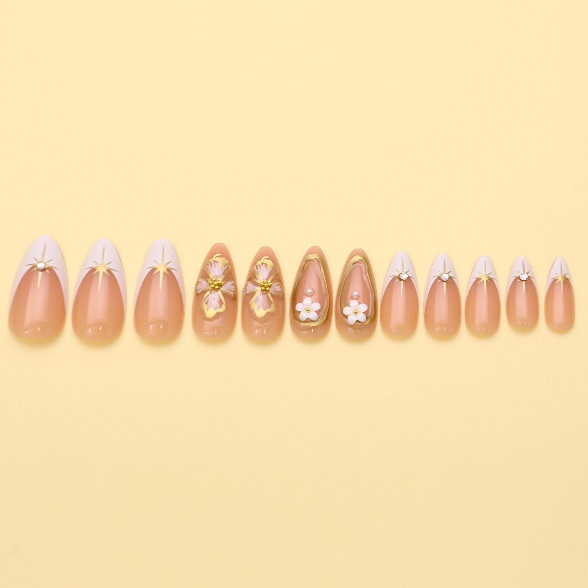 Uñas para uñas, parche de uñas simple para llevar, uñas postizas de diamantes franceses, uñas de flores, uñas al por mayor