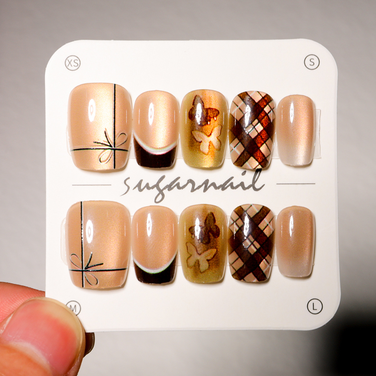 Nuevo 10 piezas de ágata mariposa ojo de gato que usa uñas postizas de sentido avanzado ojo de gato parche hecho a mano
