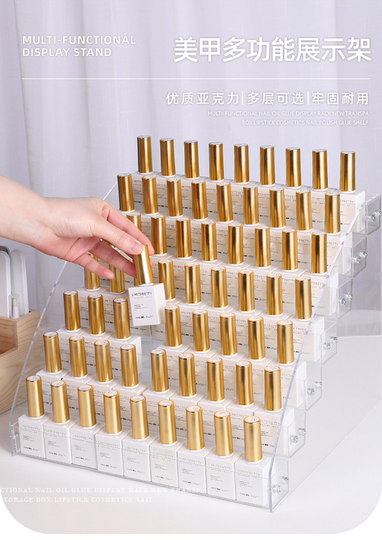 Nail Art multi-capa de esmalte de uñas pegamento soporte de exhibición caja de almacenamiento transparente de acrílico herramienta funcional cosmética estante de dedo