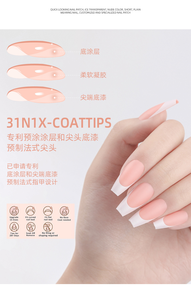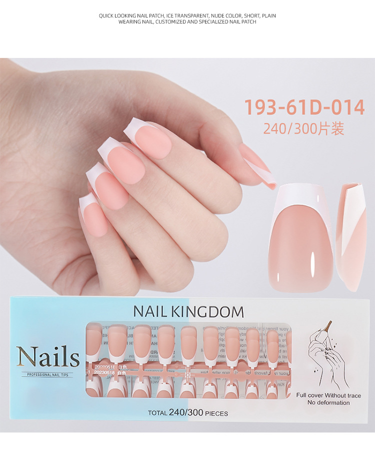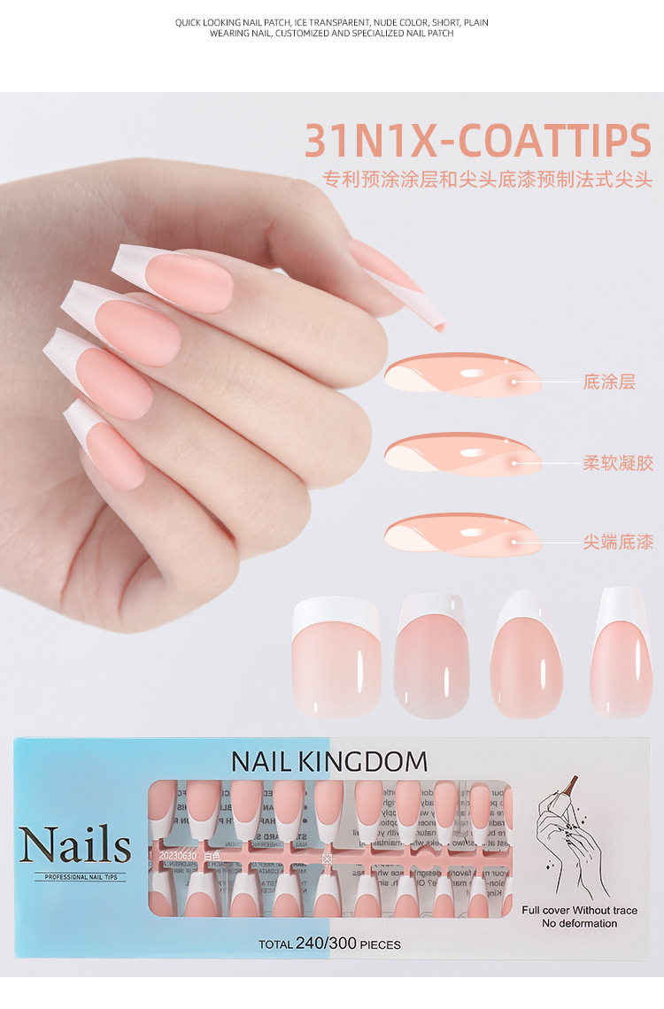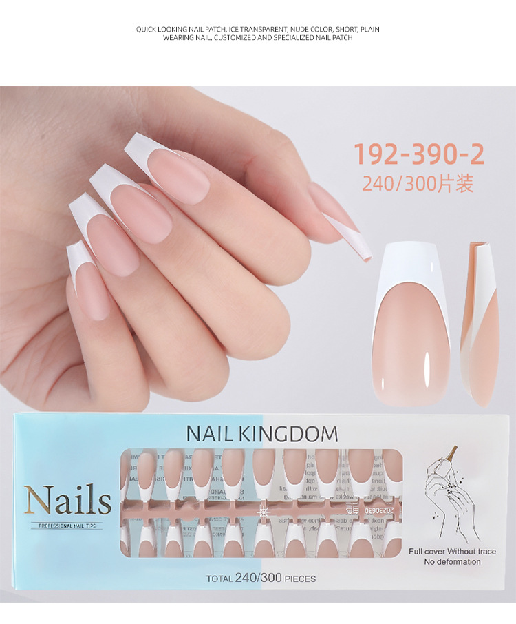 Nueva caja de uñas de uso francés transfronterizo con uñas falsas, piezas de uñas semiacabadas, pegatinas francesas sin costuras mate 240 piezas