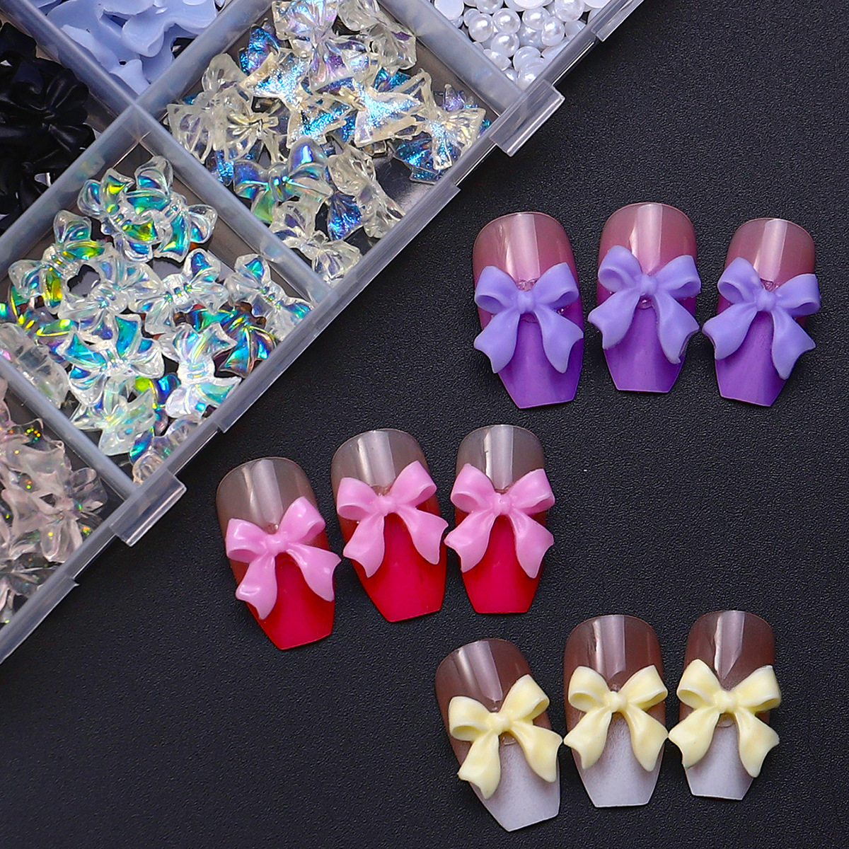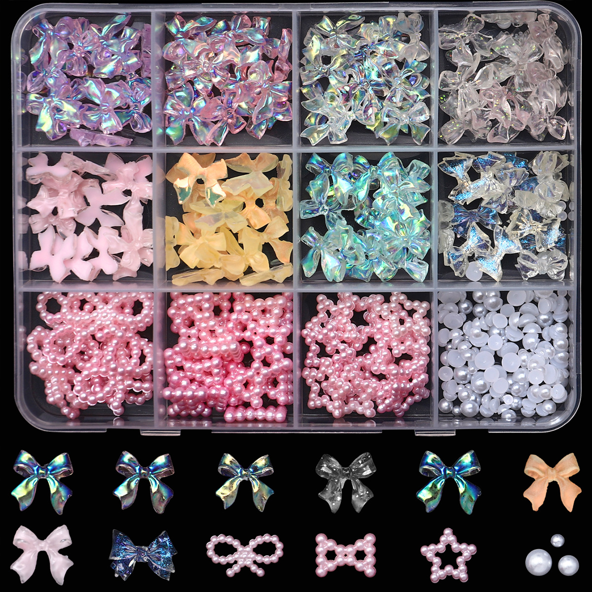 Ventas transfronterizas de mariposa 12 caja de perlas de amor resina diy accesorios de uñas al por mayor