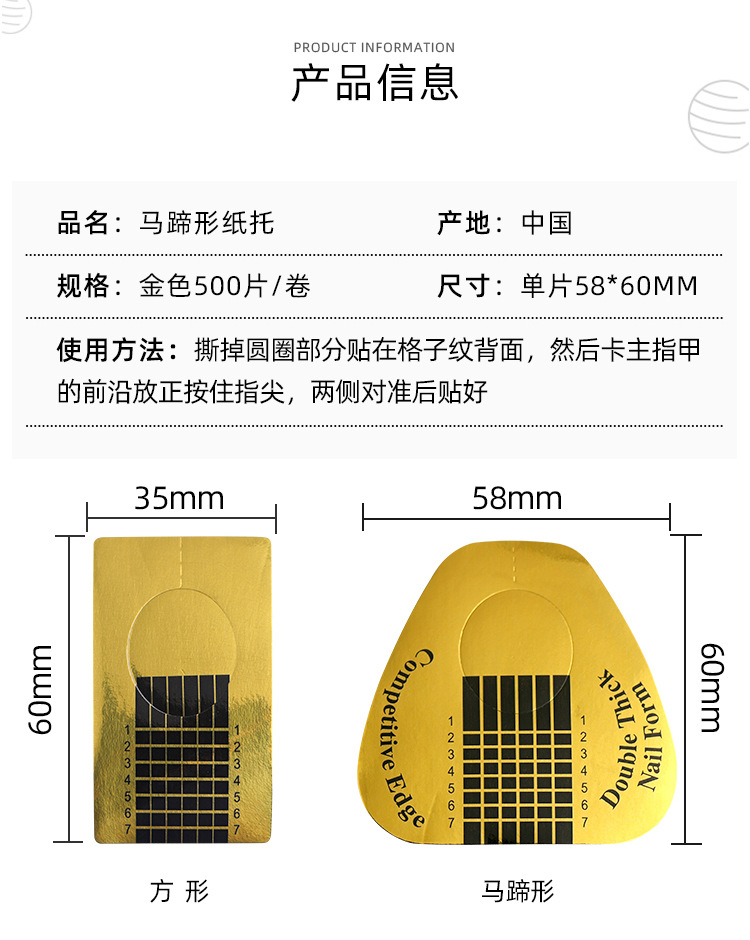 Pegamento de extensión de uñas soporte de papel en forma de herradura rectangular cristal fototerapia pegamento auxiliar herramientas especiales 500 piezas
