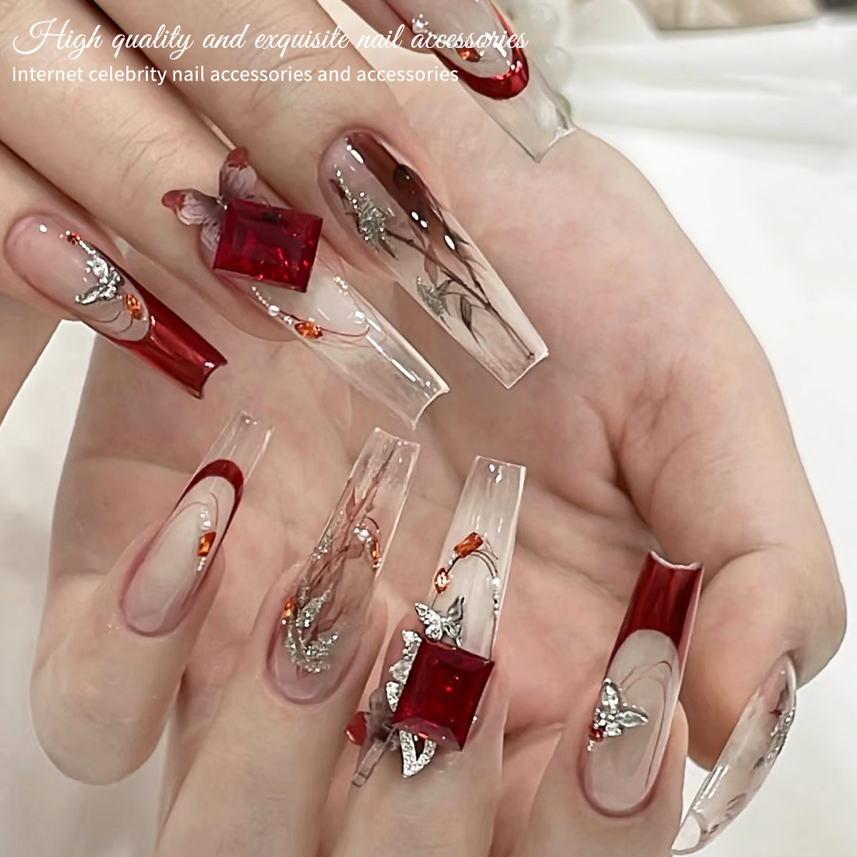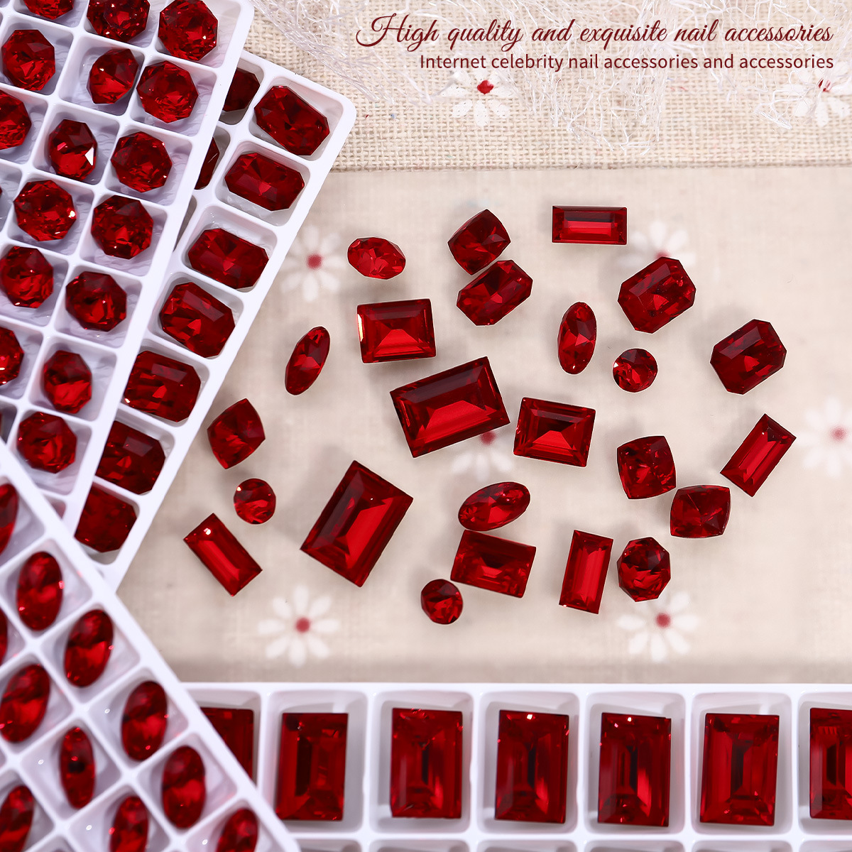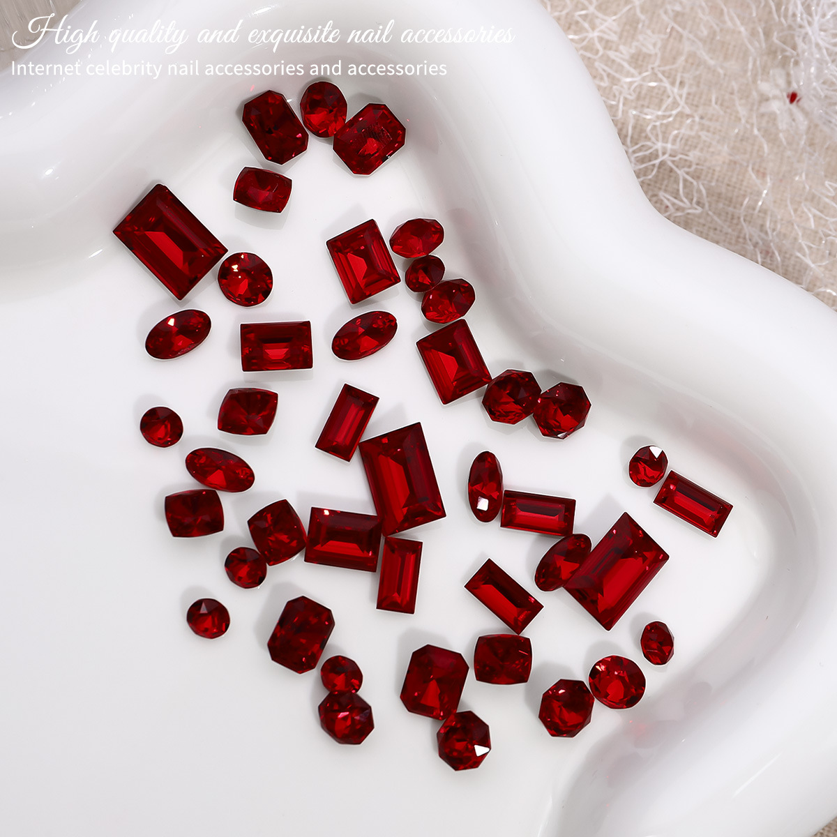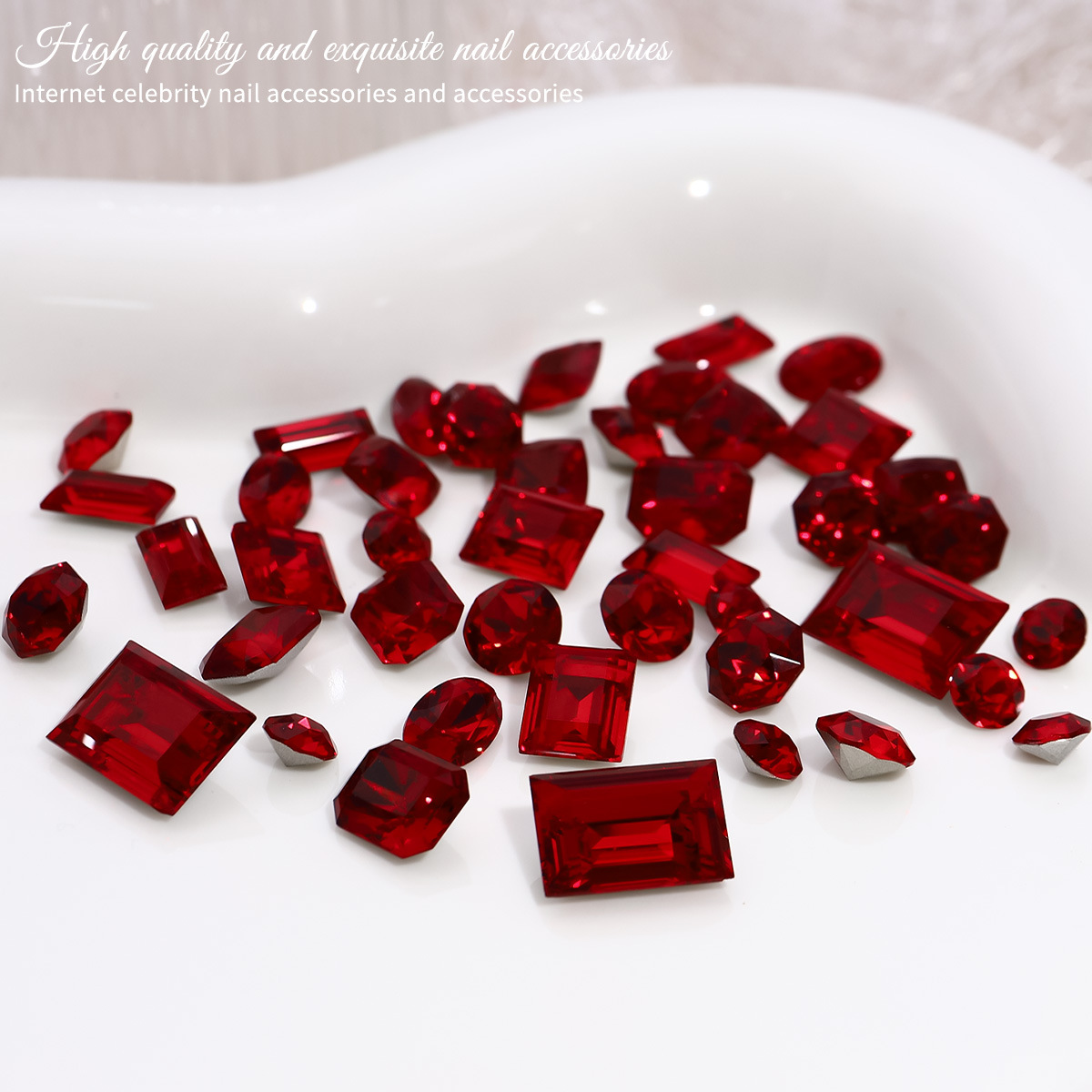 Manicuría K9 taladro de punta anchor rojo amor de diamante de grasa cuadrado rectangular octogonal joyería de uñas de diamante 5 piezas