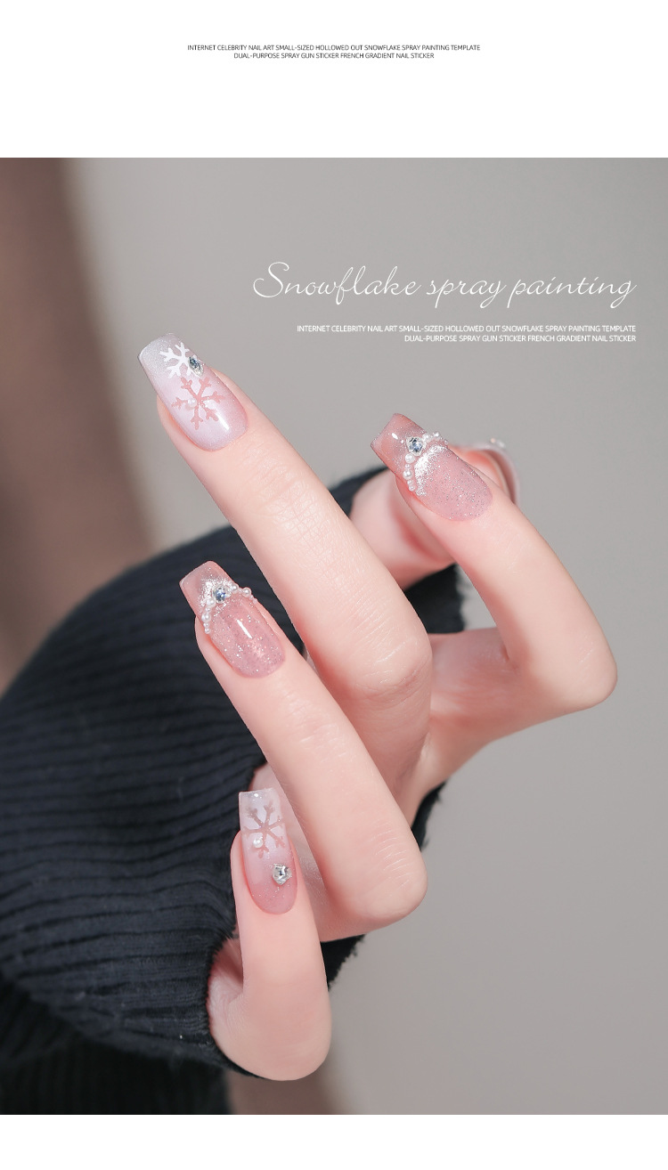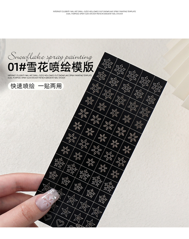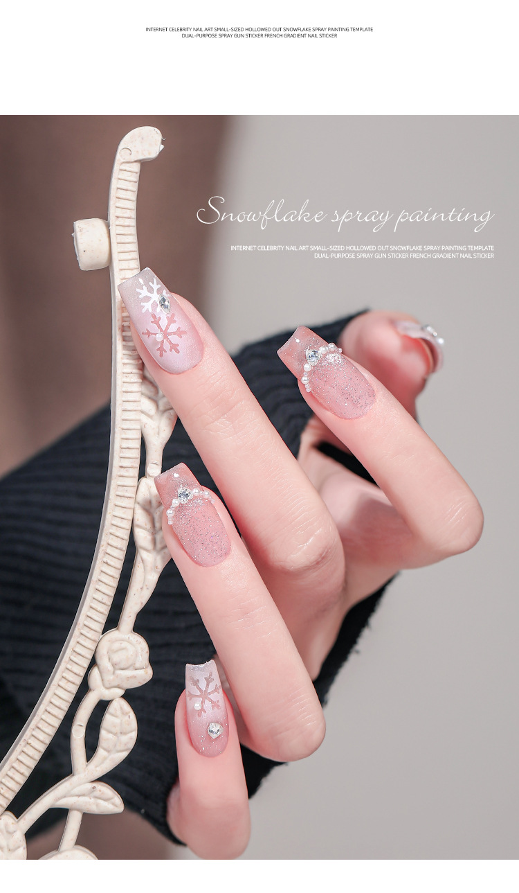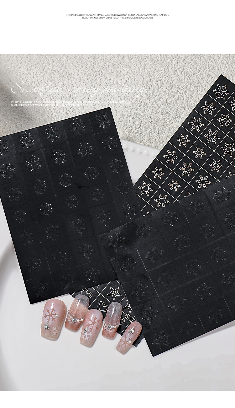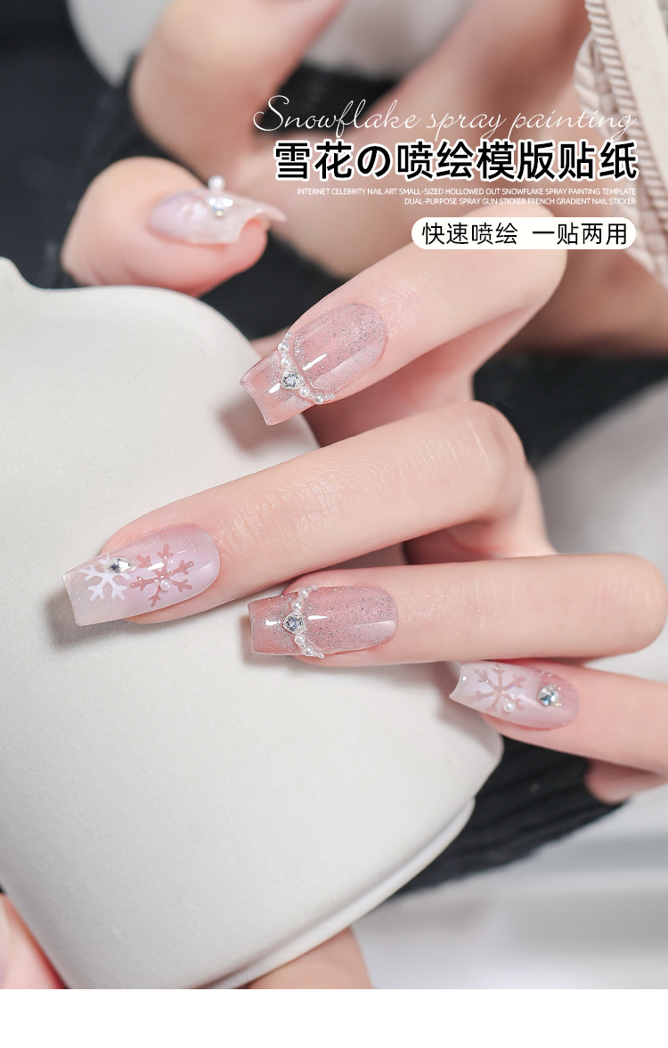 Internet celebridad manicura tamaño pequeño hueco copo de nieve pintura en aerosol Plantilla de doble uso PISTOLA DE PULVERIZACIÓN pegatinas francés gradiente calcomanías de uñas
