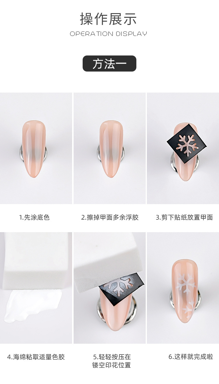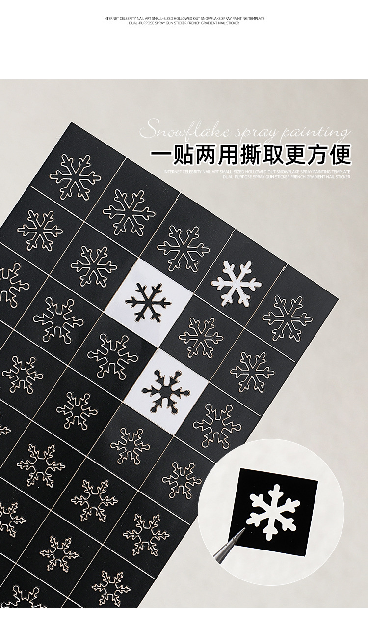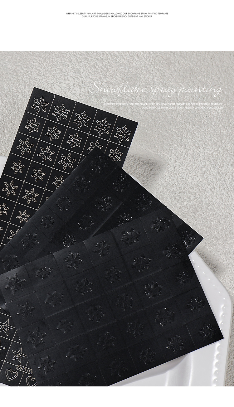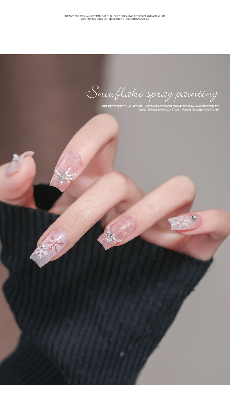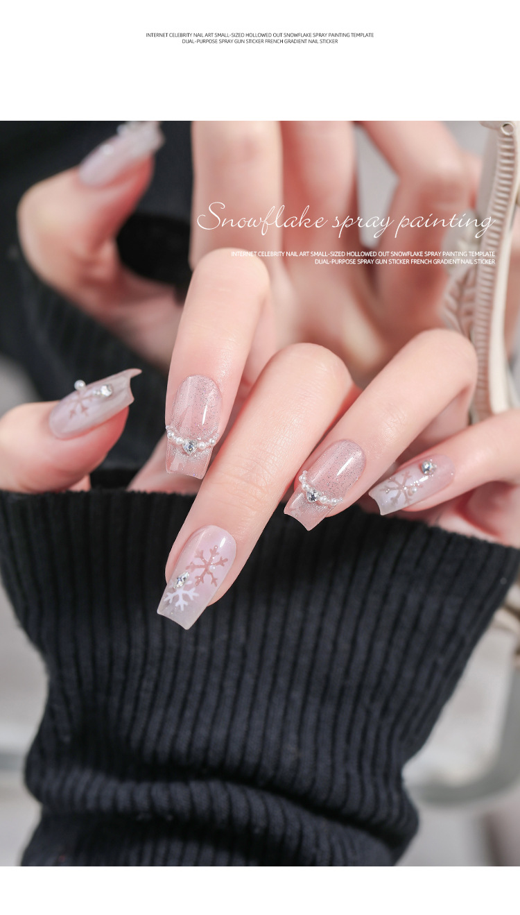 Internet celebridad manicura tamaño pequeño hueco copo de nieve pintura en aerosol Plantilla de doble uso PISTOLA DE PULVERIZACIÓN pegatinas francés gradiente calcomanías de uñas