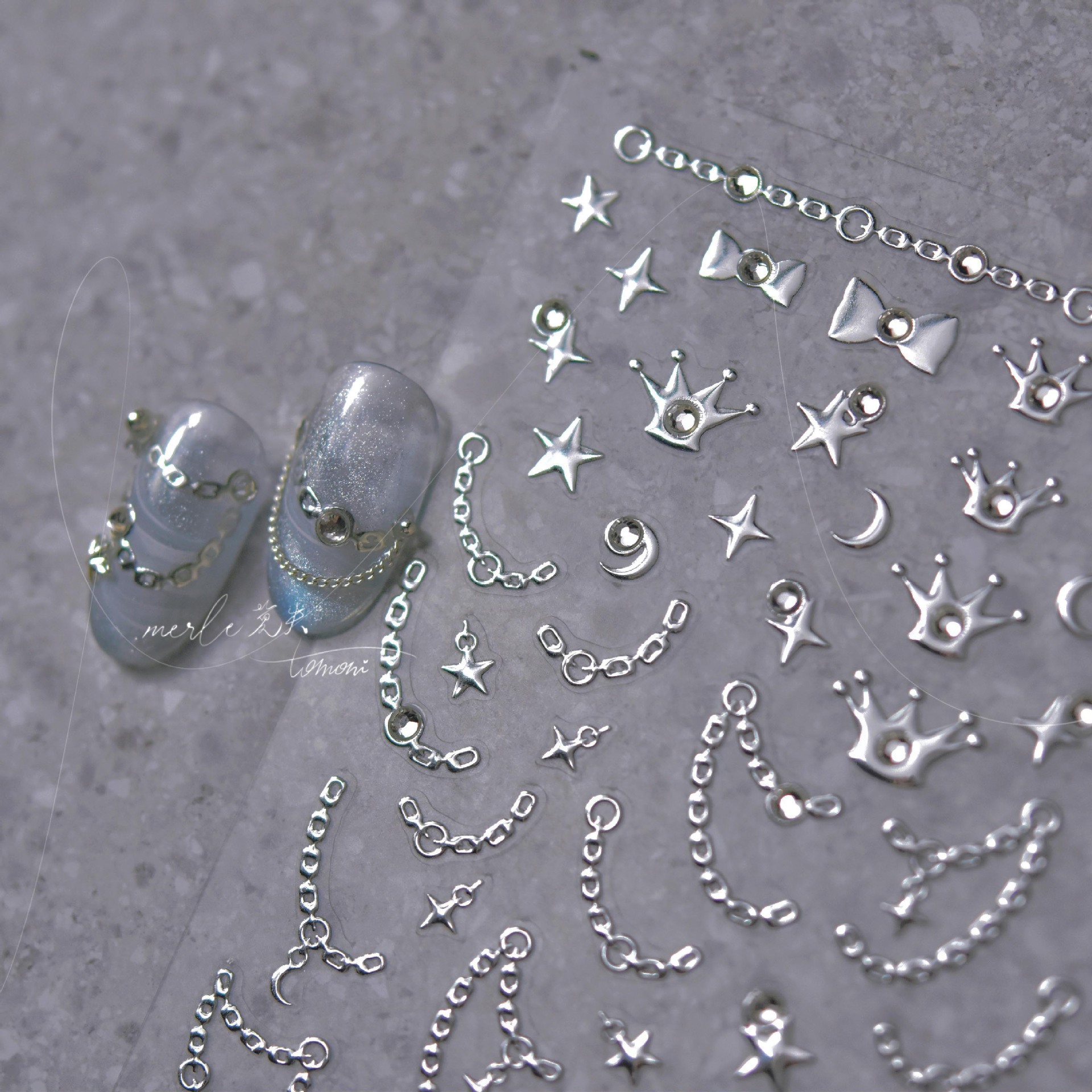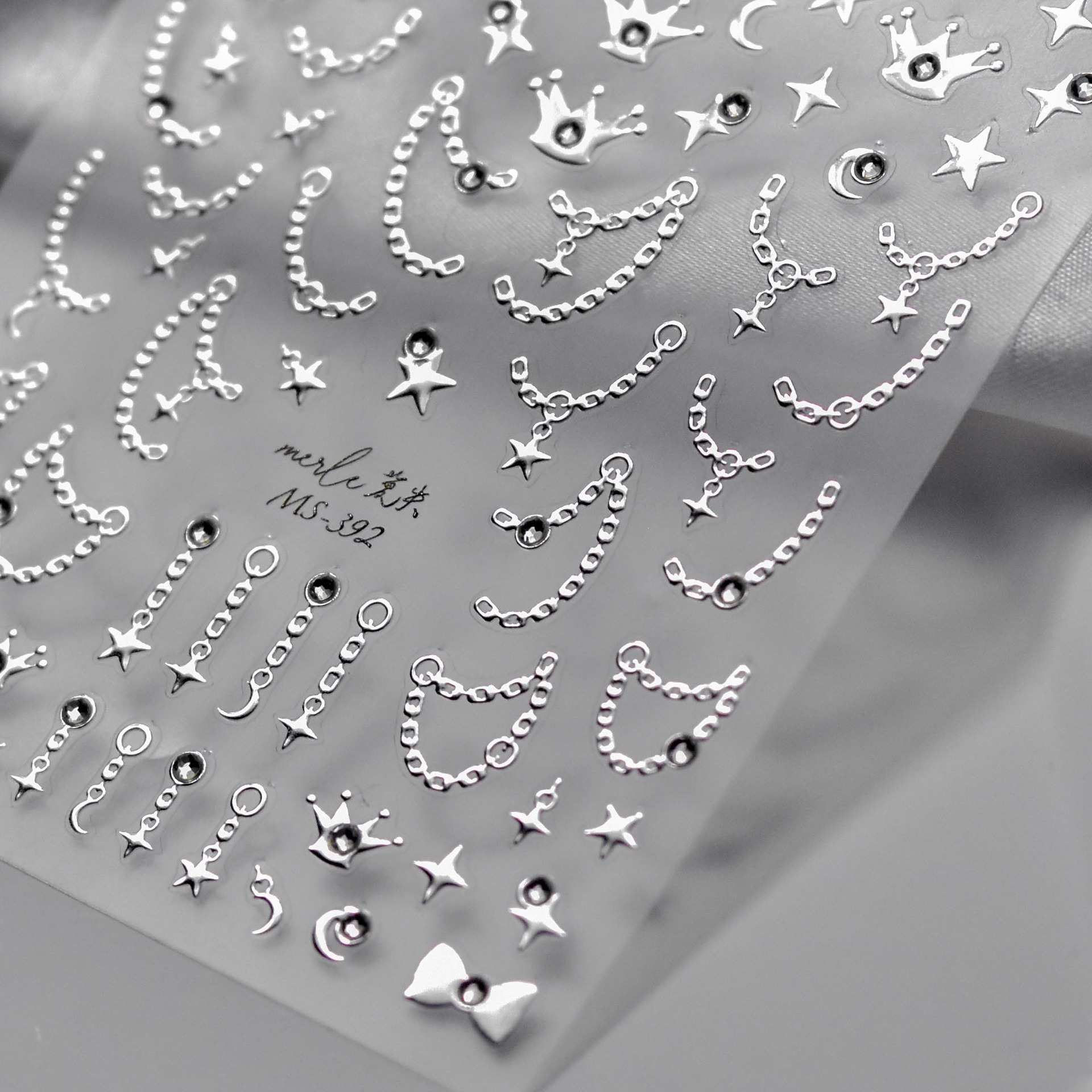 Cristal de uñas diamante etiqueta amor cadena caliente plata uñas decoración al por mayor
