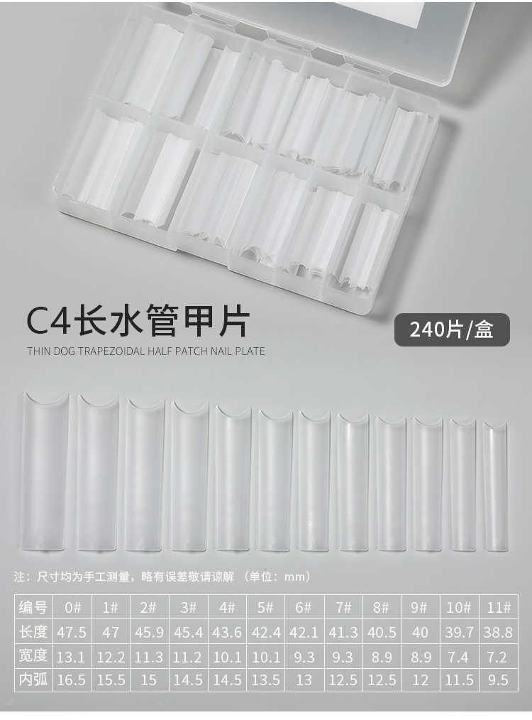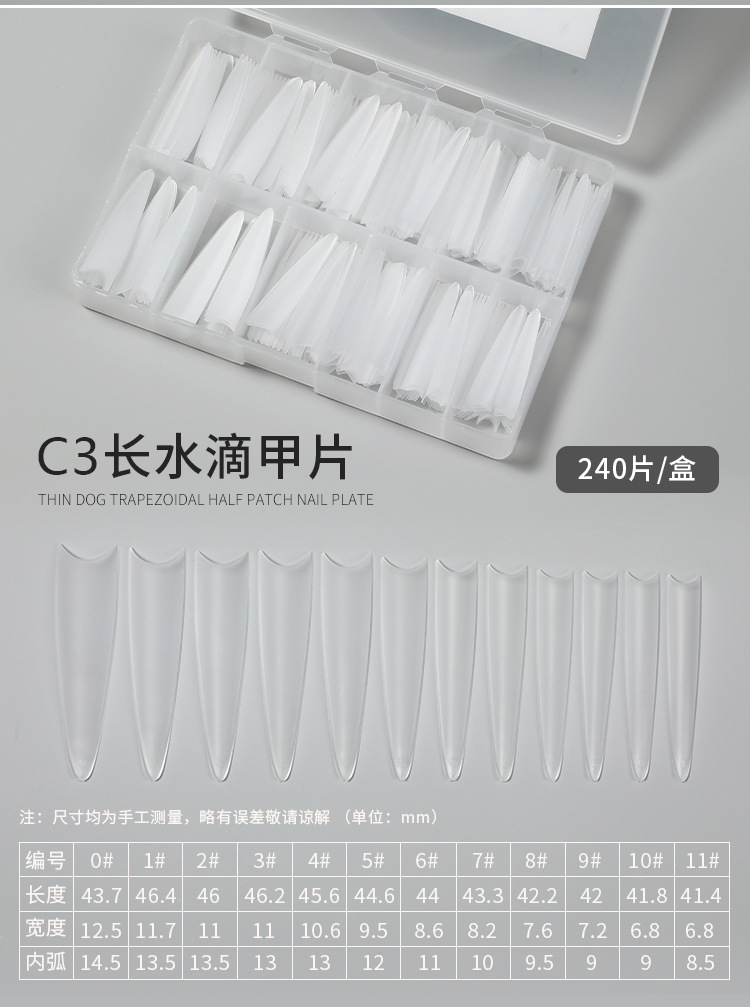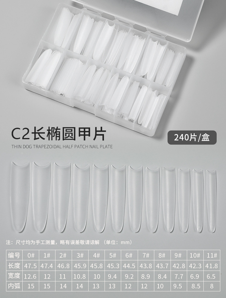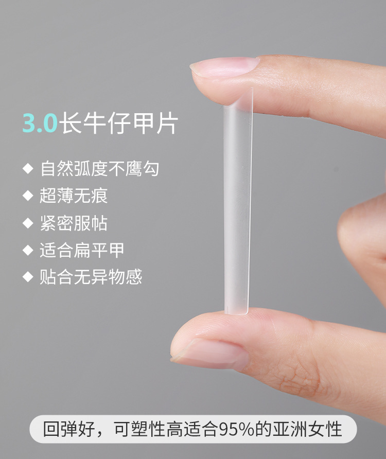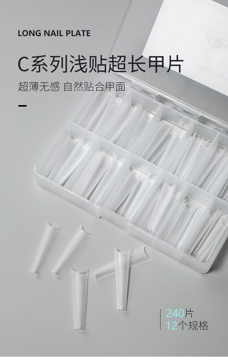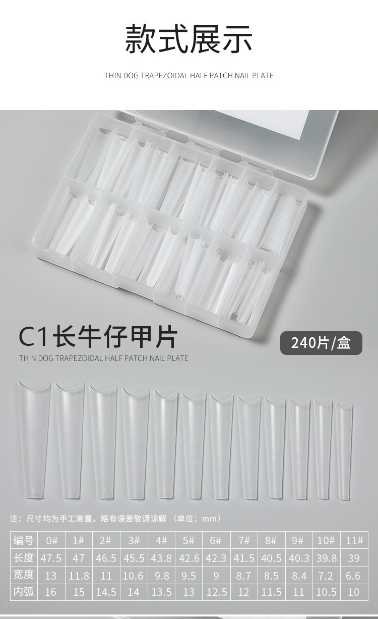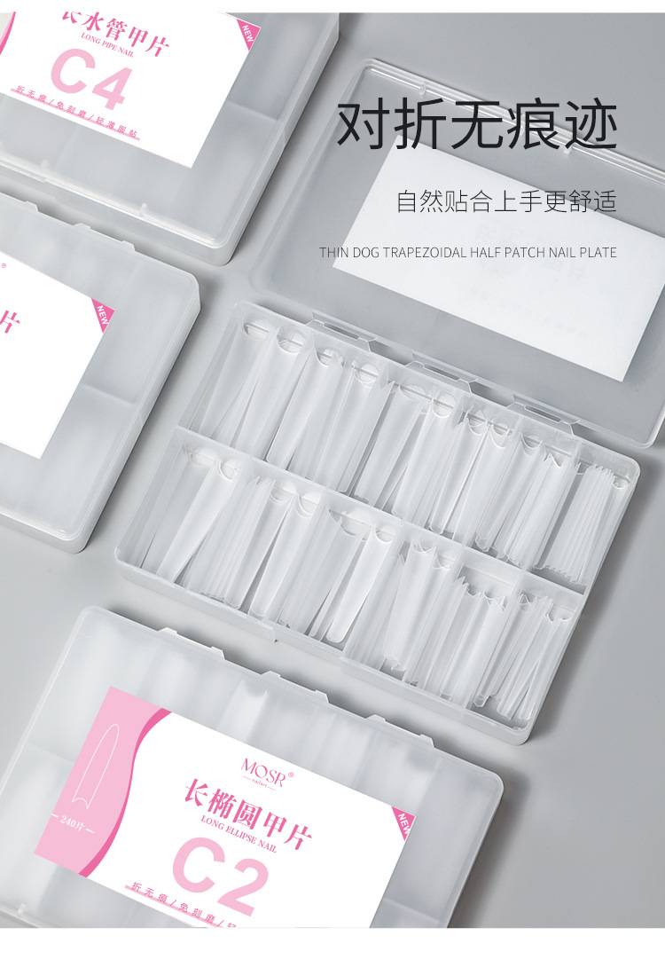 Manicura transfronteriza tubo de agua súper largo pieza de clavo parche de uñas falso 240 piezas en caja transparente etiqueta completa Oval Denim al por mayor