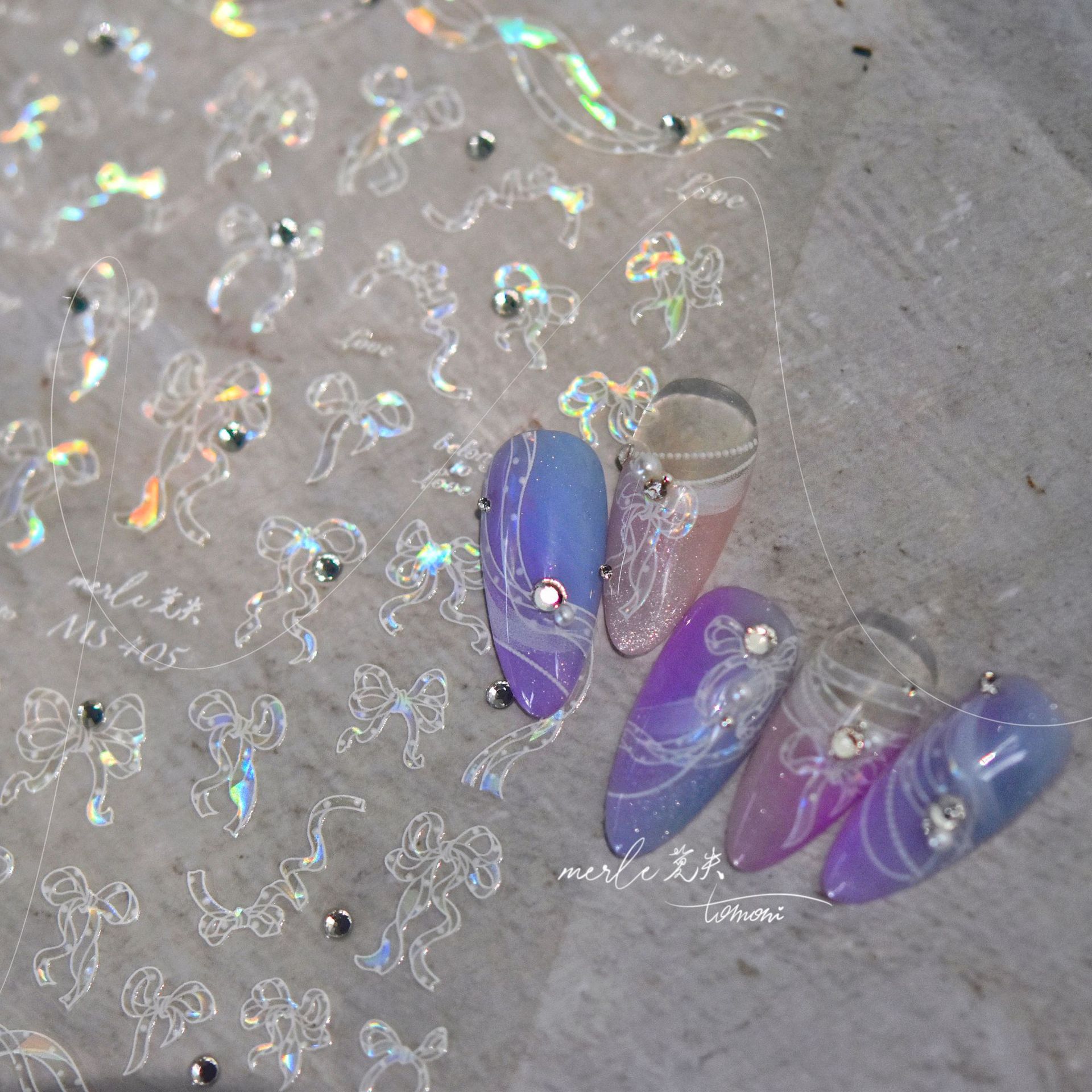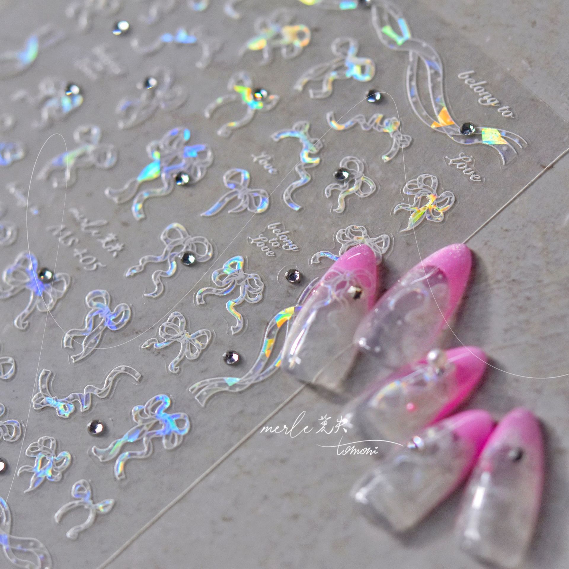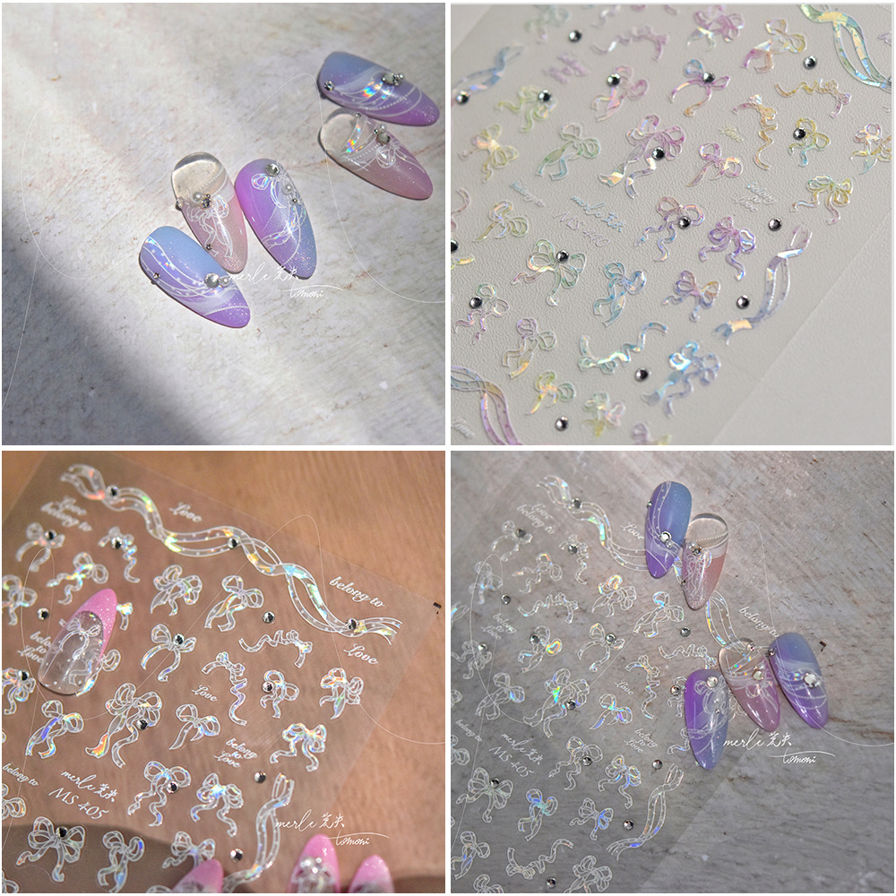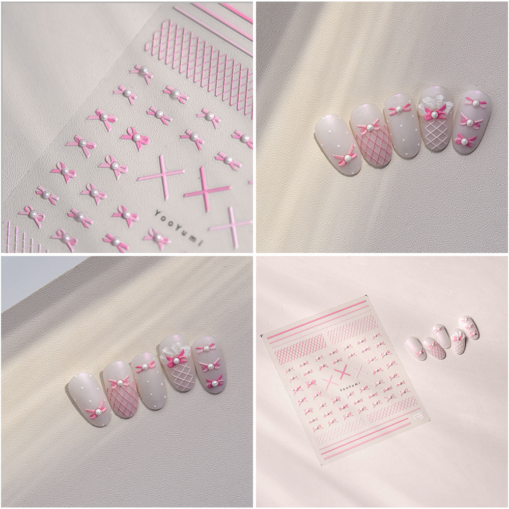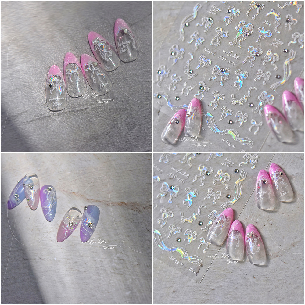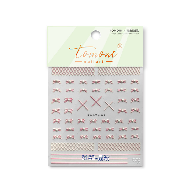 En línea celebridad uñas cristal diamante pegatinas ballet arco lindo uñas calcomanías Rosa arco decoración de uñas al por mayor