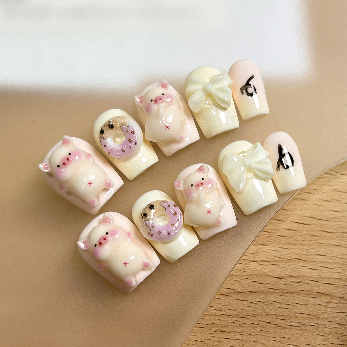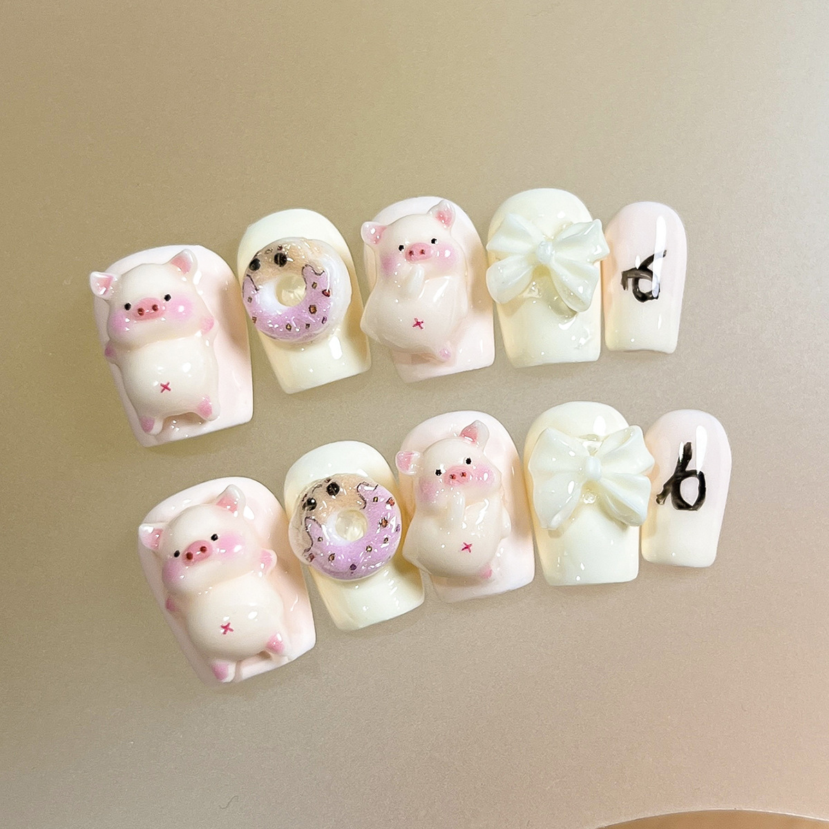Armadura de vestir hecha a mano niña linda cerdito círculo dulce lazo parche de manicura pegatina de uñas postizas hechas a mano