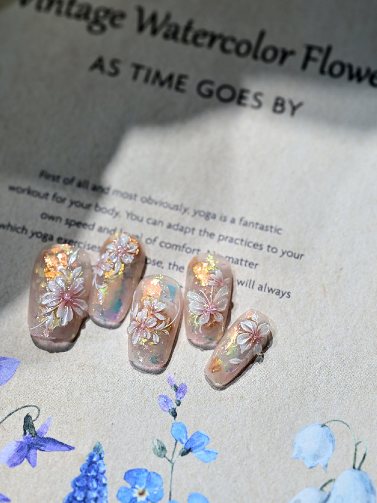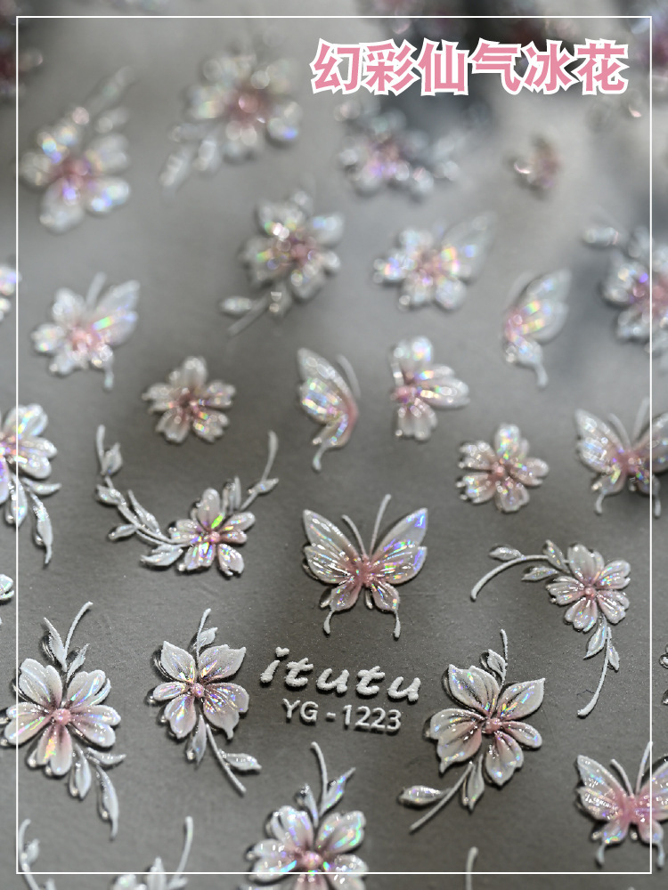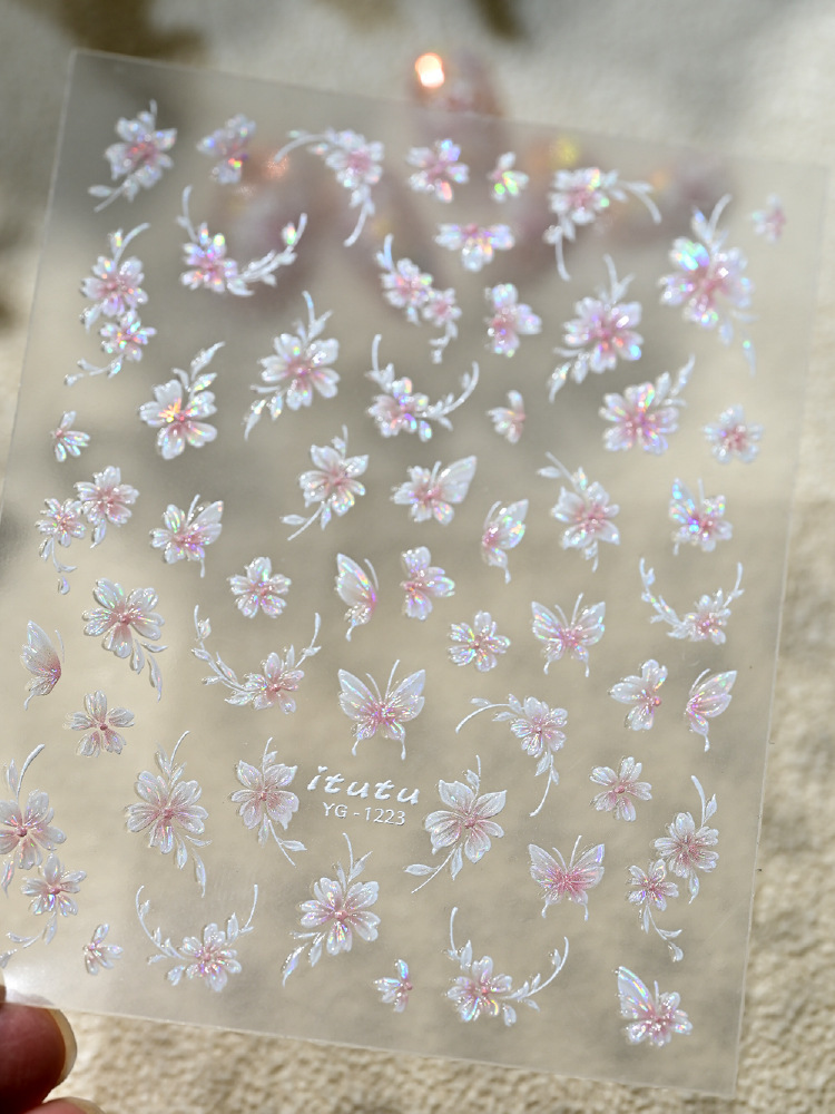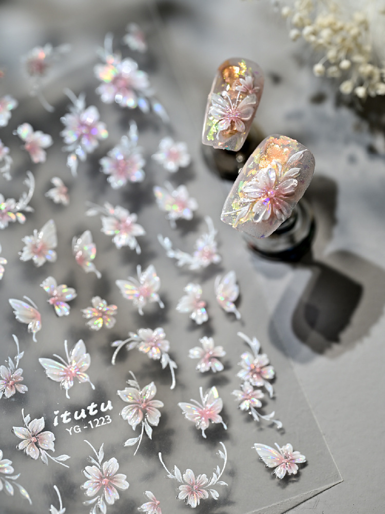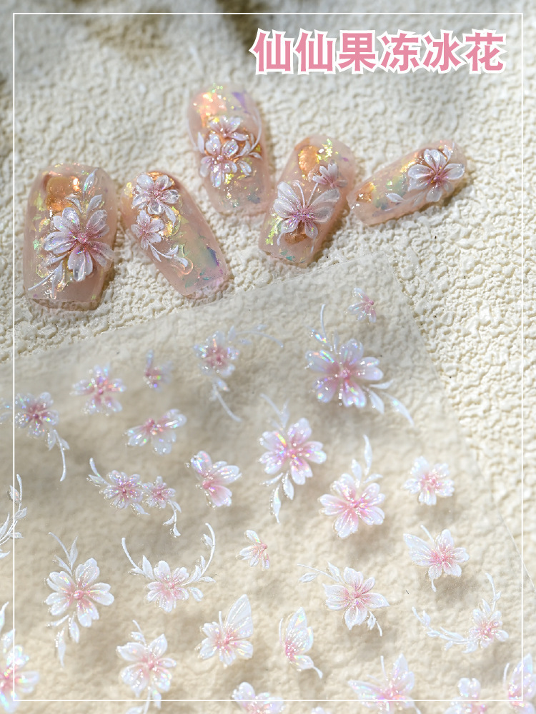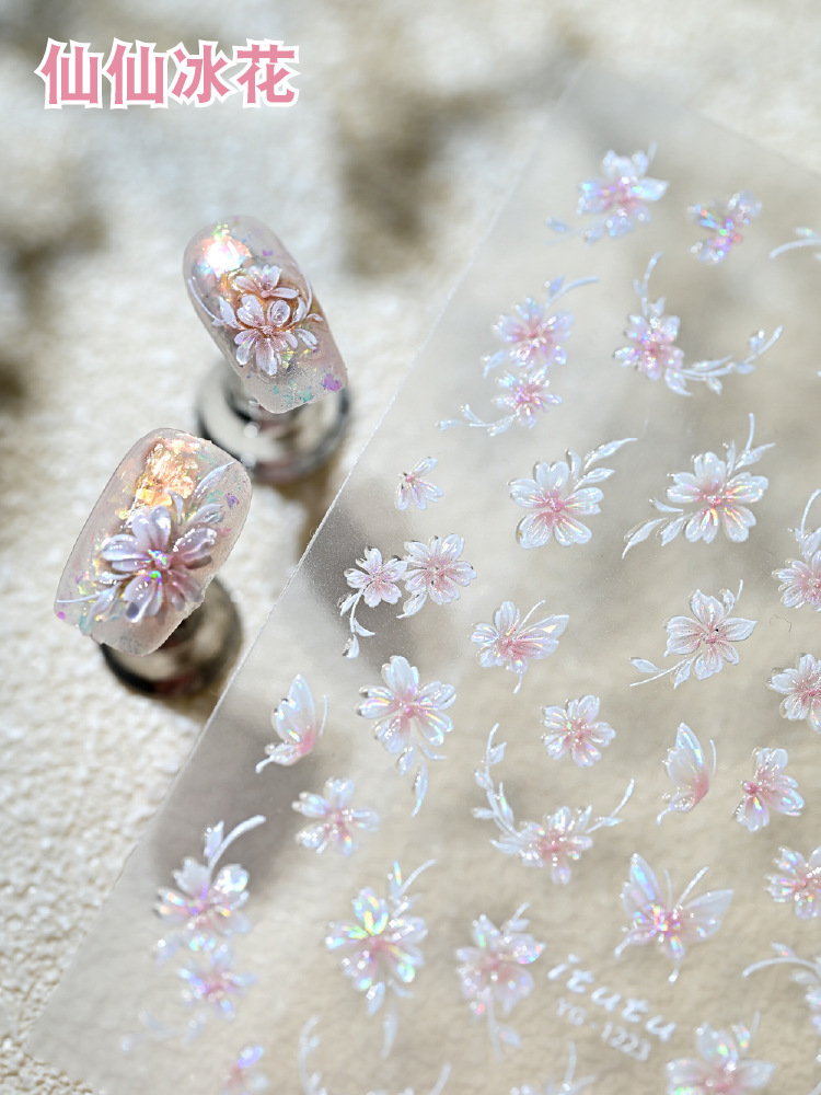 Manicure nuevo relieve de hadas flor pegatinas conchas de alta calidad de luz pura quiere pegatinas universales pegatinas de uñas de primavera