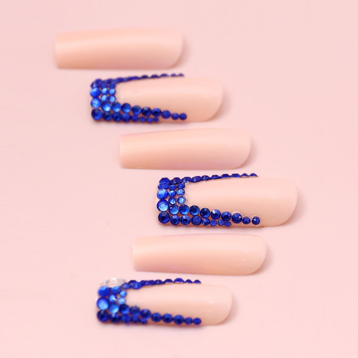 Uñas postizas de uso transfronterizo, diamantes de imitación franceses, uñas de uñas con bordes, parches de uñas de uñas, uñas postizas, productos terminados