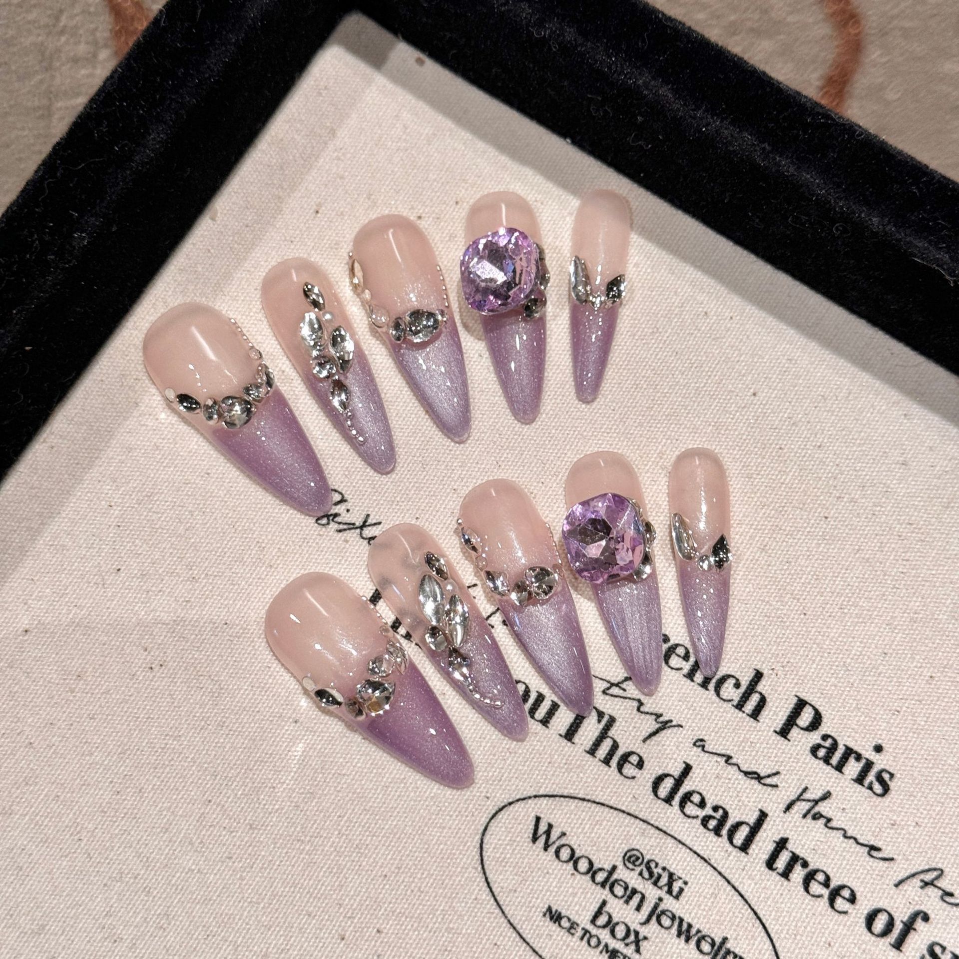 Laca de armadura de uso Sensación de alto nivel Gradiente púrpura Diamante francés Armadura de mariposa hecha a mano Armadura de ropa hecha a mano Diamante K9