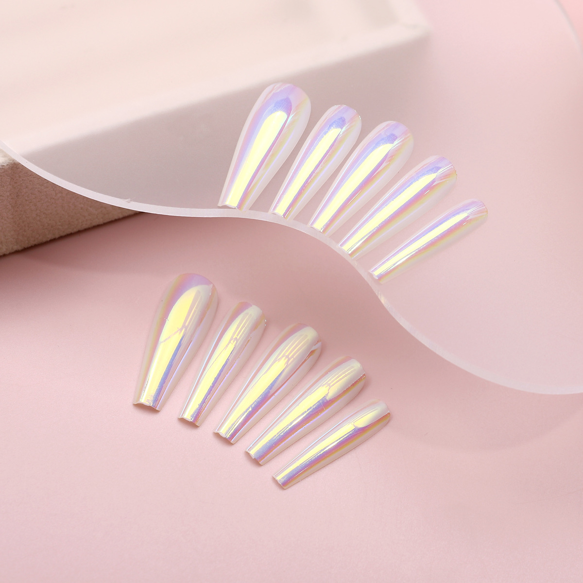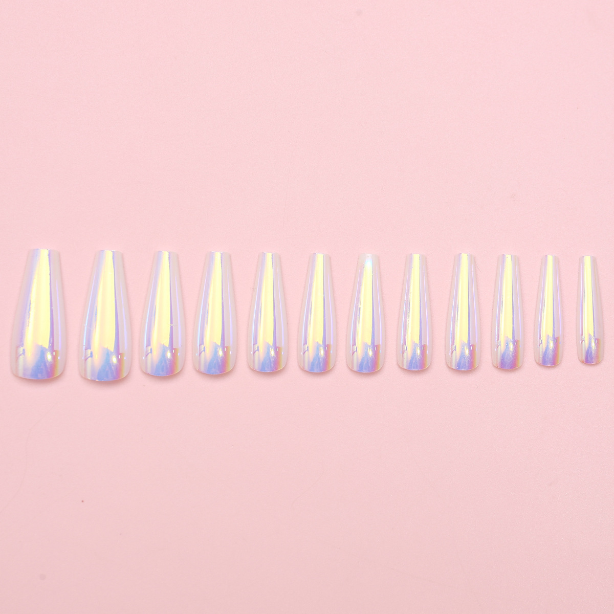 Uña transfronteriza aurora galvanizado de uñas productos terminados europeos y estadounidenses usar láser largo 24 piezas de parche de uñas falsas al por mayor