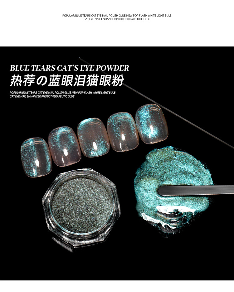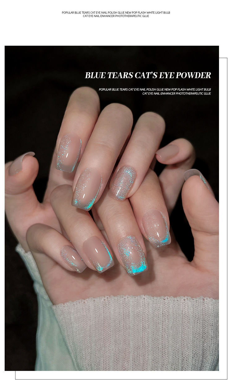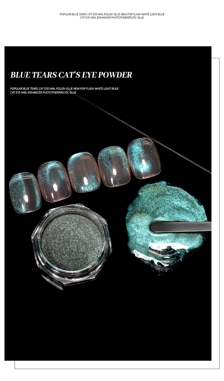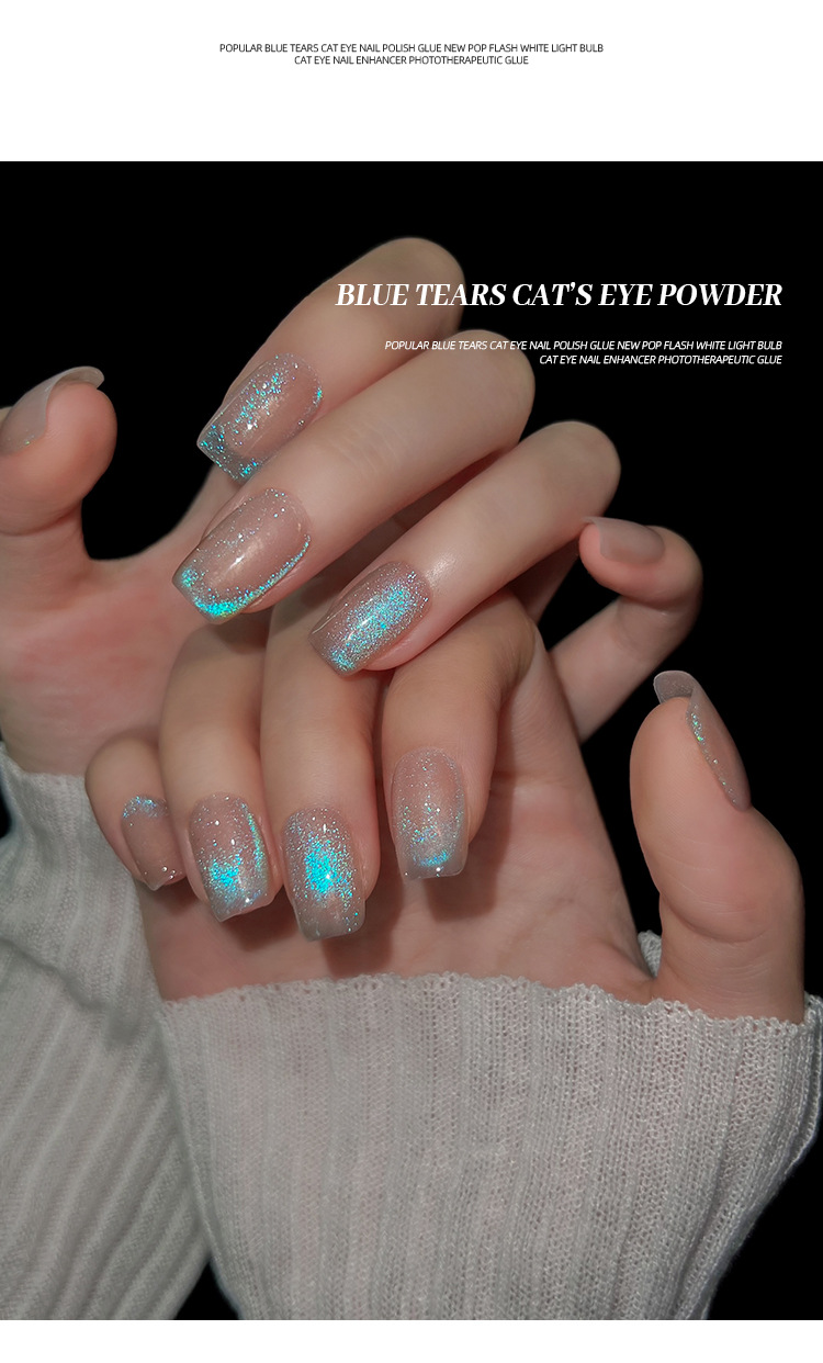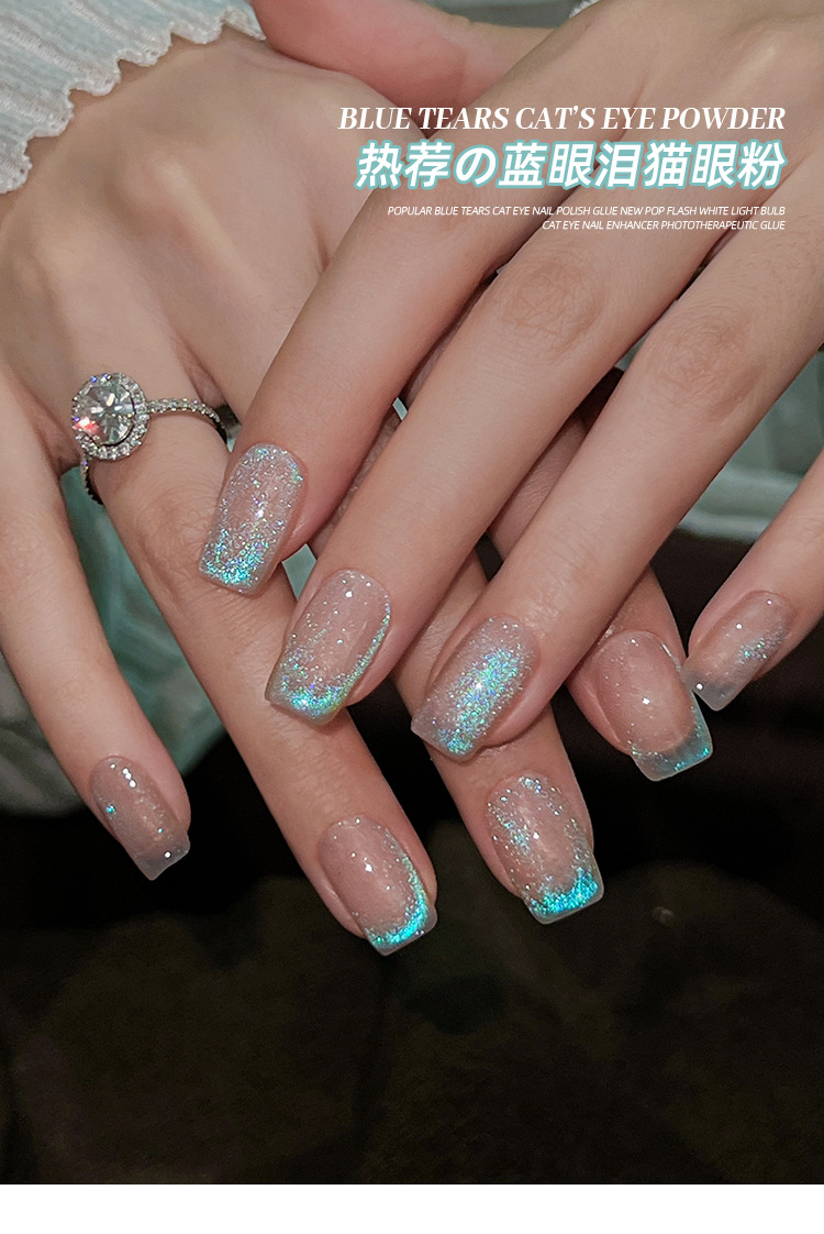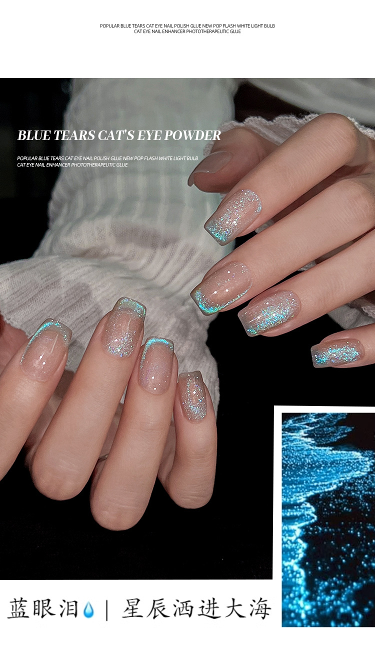 Explosión de la red azul de uñas lágrimas ojo de gato espejo mágico en polvo 2025, nueva pequeña bombilla azul perlas de vidrio al por mayor