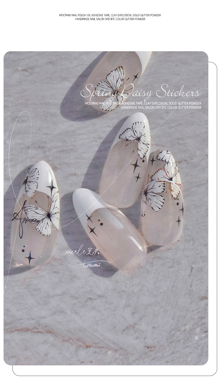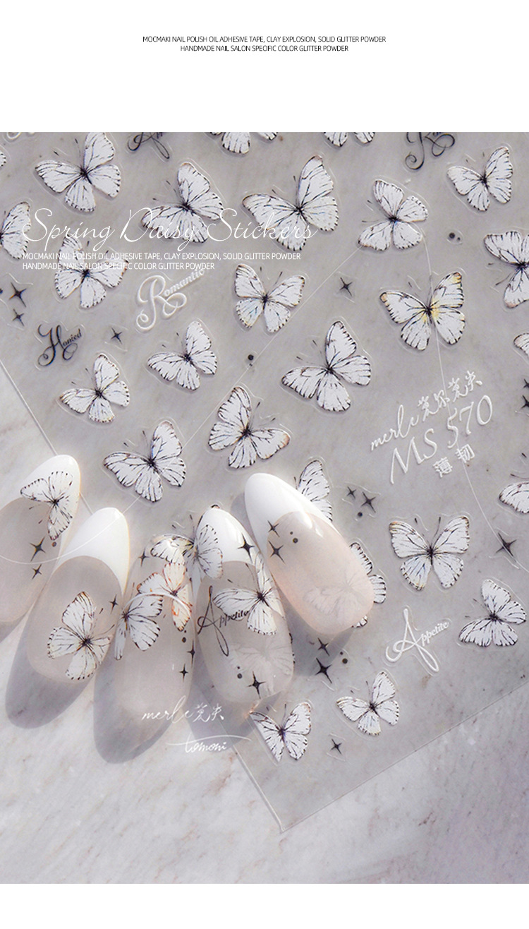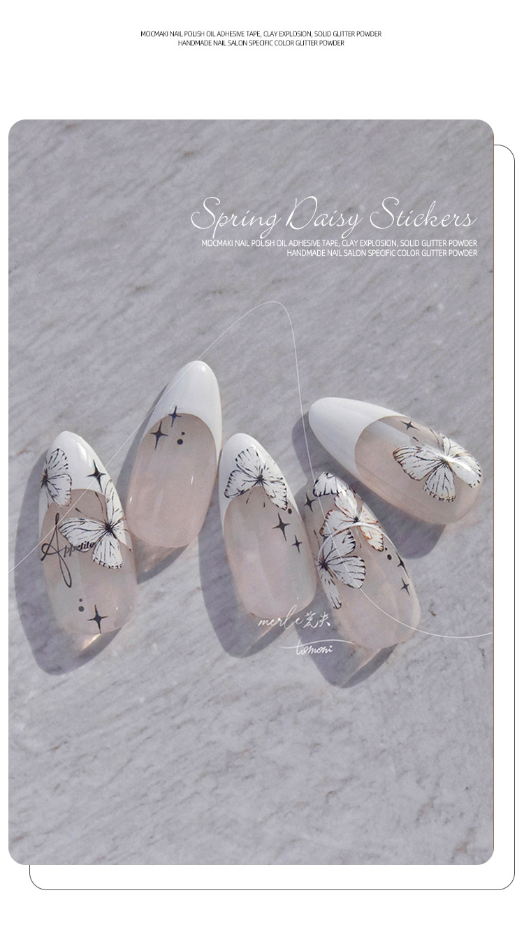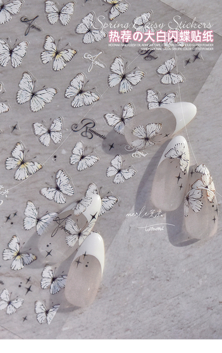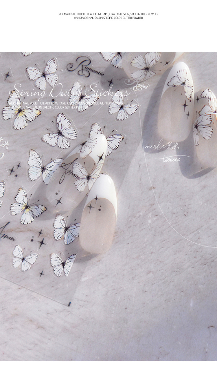 Red de celebridades Xiaohongshu estilo caliente primavera nuevo blanco puro deseo mariposa espalda pegamento uñas pegatinas decoración de uñas al por mayor