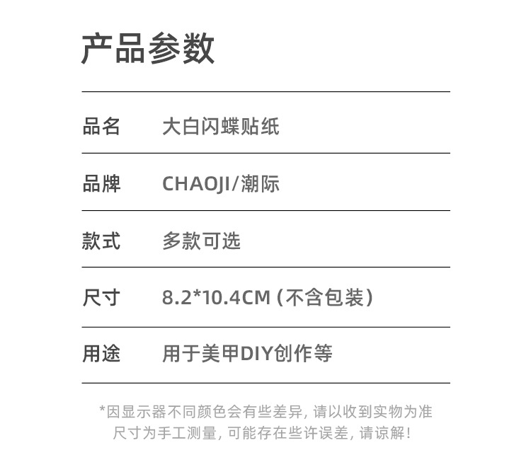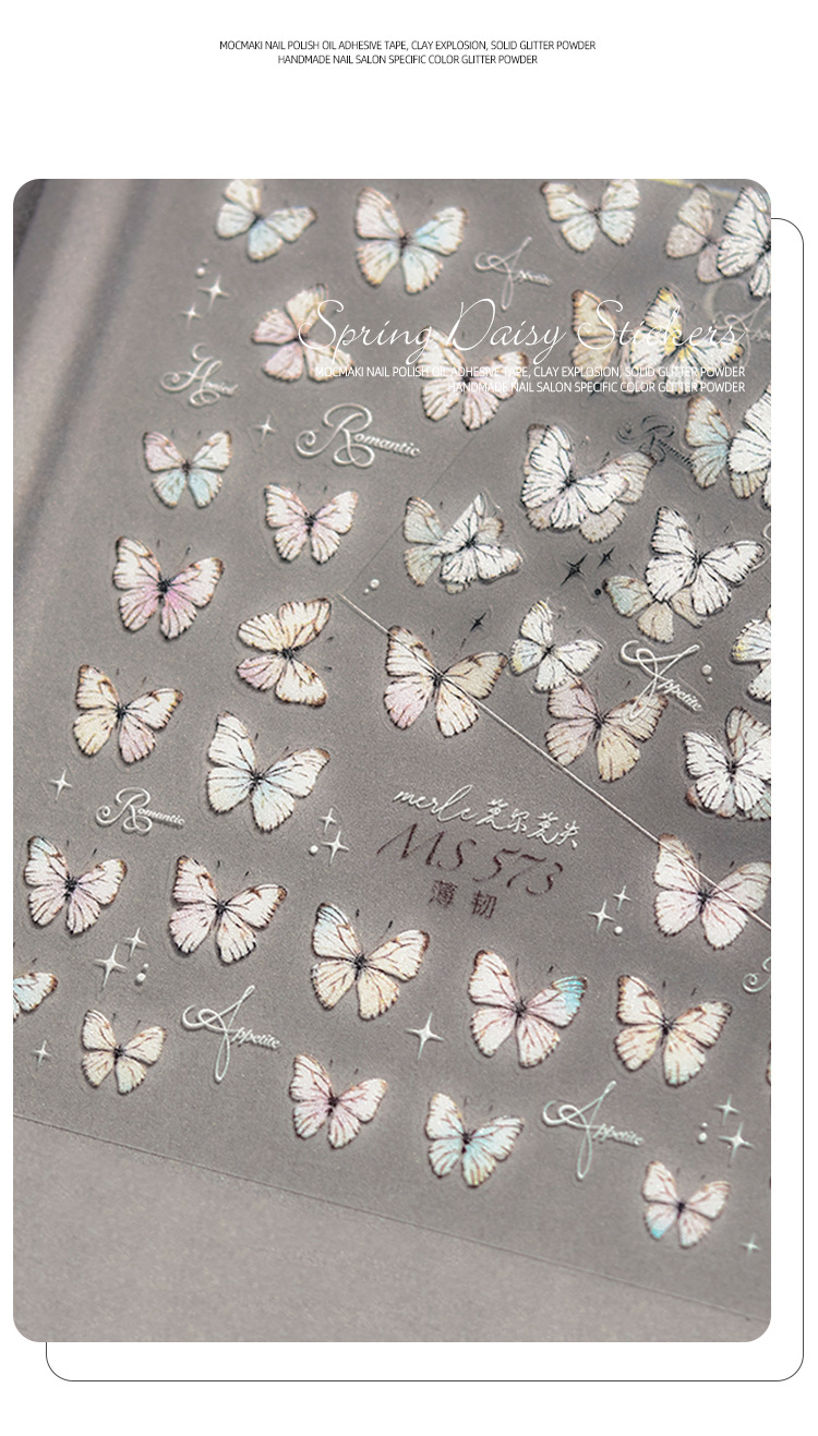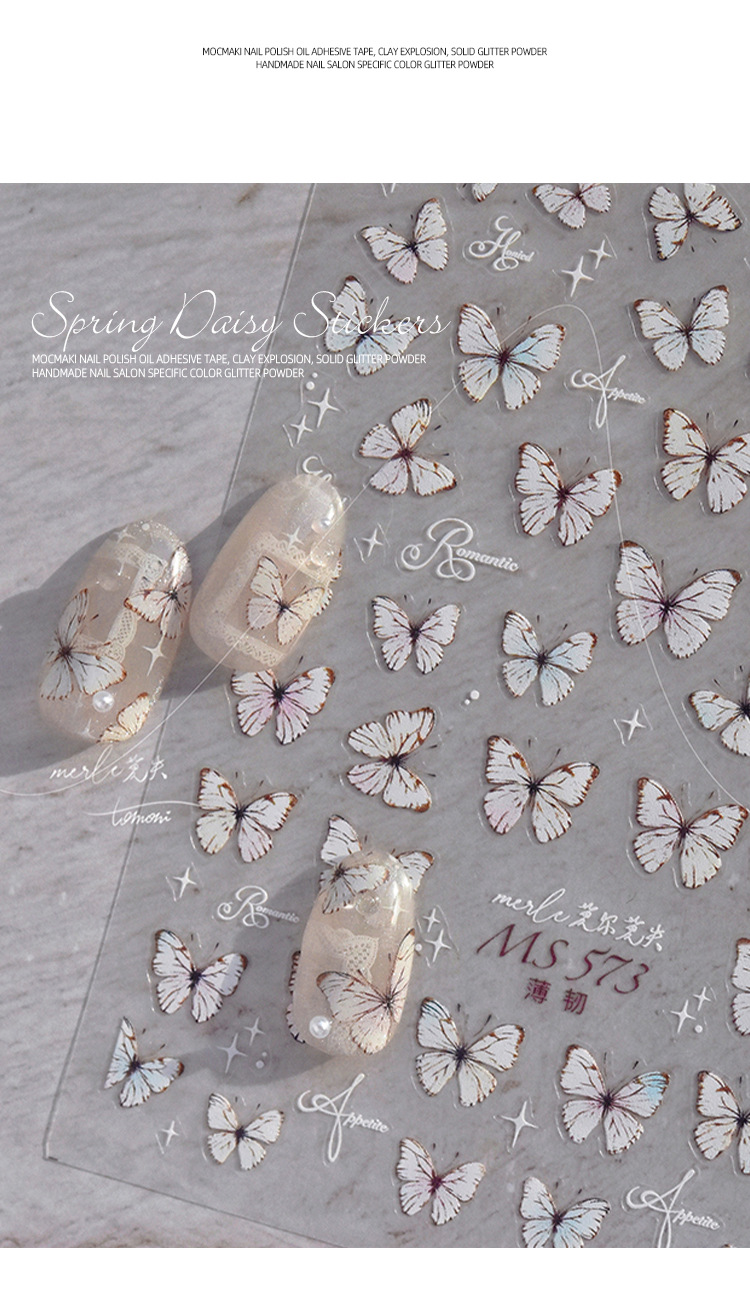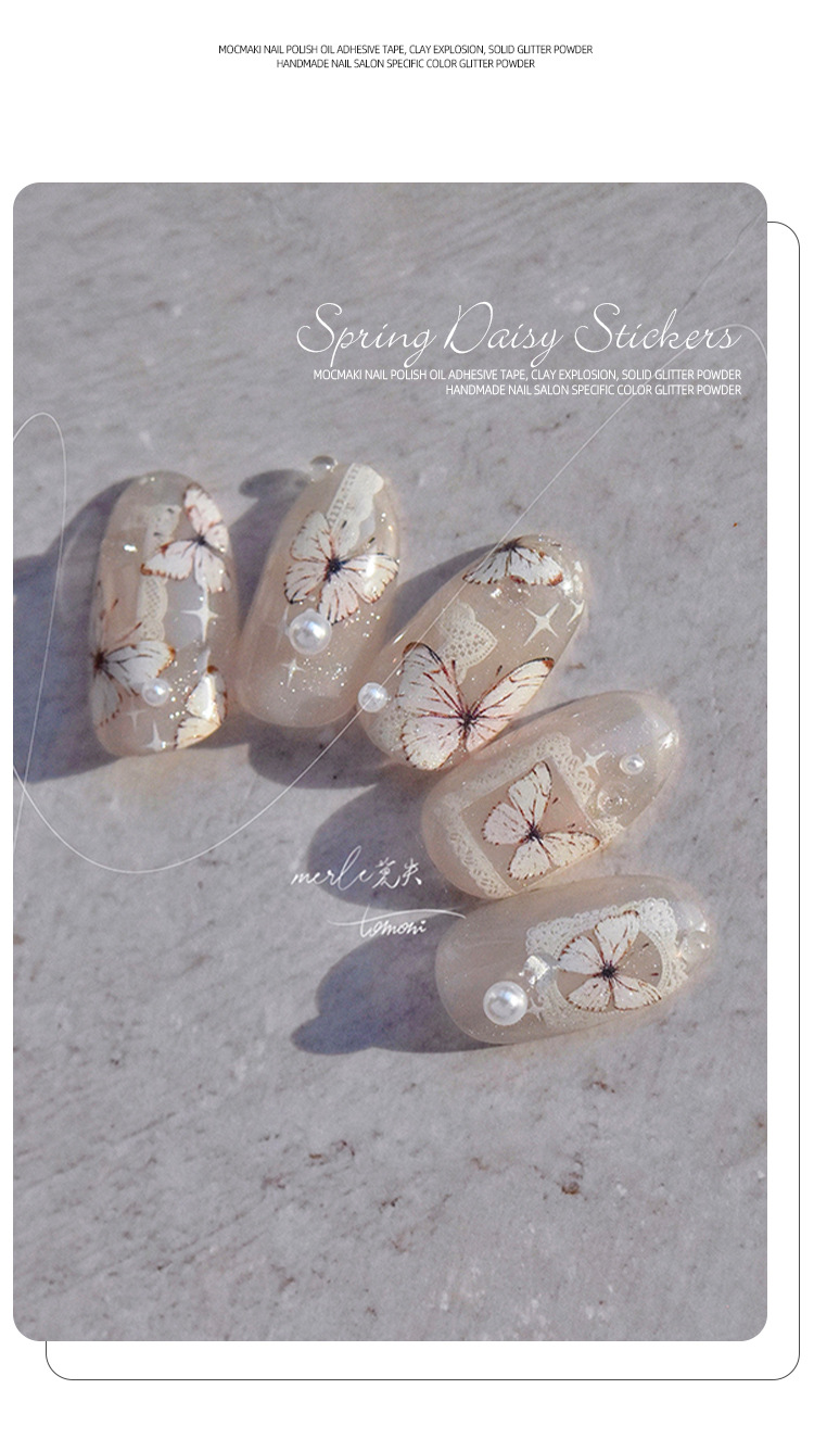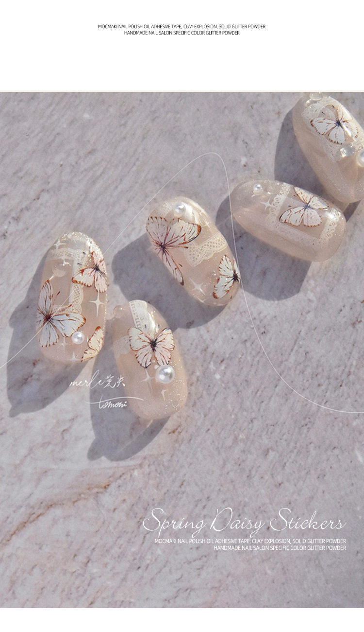 Red de celebridades Xiaohongshu estilo caliente primavera nuevo blanco puro deseo mariposa espalda pegamento uñas pegatinas decoración de uñas al por mayor