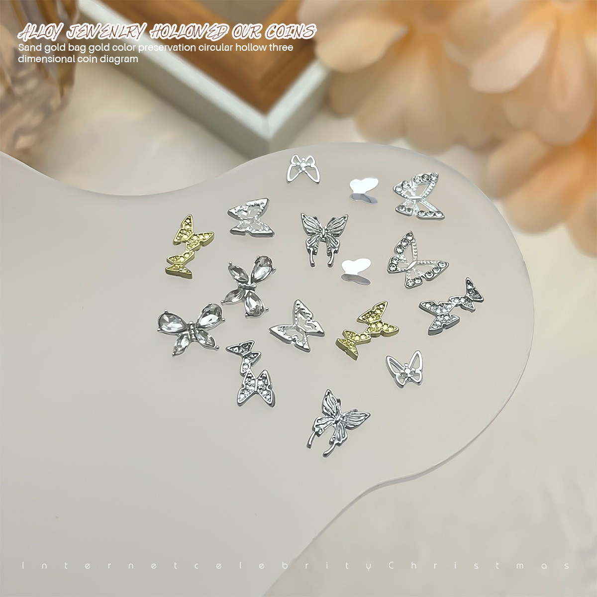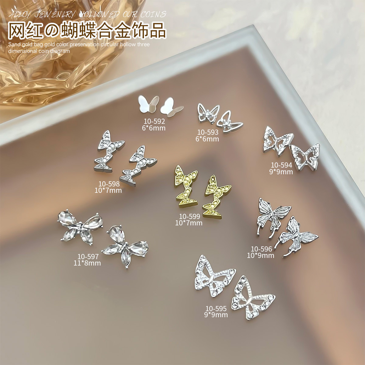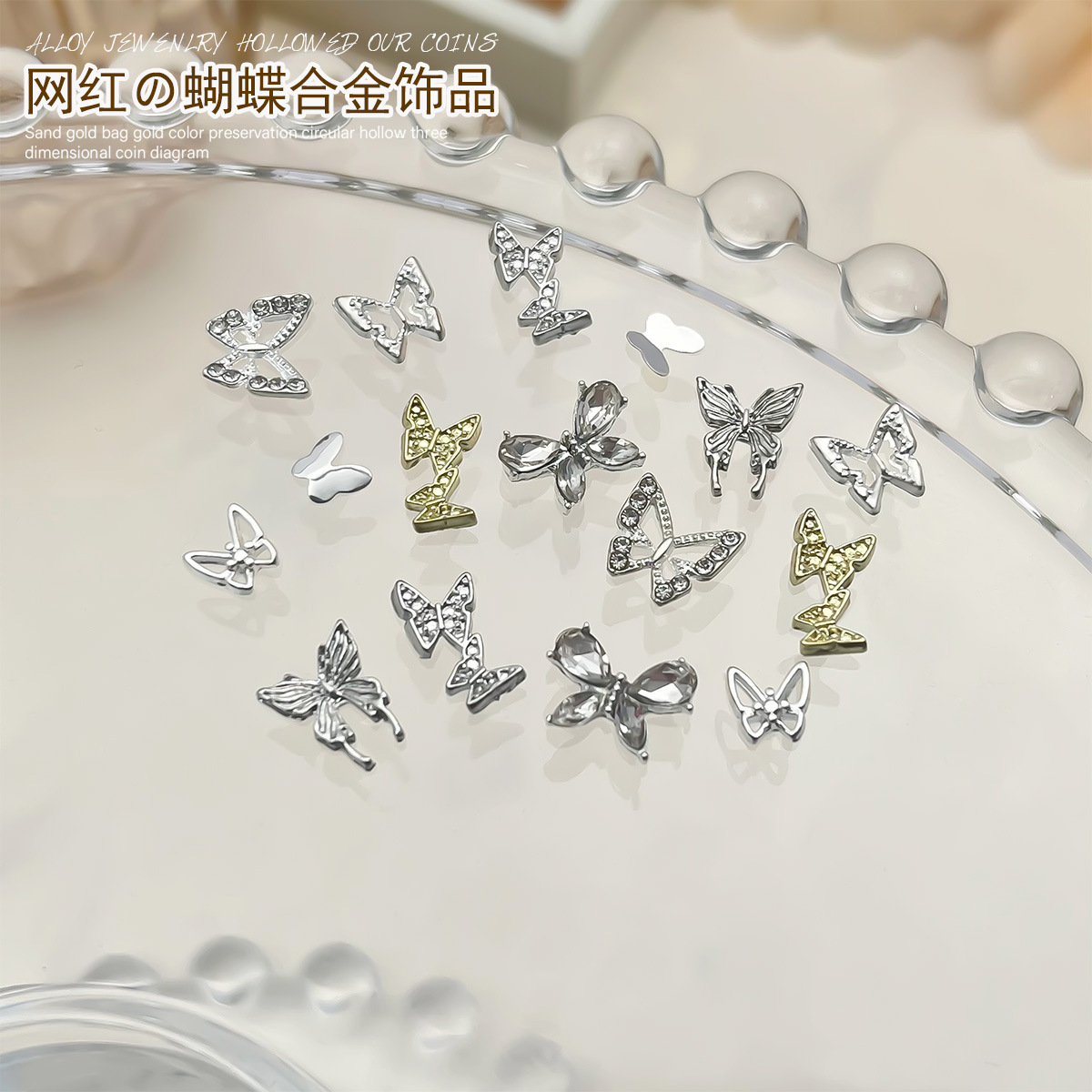 Red mini mariposa de dedo pequeña joyería de manicure super brillante cristal de zircón aleación mariposa accesorios taladro de manicure tridimensional