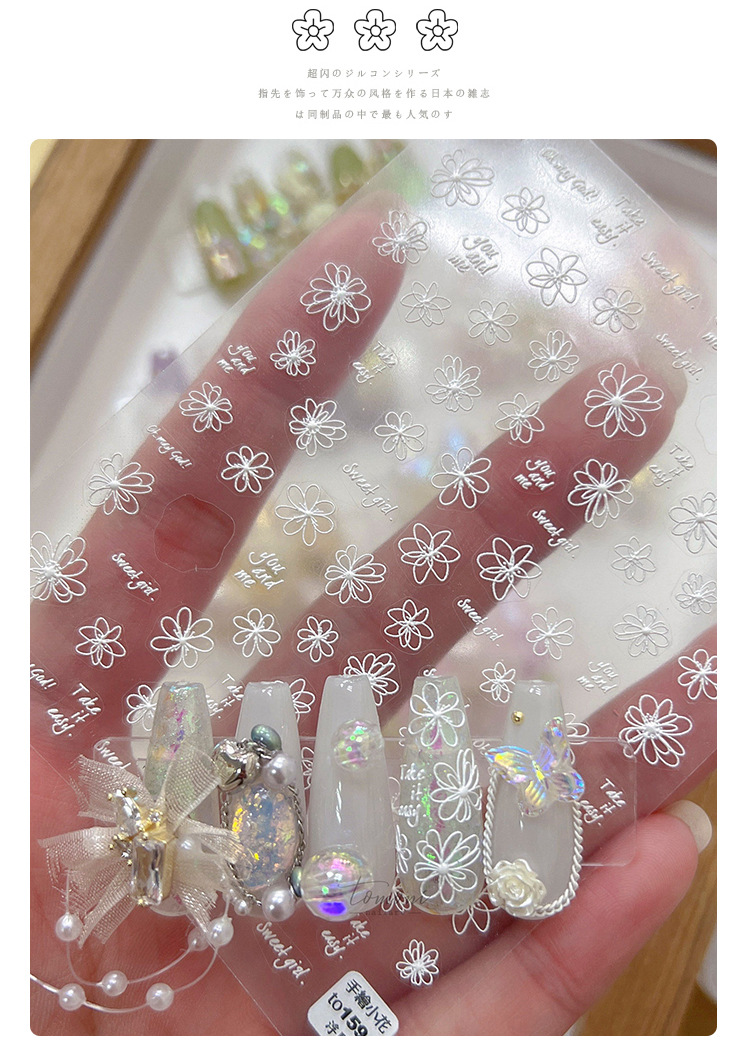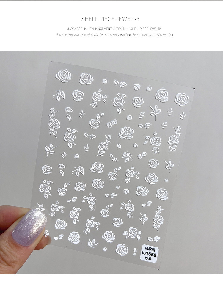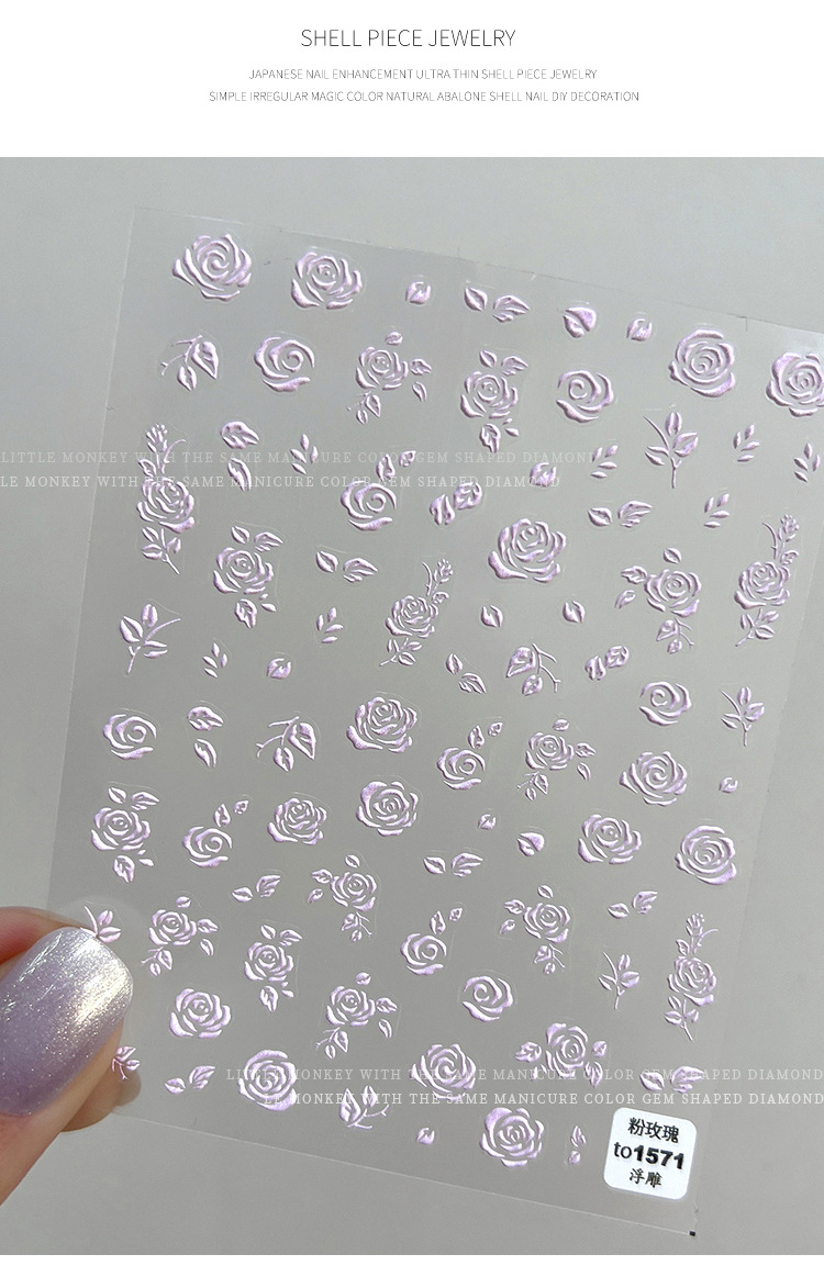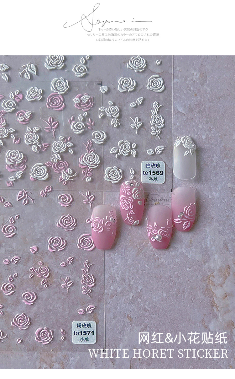 Tomoni estilo japonés primavera y verano tridimensional Flor de hielo uñas pegatinas hielo transparente fresco hueco Rosa pequeño patrón lindo alivio