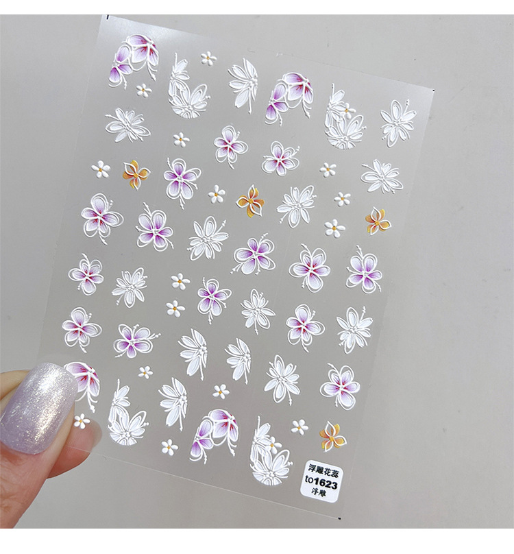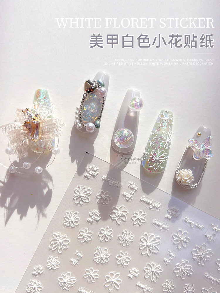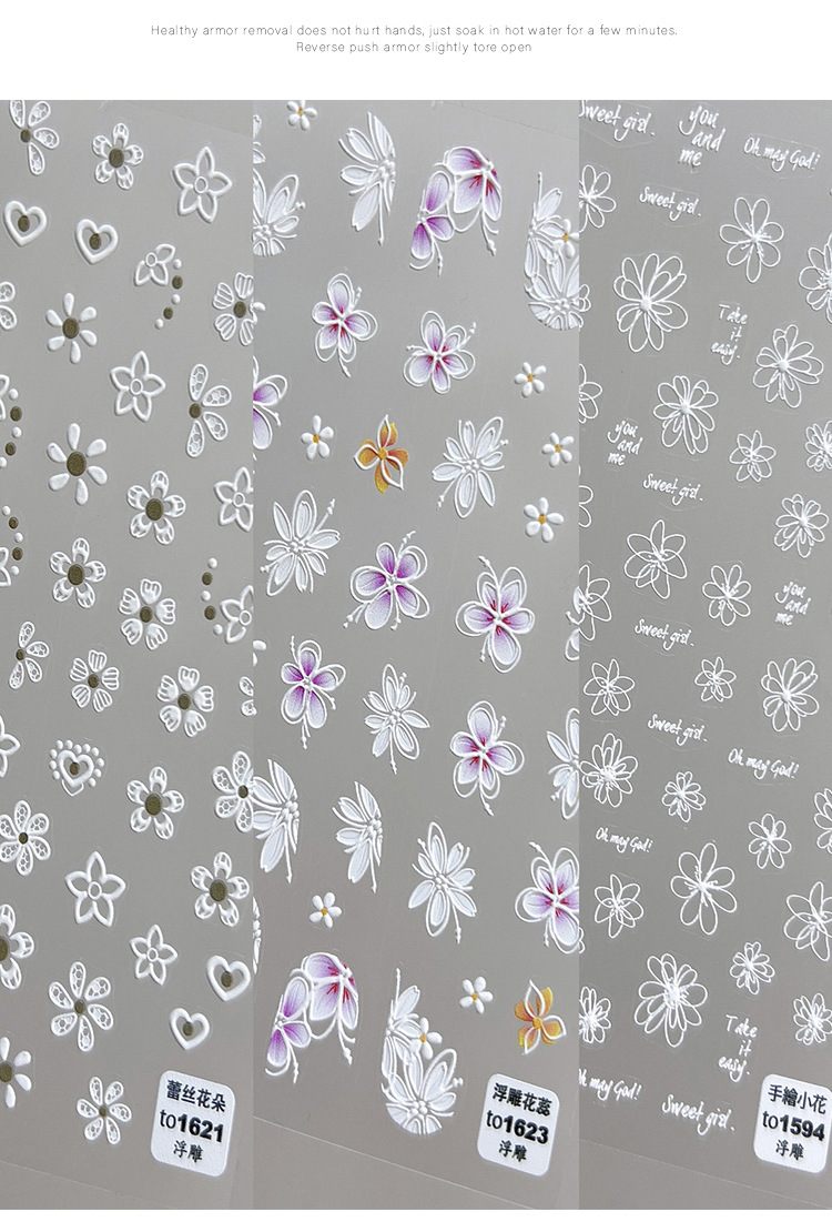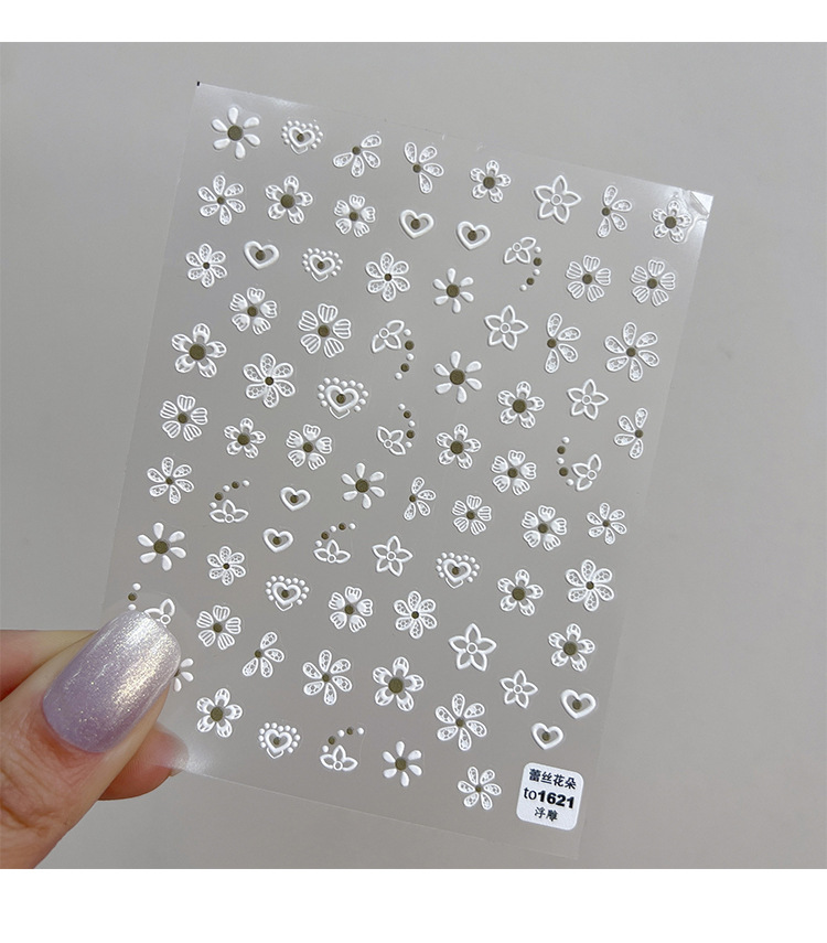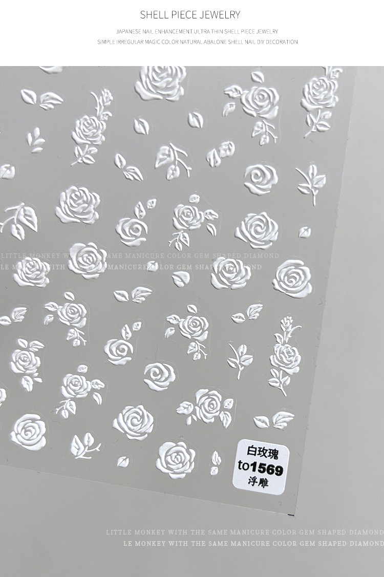 Tomoni estilo japonés primavera y verano tridimensional Flor de hielo uñas pegatinas hielo transparente fresco hueco Rosa pequeño patrón lindo alivio