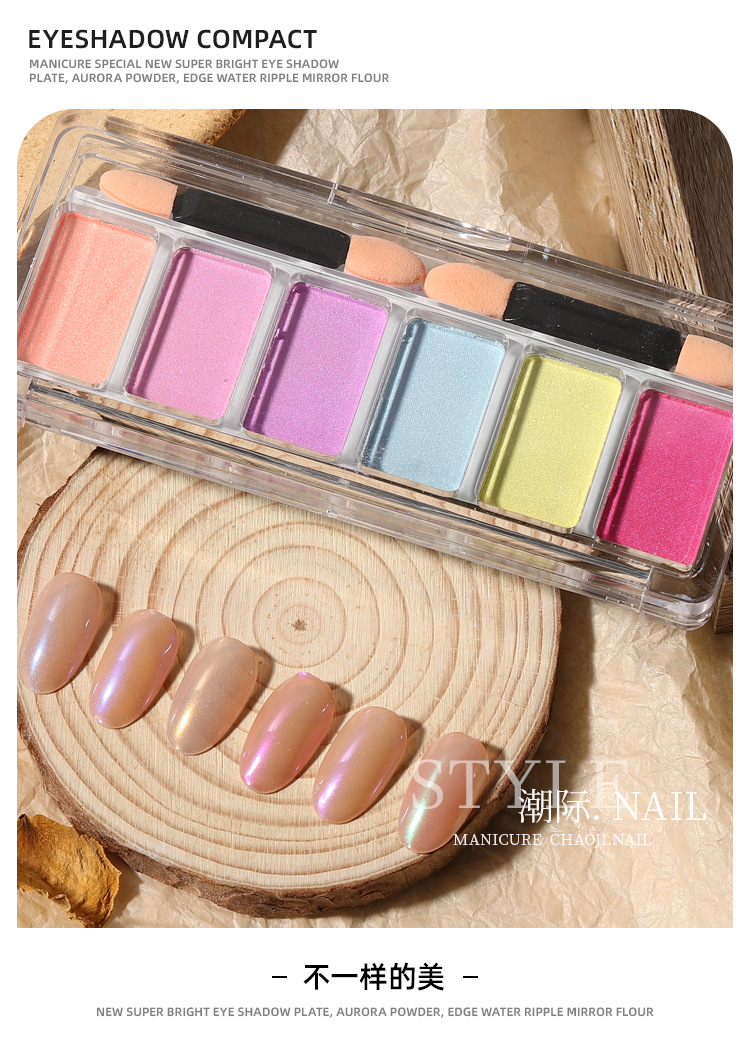 Gran capacidad de estado sólido Espejo Mágico polvo de uñas de arte popular Gancho Dorado champán láser Aurora polvo Especial paquete de 6 colores