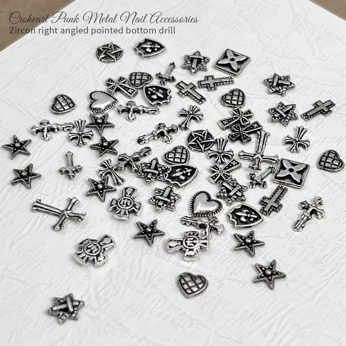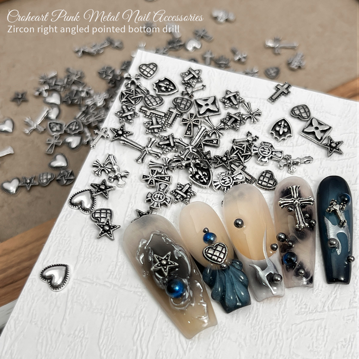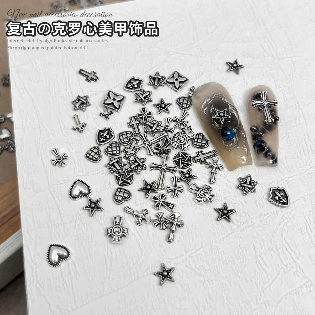 Red famosa nueva retro Crohe joyería punk cruz de plata oscura accesorios de uñas metálicas al por mayor