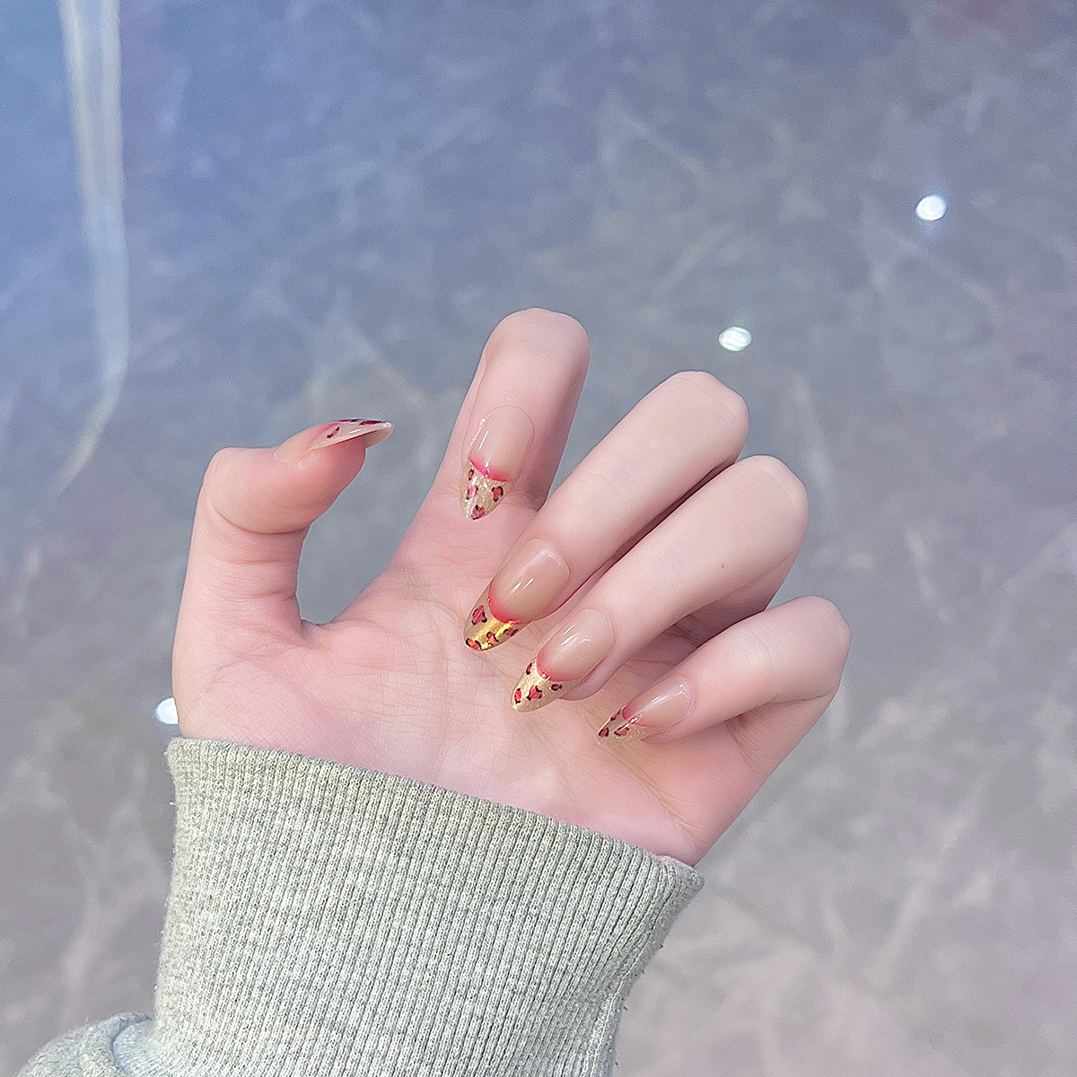 Uña hecha a mano de otoño y invierno gradiente estampado leopardo francés manicure tridimensional simple estilo de personalidad universal y medio mano de usar uñas