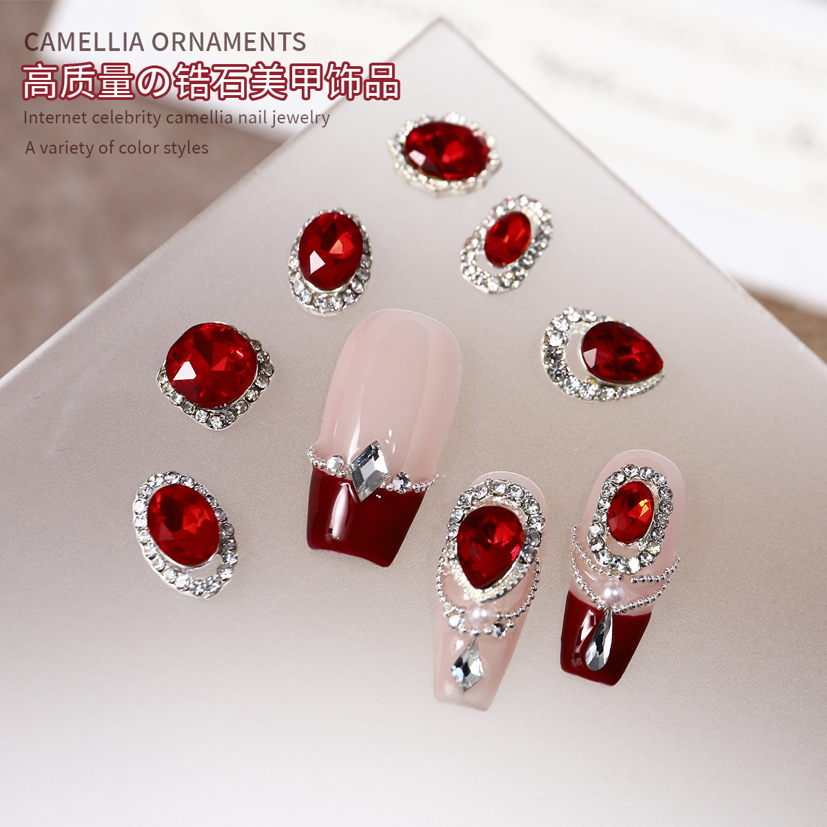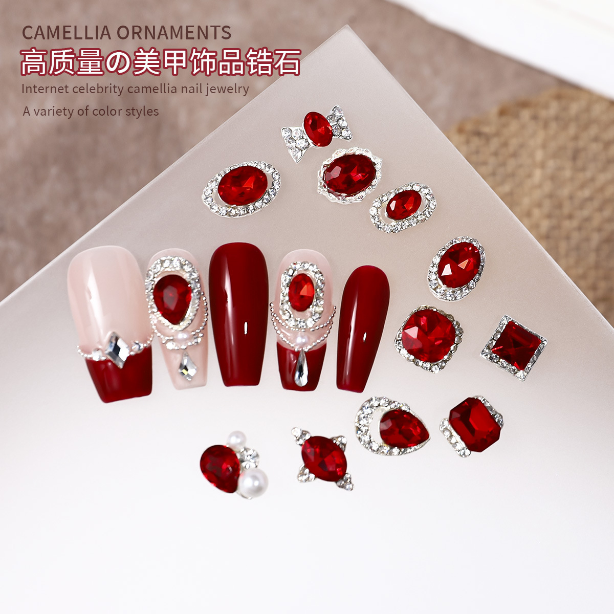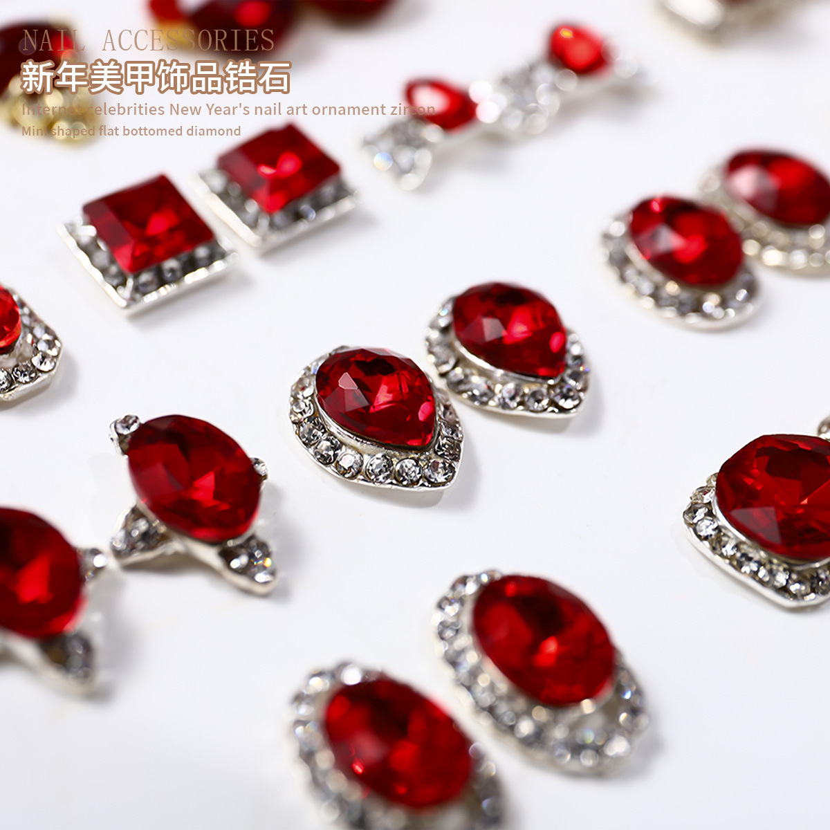 Año Nuevo manicuría retro Anchor Red Pillar taladro explosión amor flash azúcar de cristal elíptico taladro bola accesorios de uñas