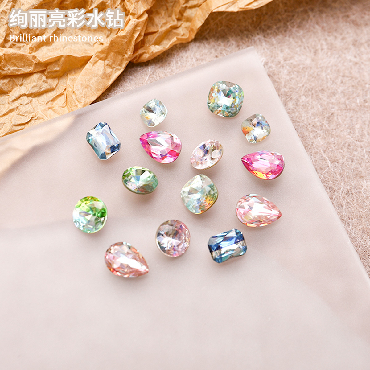 Red popularidad explosión láser arco iris taladro fantasía color punta inferior accesorios taladro joyería taladro amor taladro de manicuras flash al por mayor