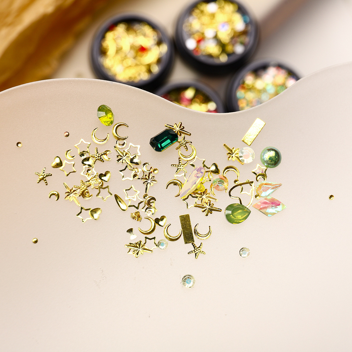 Nuevas joyas de manicura transfronterizas joyas de la luna de estrellas mezcladas caja de metal conjunto de cobre popular remaches accesorios de manicura