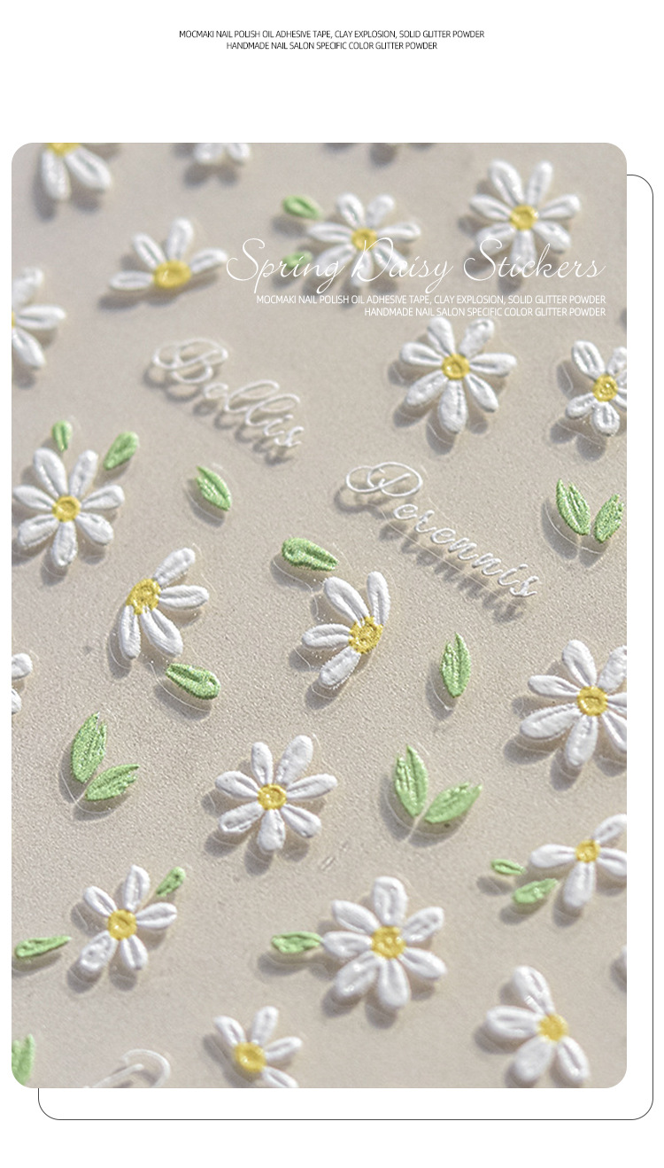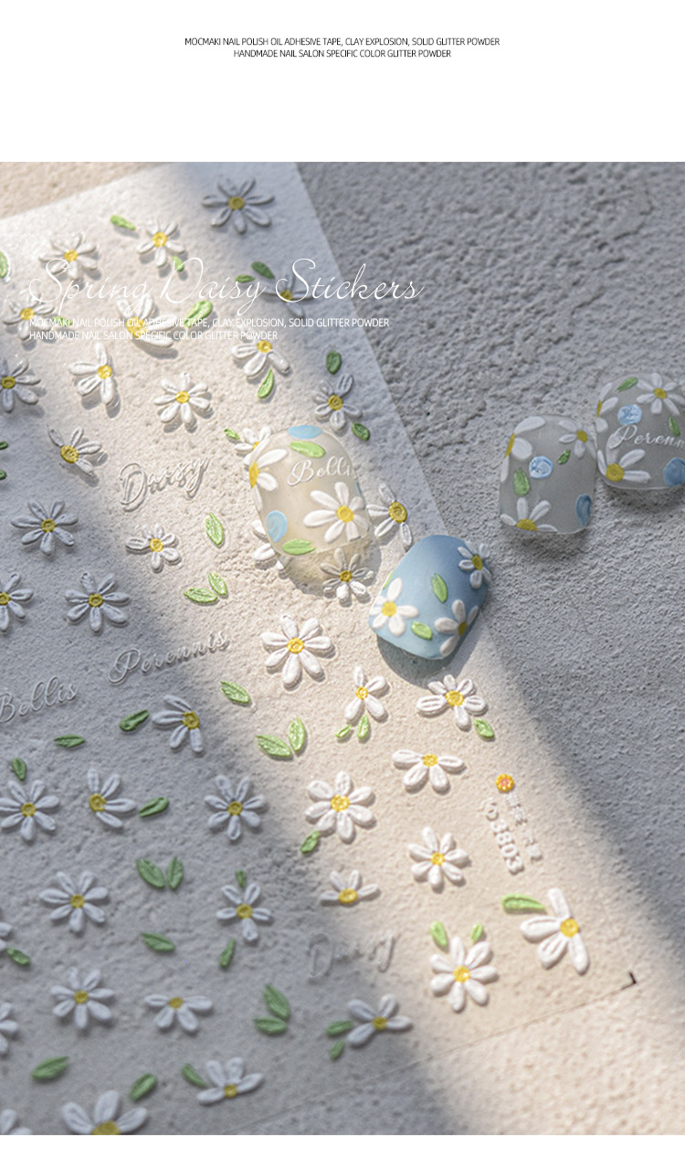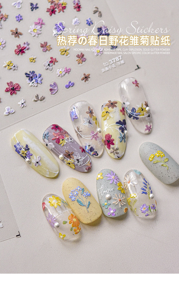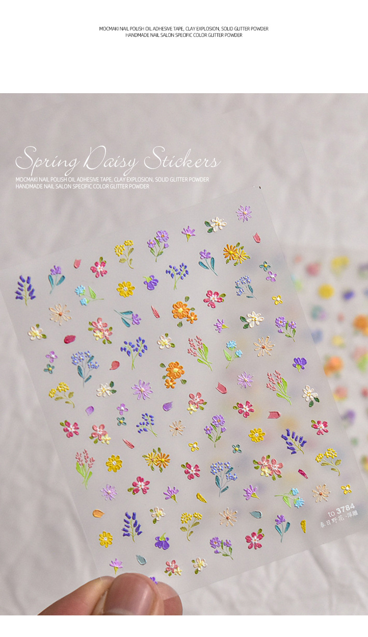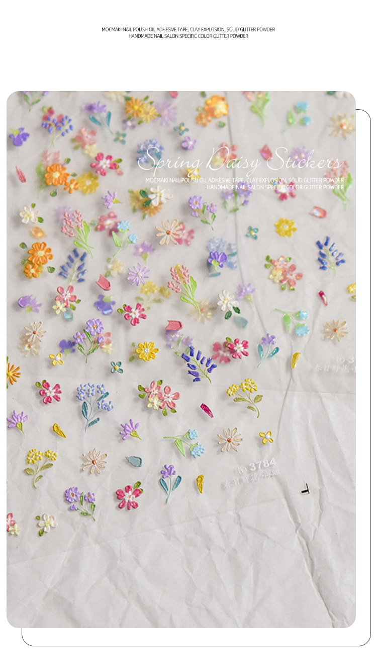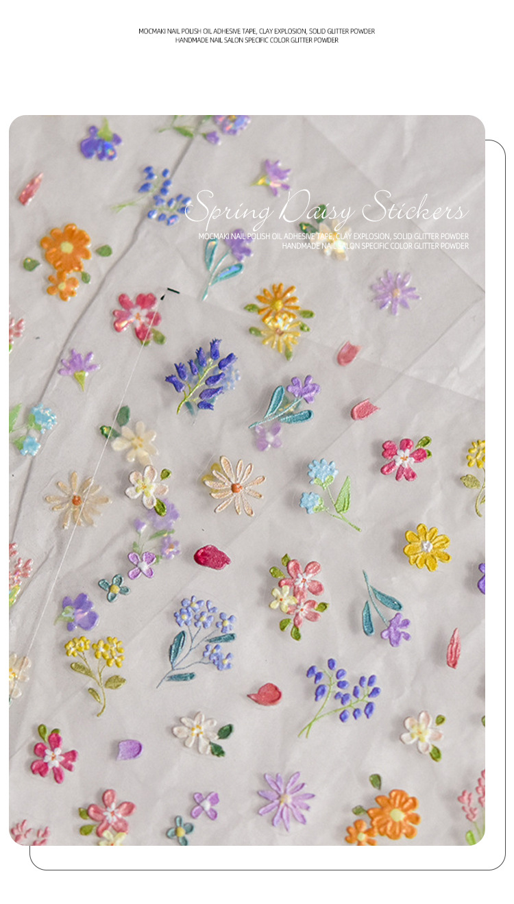 Pegatinas de uñas con diseño de flores de primavera 2025, nuevas flores silvestres en relieve estilo ins, pequeñas margaritas, pétalos rotos, decoración de uñas