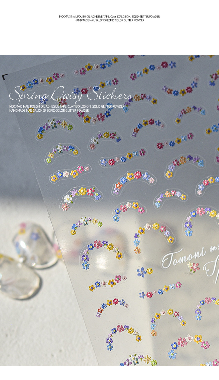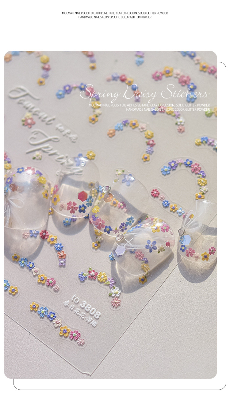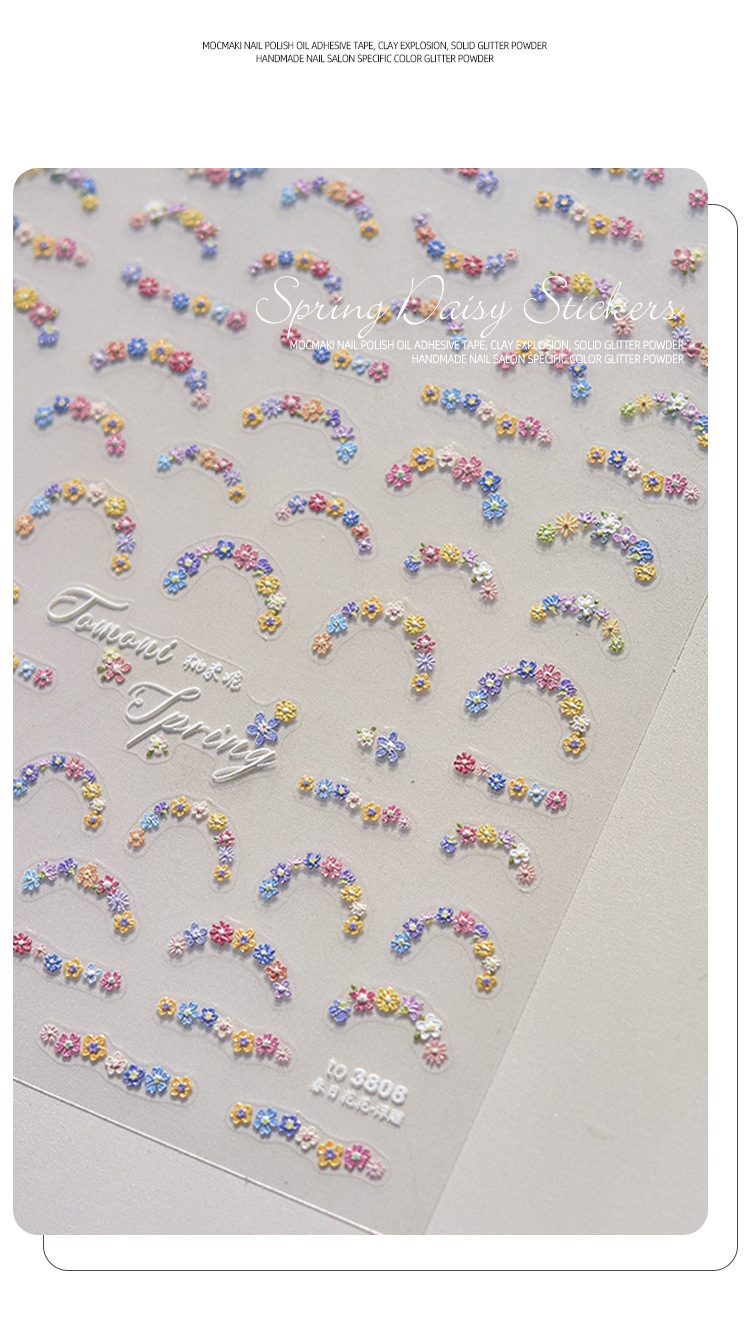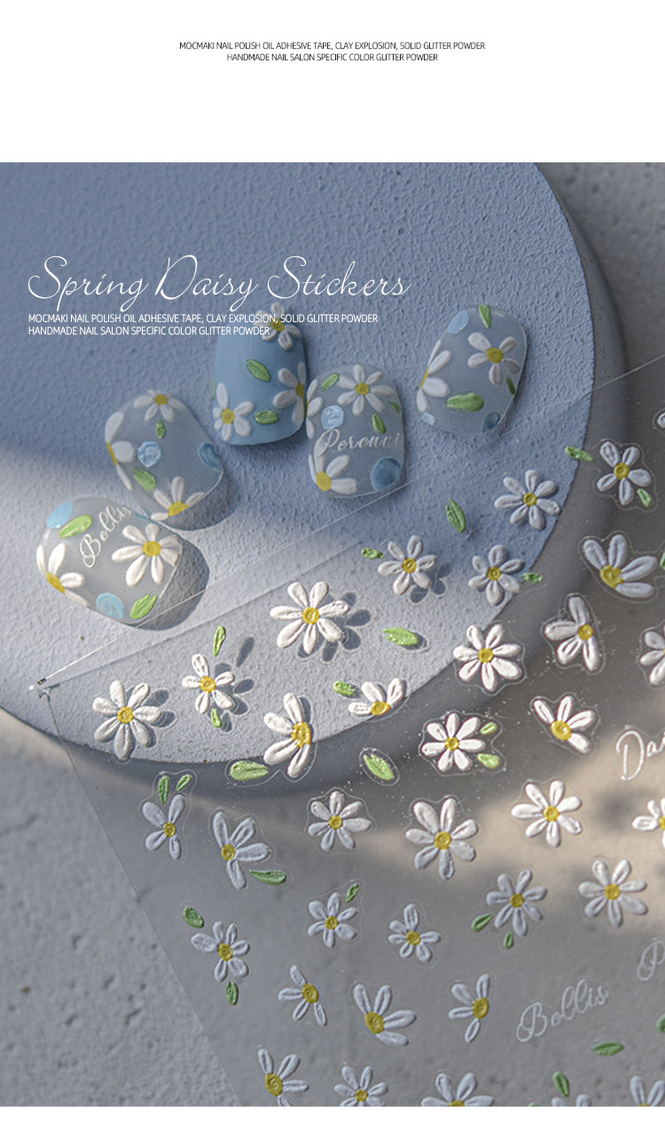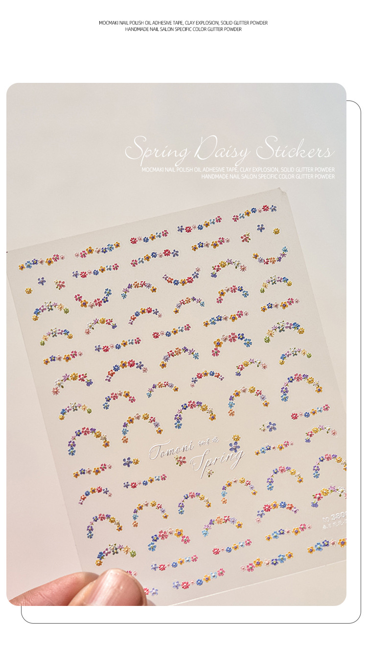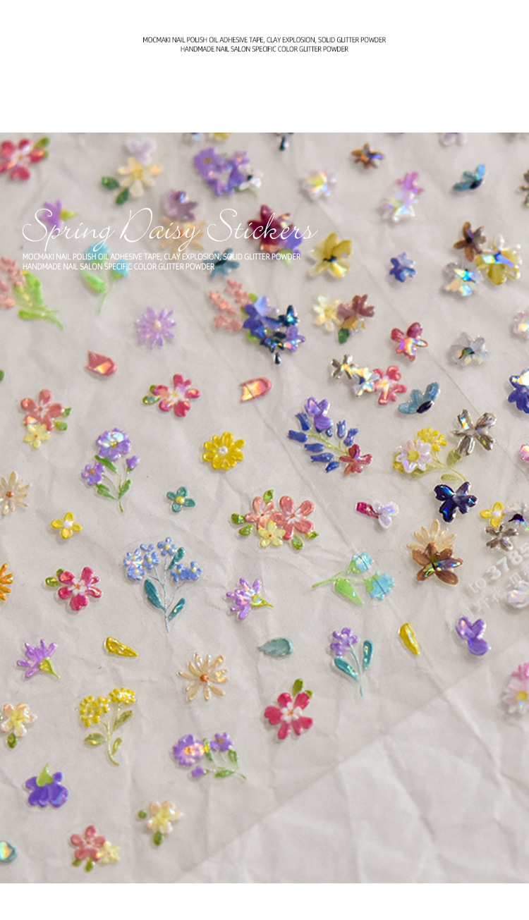 Pegatinas de uñas con diseño de flores de primavera 2025, nuevas flores silvestres en relieve estilo ins, pequeñas margaritas, pétalos rotos, decoración de uñas