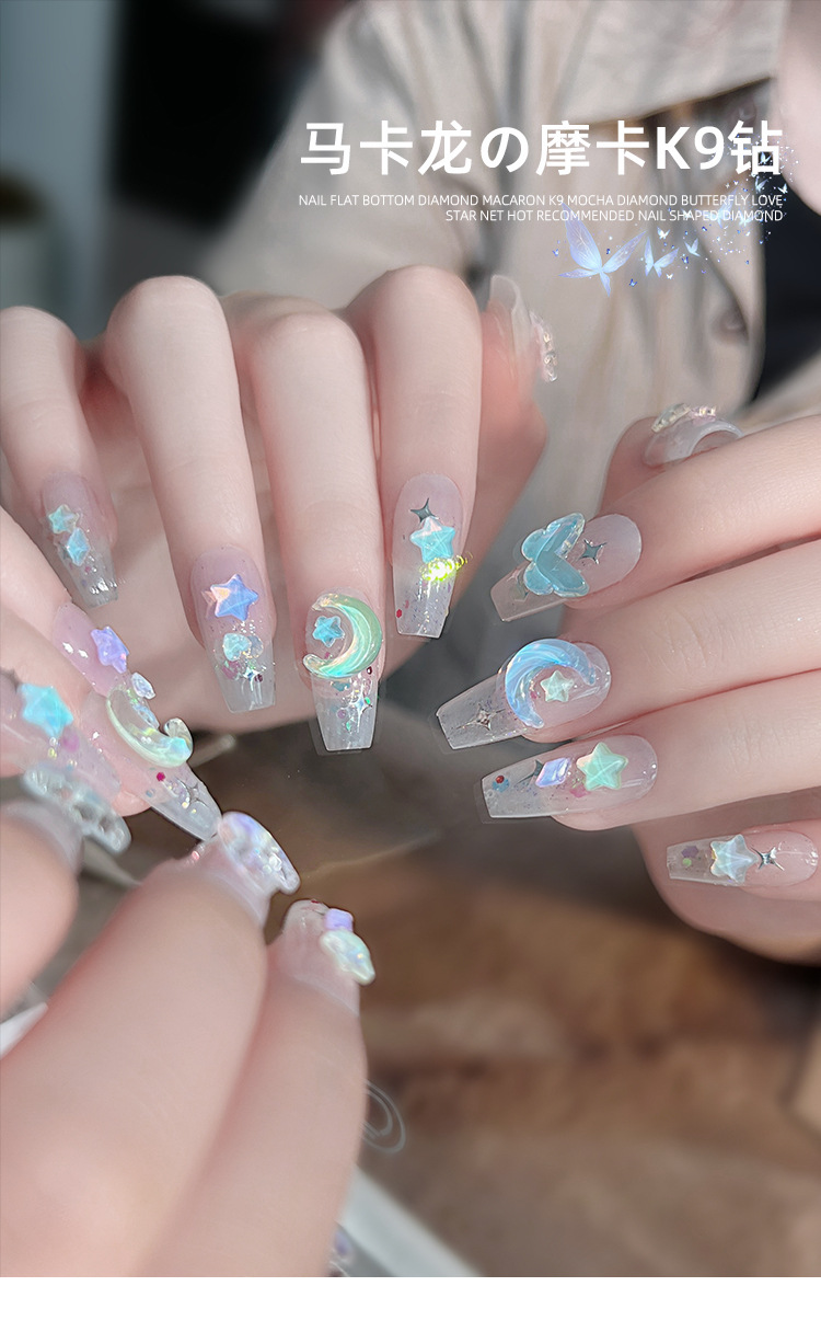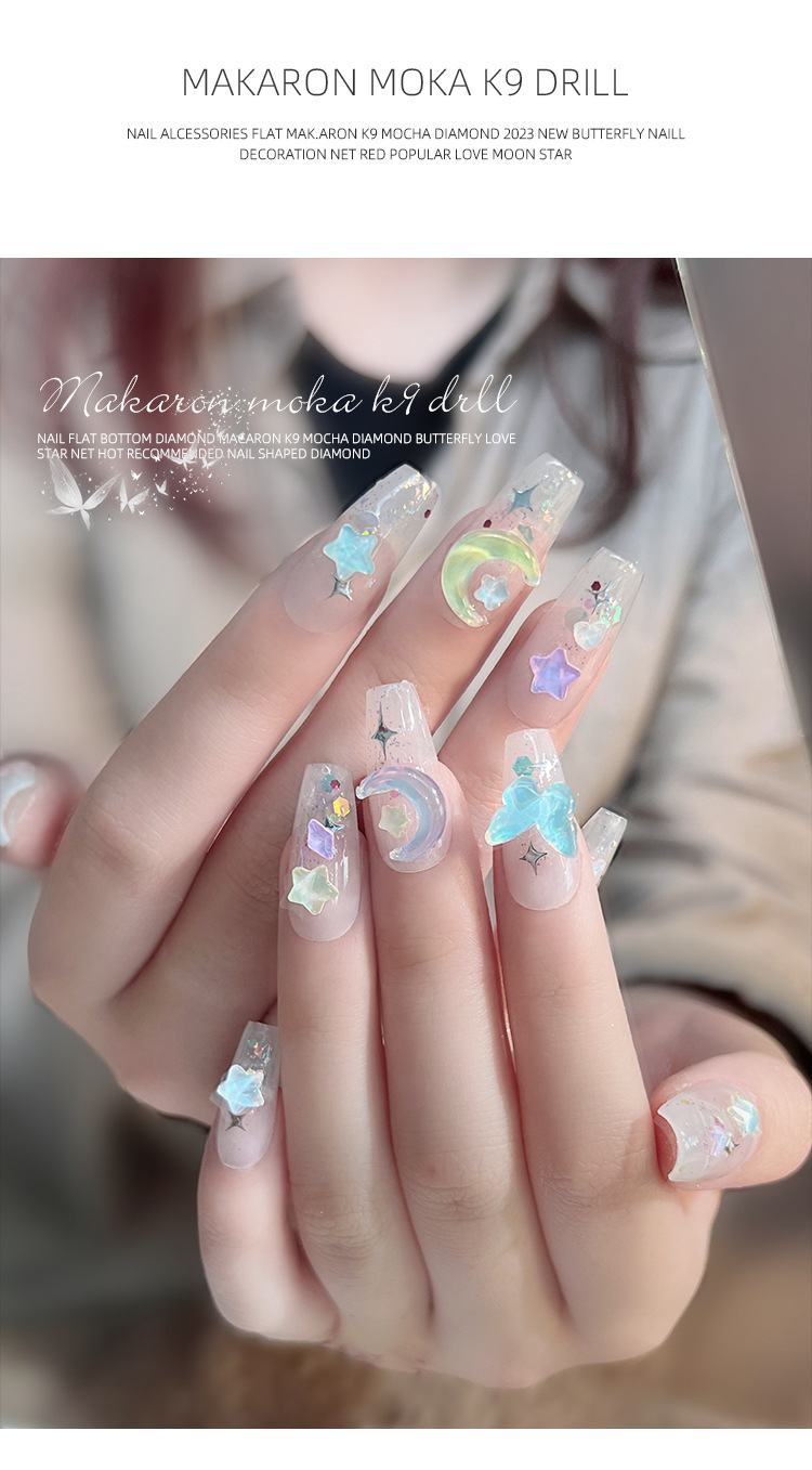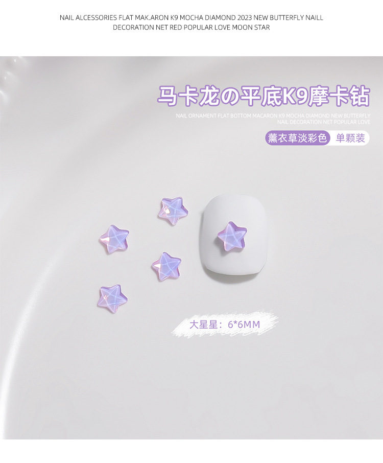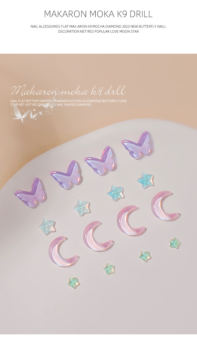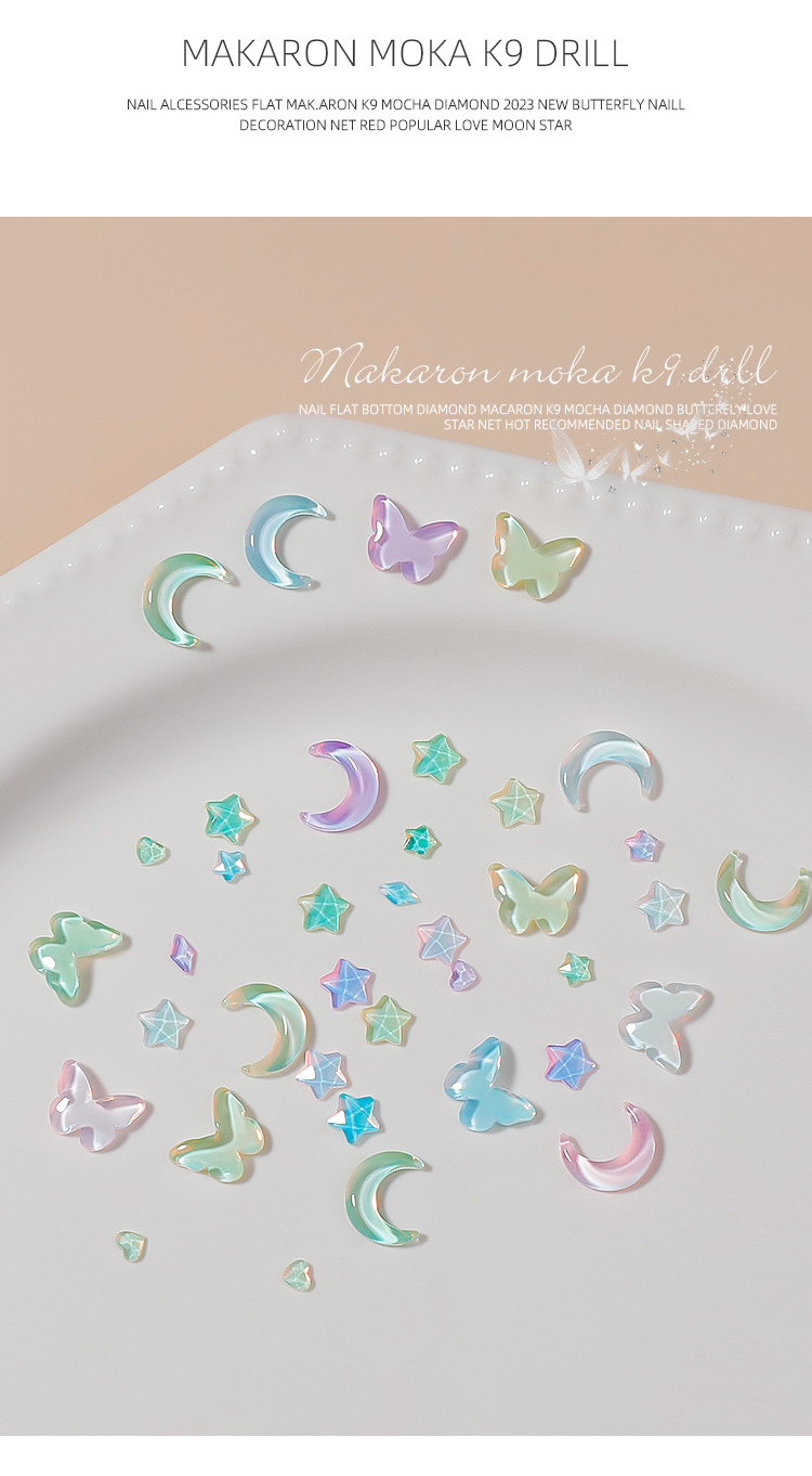 Manicura tamaño pequeño Mocha Luna Estrella Mariposa plana Internet celebridad joyería Aurora colorido estrella de cinco puntas joyería al por mayor