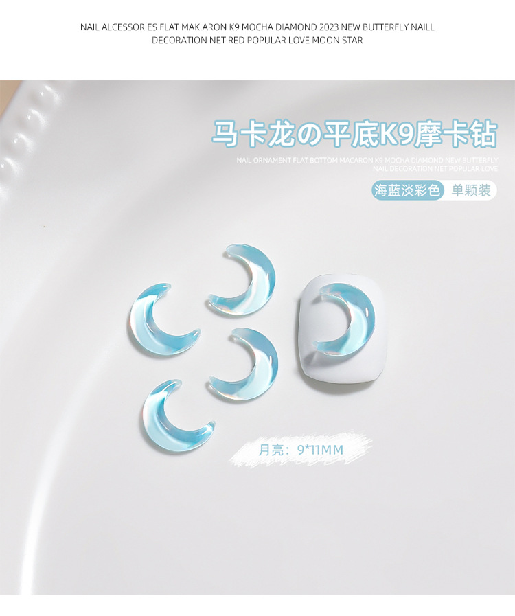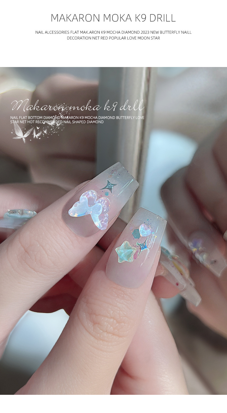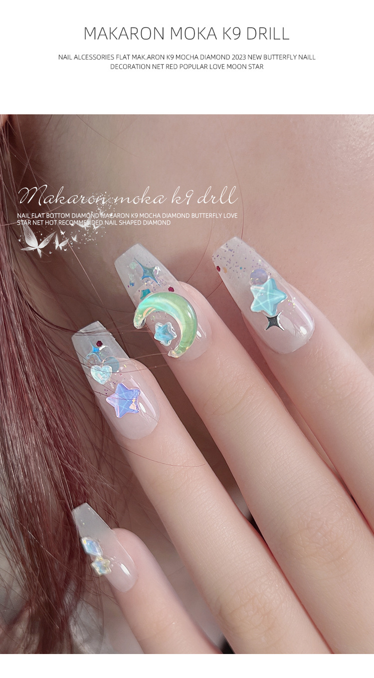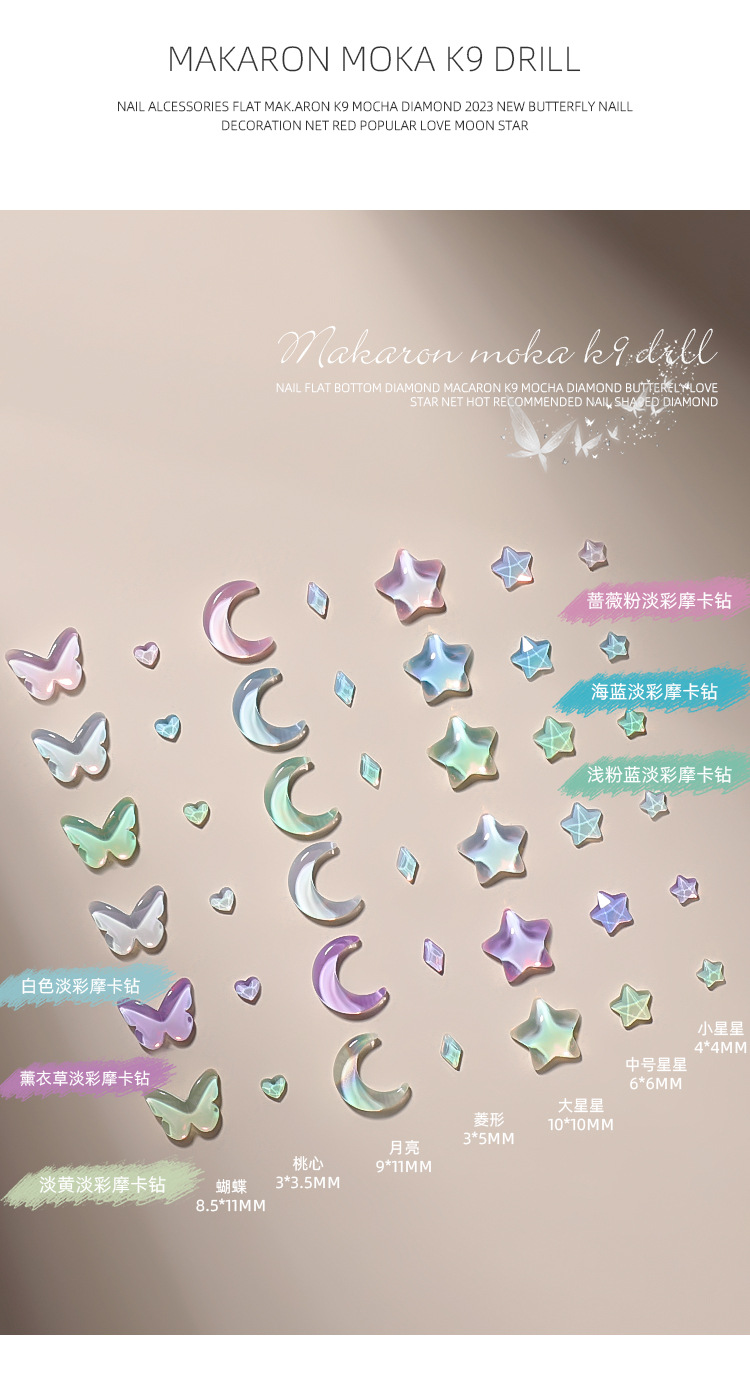 Manicura tamaño pequeño Mocha Luna Estrella Mariposa plana Internet celebridad joyería Aurora colorido estrella de cinco puntas joyería al por mayor