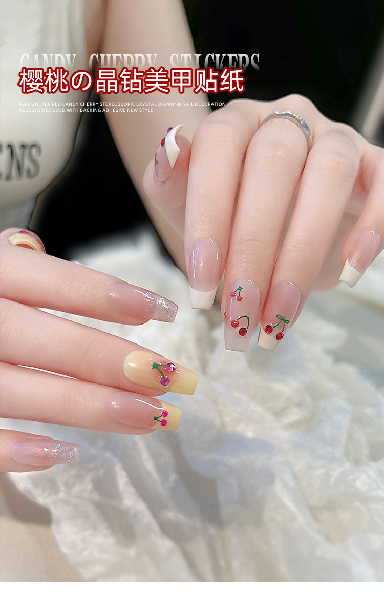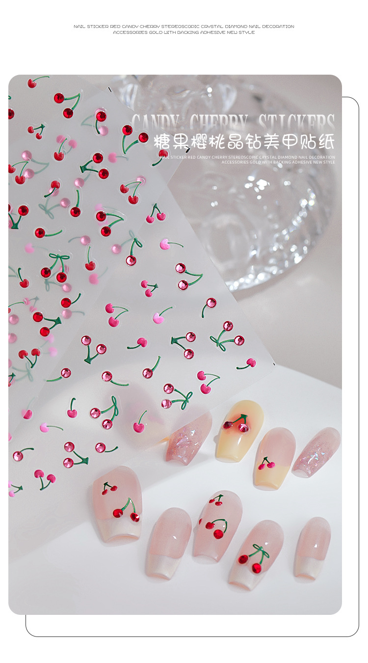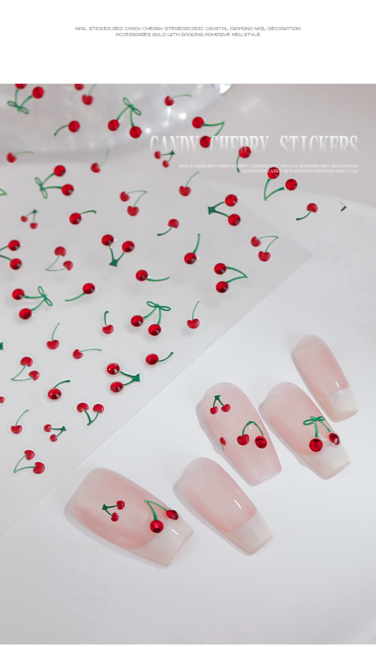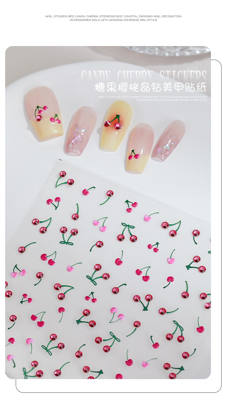 2023 nueva celebridad en línea diamante 3D tridimensional decoraciones de uñas de alivio Nail Candy Cherry Crystal Diamond pegatinas
