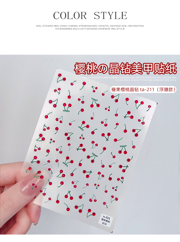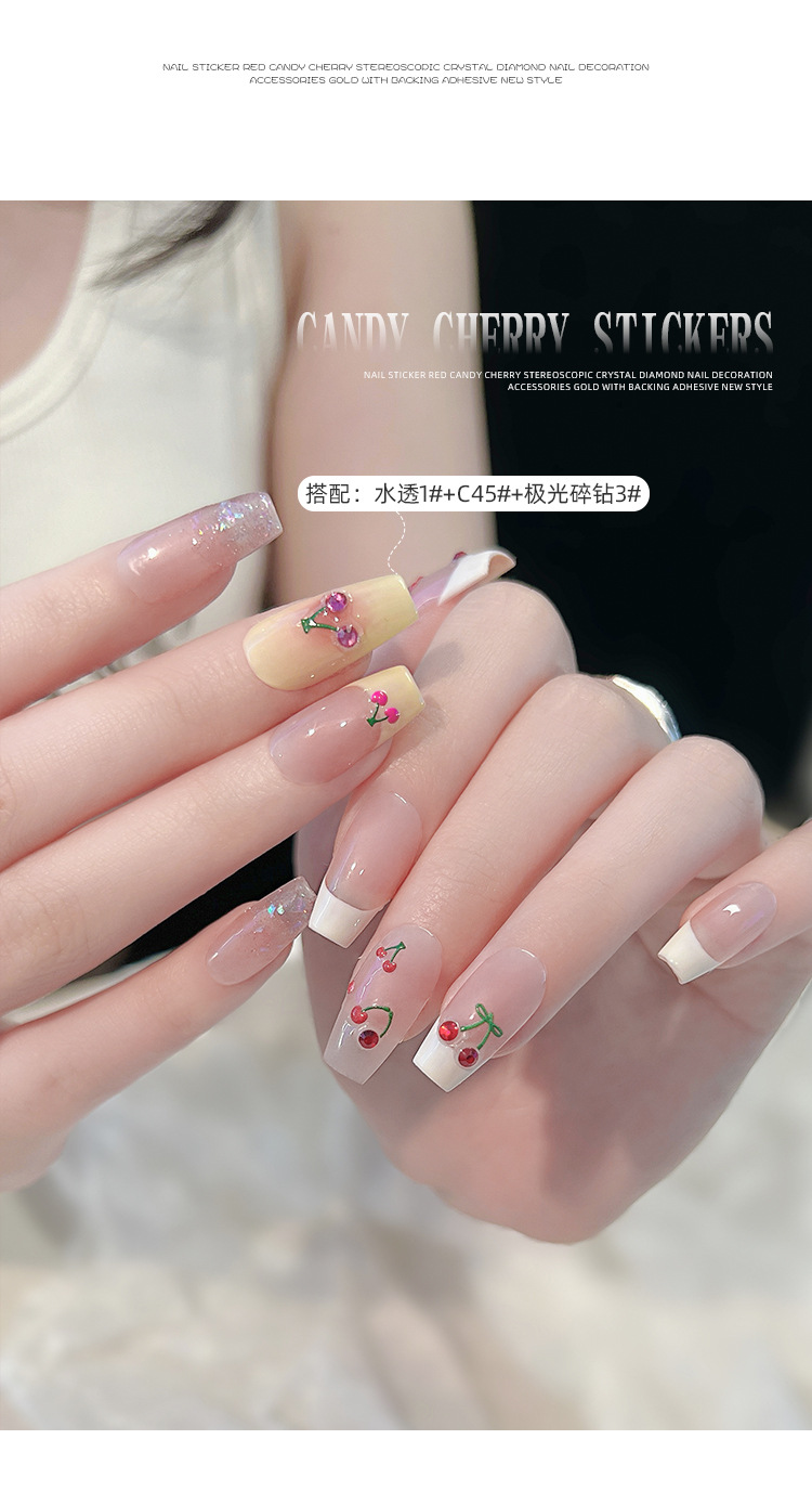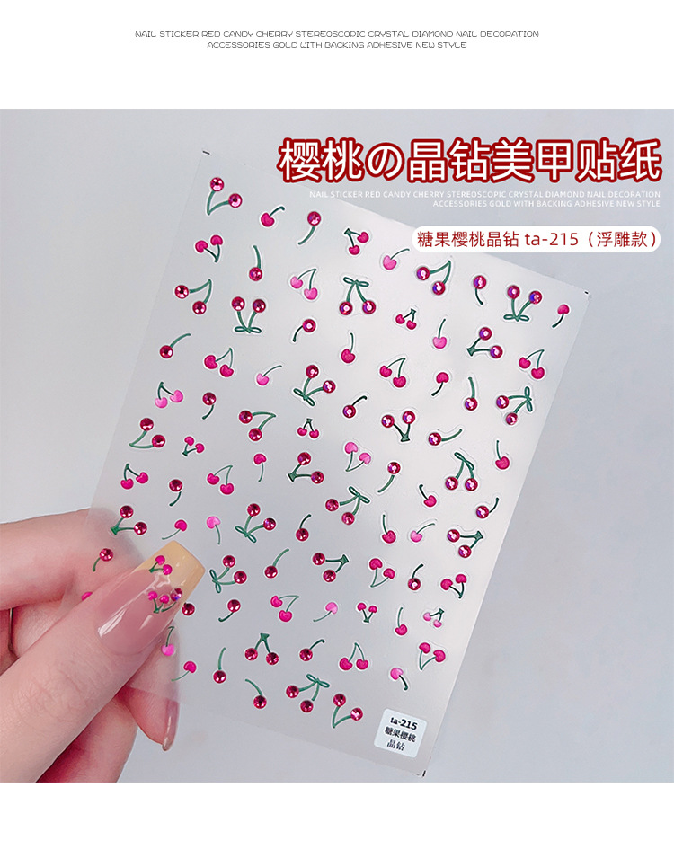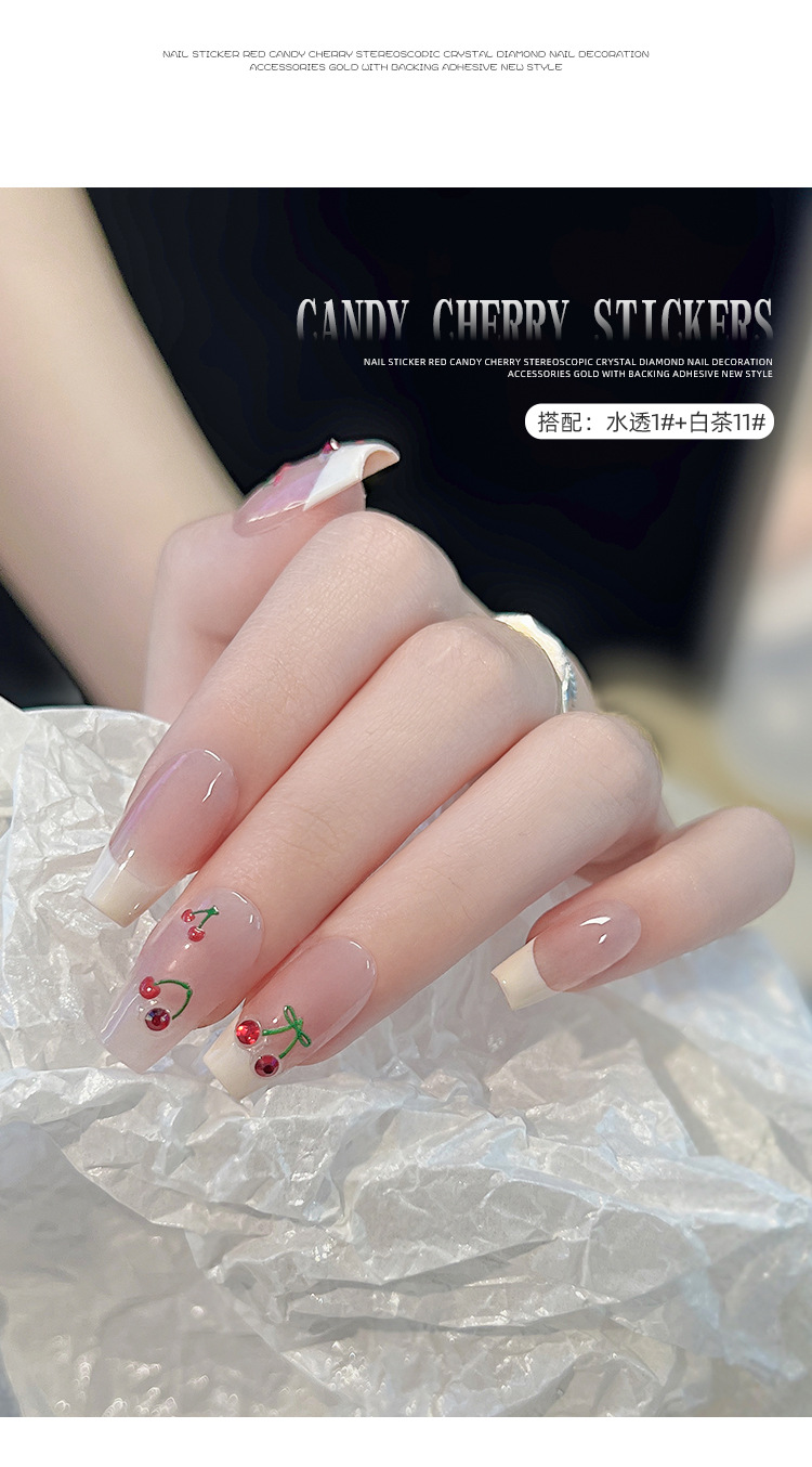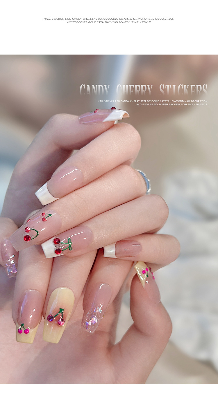 2023 nueva celebridad en línea diamante 3D tridimensional decoraciones de uñas de alivio Nail Candy Cherry Crystal Diamond pegatinas