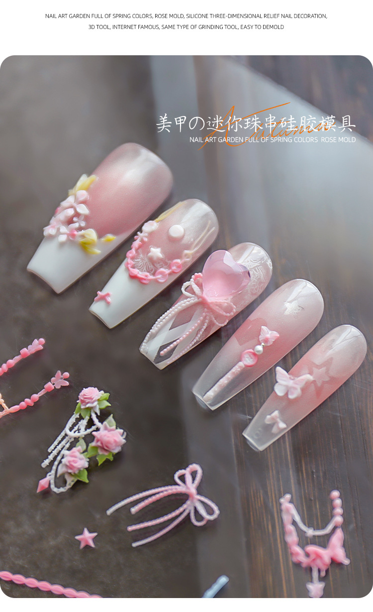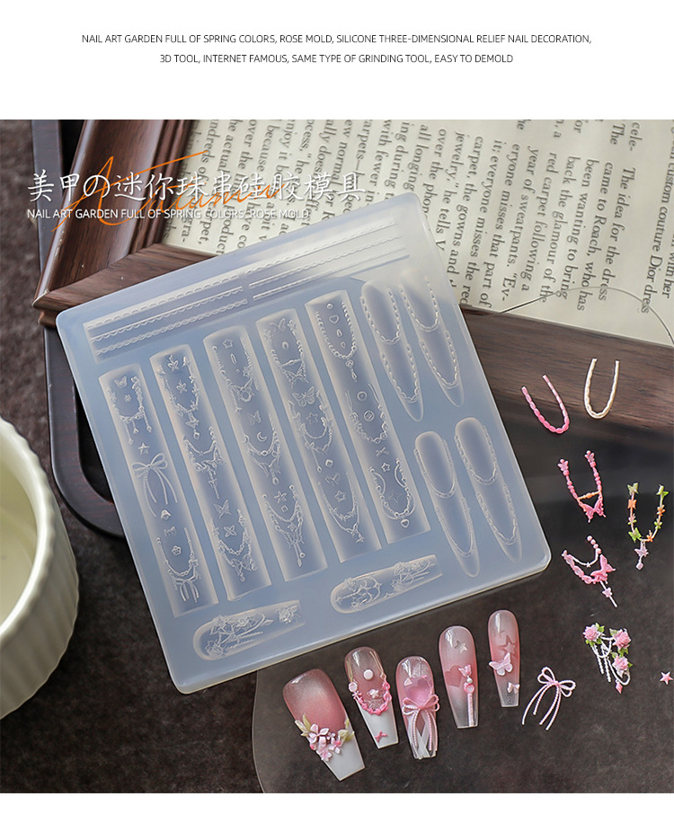 Pequeño libro rojo caliente molde de relieve de uñas molde de silicona 3D mini serpentina de lazo con cuentas molde tridimensional al por mayor
