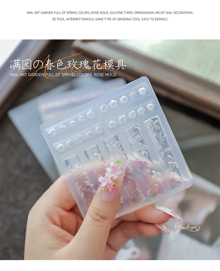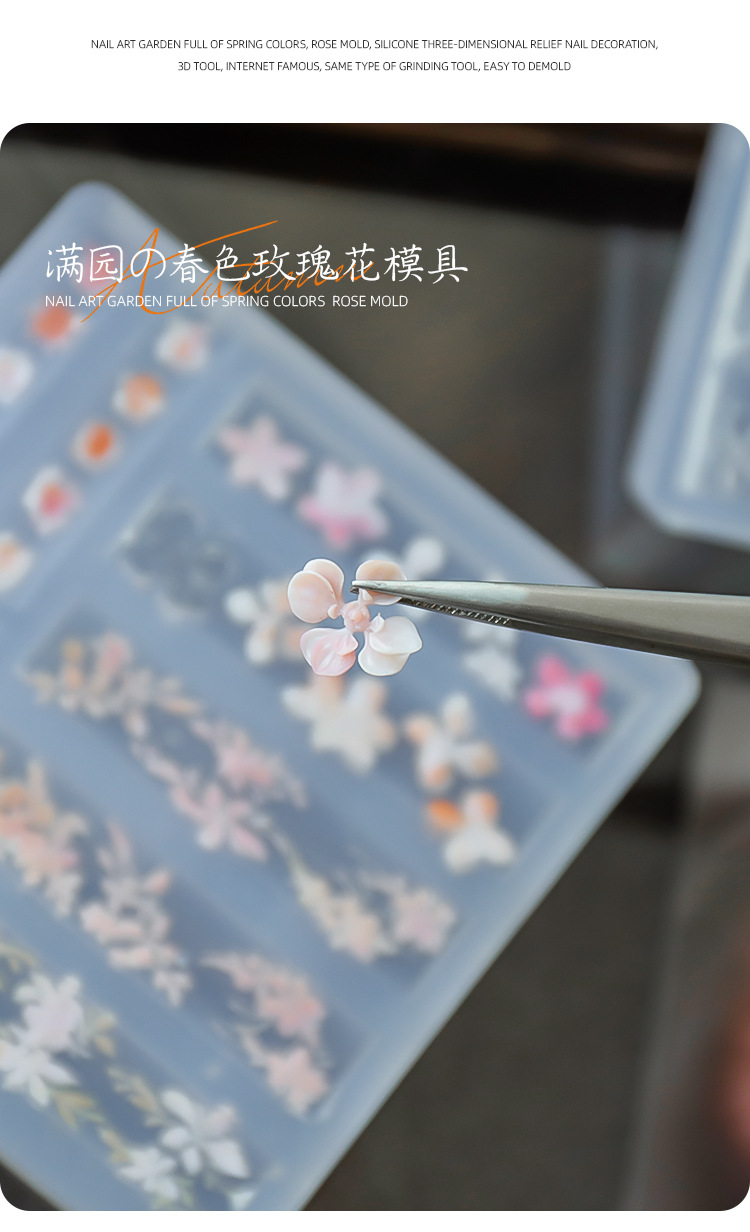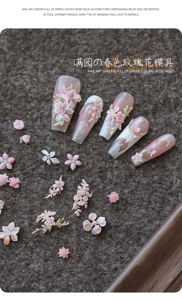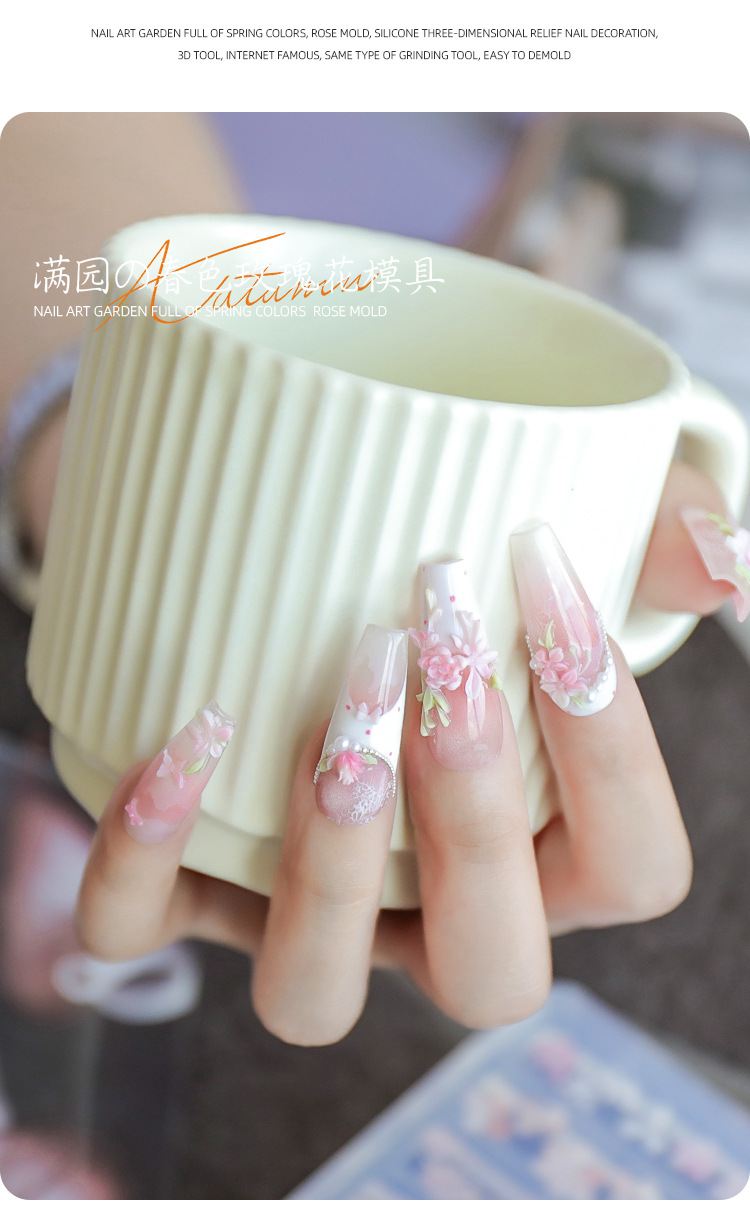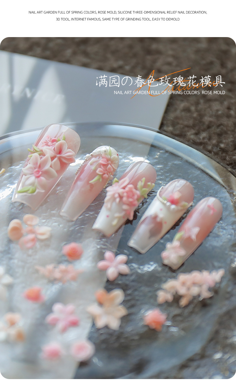 Red de celebridades modelo de explosión de uñas molde de relieve de silicona 3D jardín lleno de flores de primavera rosa serpentina tridimensional molde de pétalos al por mayor