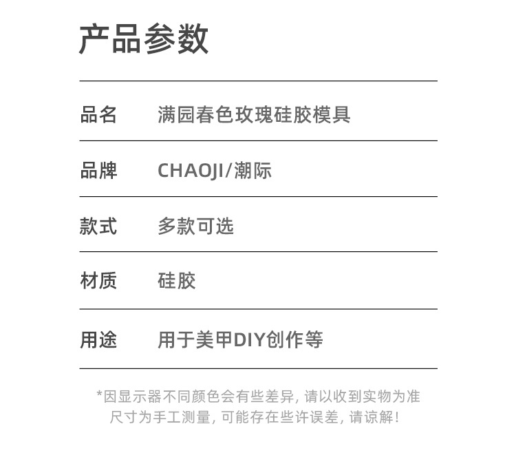 | Especificaciones | Molde de rosa de primavera de jardín completo |